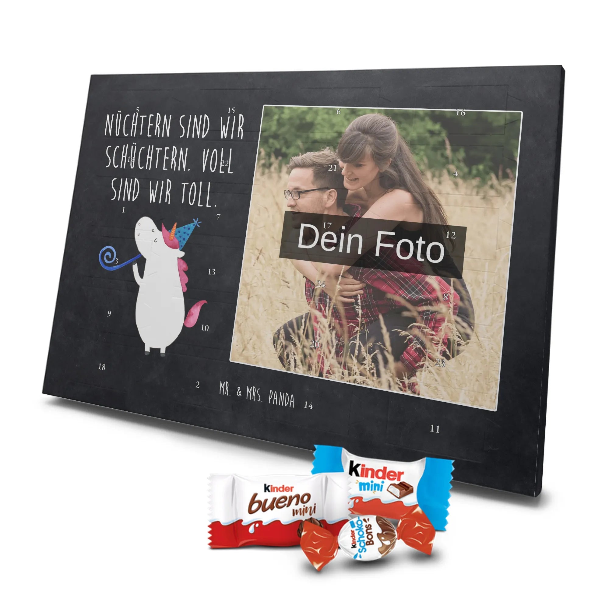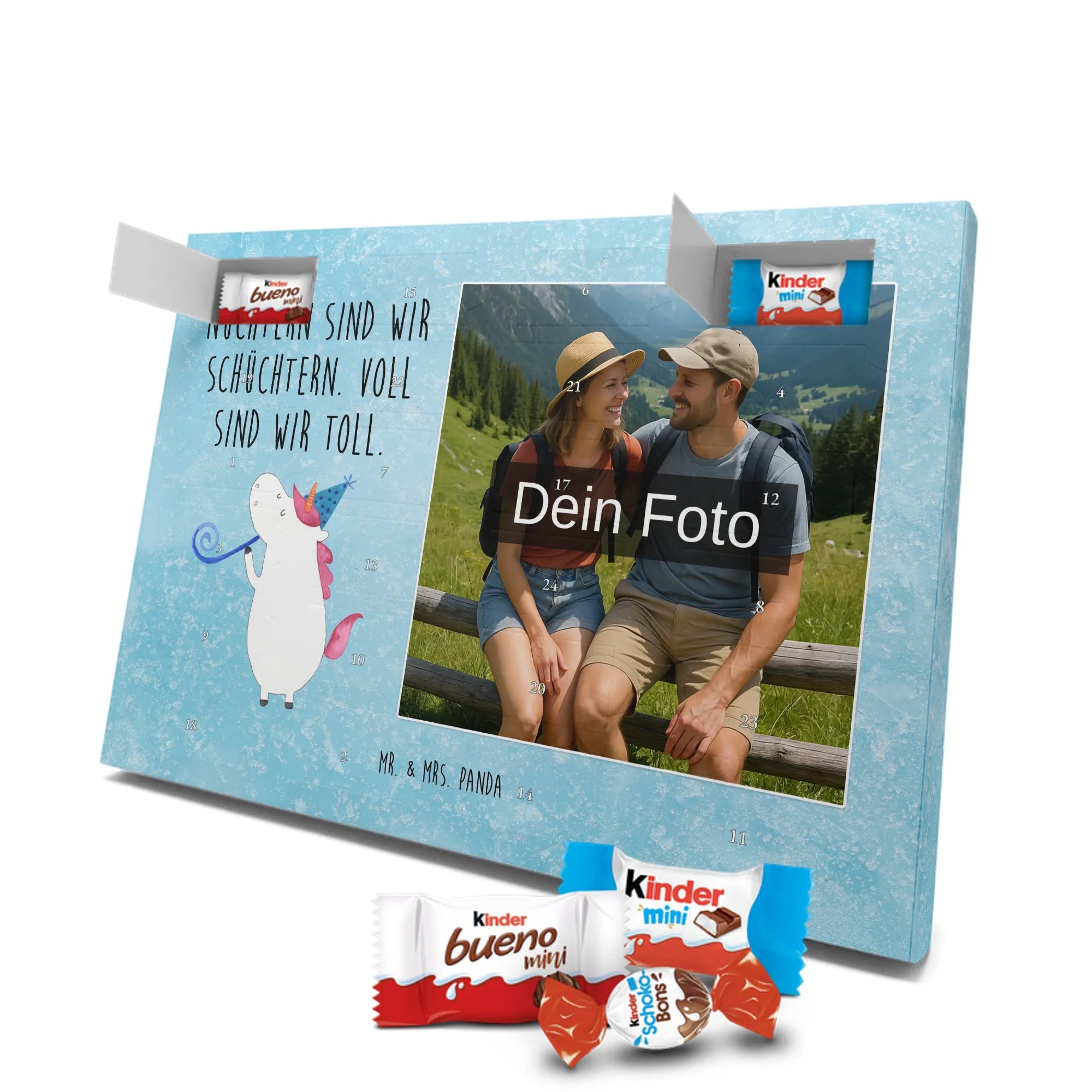 Personalisierter Schoko Foto Adventskalender von Mr. & Mrs. Panda – ein liebevoll gestaltetes Geschenk, das Vorfreude und Genuss vereint. In diesem personalisierten Schoko Foto Adventskalender kannst du dein Lieblingsfoto einsetzen und so jeden Tag im Dezember mit einem kleinen Lächeln öffnen. Der Kalender ist bedruckt mit unseren typischen Mr. & Mrs. Panda Motiven und süßen Sprüchen, die perfekt zu deinem Foto passen. Achte bitte bei der Bildauswahl auf hohe Auflösung, damit der Druck klar und brillant wird. Wähle einen passenden Bildausschnitt, damit keine wichtigen Details abgeschnitten werden. Lade nur Bilder hoch, bei denen du die Bildrechte besitzt oder die Zustimmung der abgebildeten Personen vorliegt. Die Fotos werden weder nachbearbeitet noch zugeschnitten; Rücknahme bei personalisierten Foto-Artikeln ist ausgeschlossen. Die Druckqualität ist brillant mit einer seidenmatten Oberflächenveredelung und bedruckten Seitenflächen für ein rundum schönes Erscheinungsbild. Maße: 355 mm x 245 mm x 11 mm. Praktisch: Du kannst den Adventskalender entweder aufstellen oder an die Wand hängen. Gefüllt ist der Kalender mit kinder® Schokolade – genauer: kinder® Schoko-Bons, kinder® Bueno mini und kinder® Schokolade mini. Bitte beachte: Um das beste Druckergebnis zu erzielen, lade ein hochwertiges Foto hoch und kontrolliere vor dem Bestellen den Bildausschnitt. Dieser Adventskalender ist das perfekte, persönliche Geschenk für Familie, Freunde oder für dich selbst – voller Liebe, süßer Überraschungen und dem unverwechselbaren Mr. & Mrs. Panda Charme.