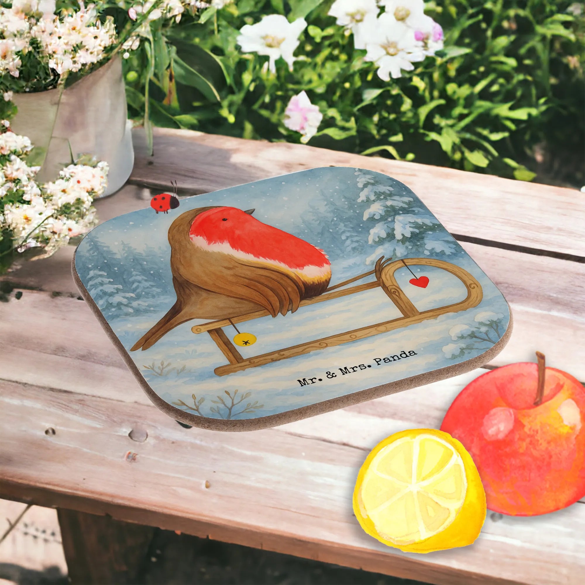 Untersetzer Rotkehlchen Schlitten Design