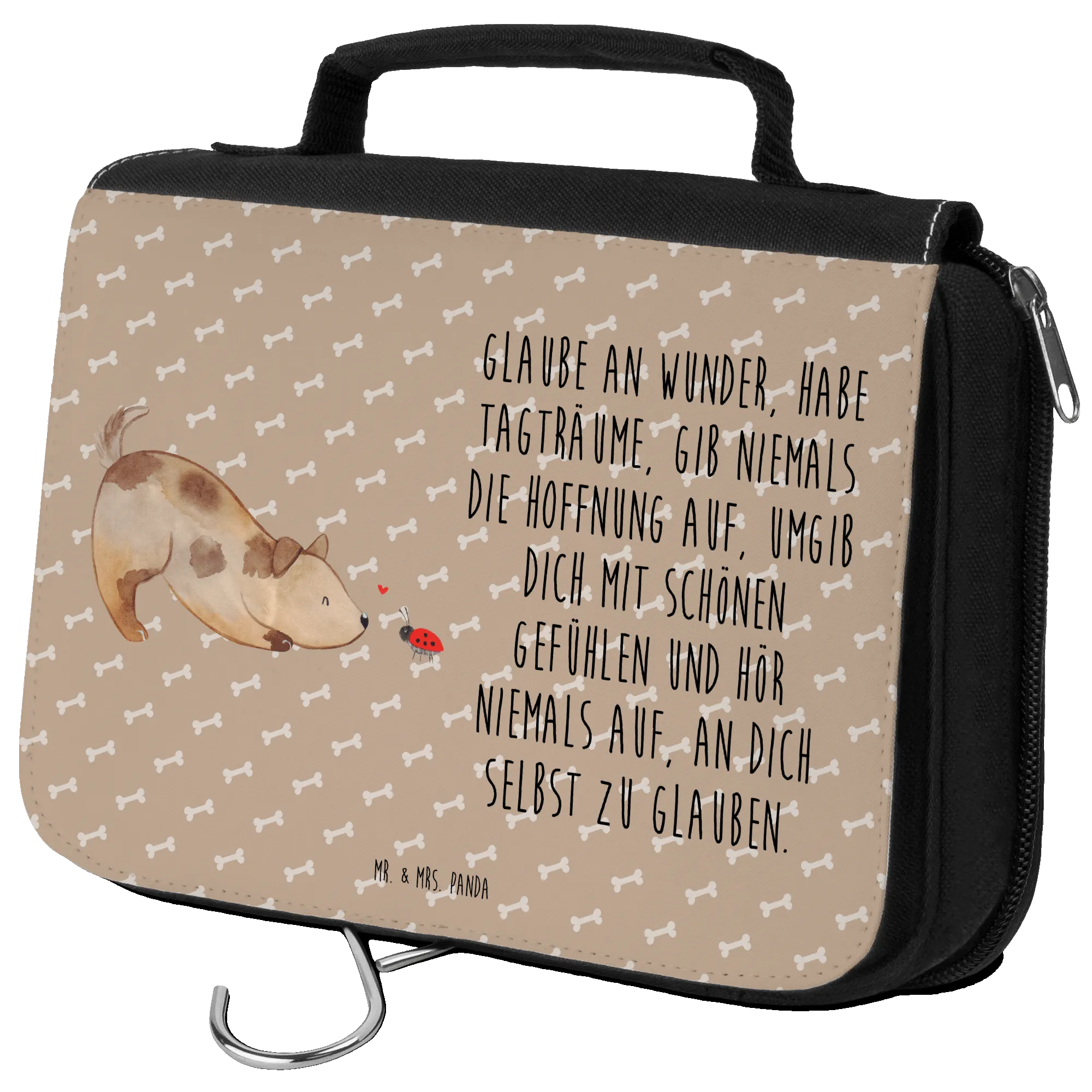 First things first, let’s talk about the stunning design! The wash bag captures the joyful spirit of a playful dog sitting with a little ladybird, a motif drawn from the heart by Mrs. Panda. This delightful image is ideal for those who adore their furry friends and want to carry a bit of that joy wherever they go. Every detail has been carefully crafted to bring a smile to your face every time you reach for your essentials.