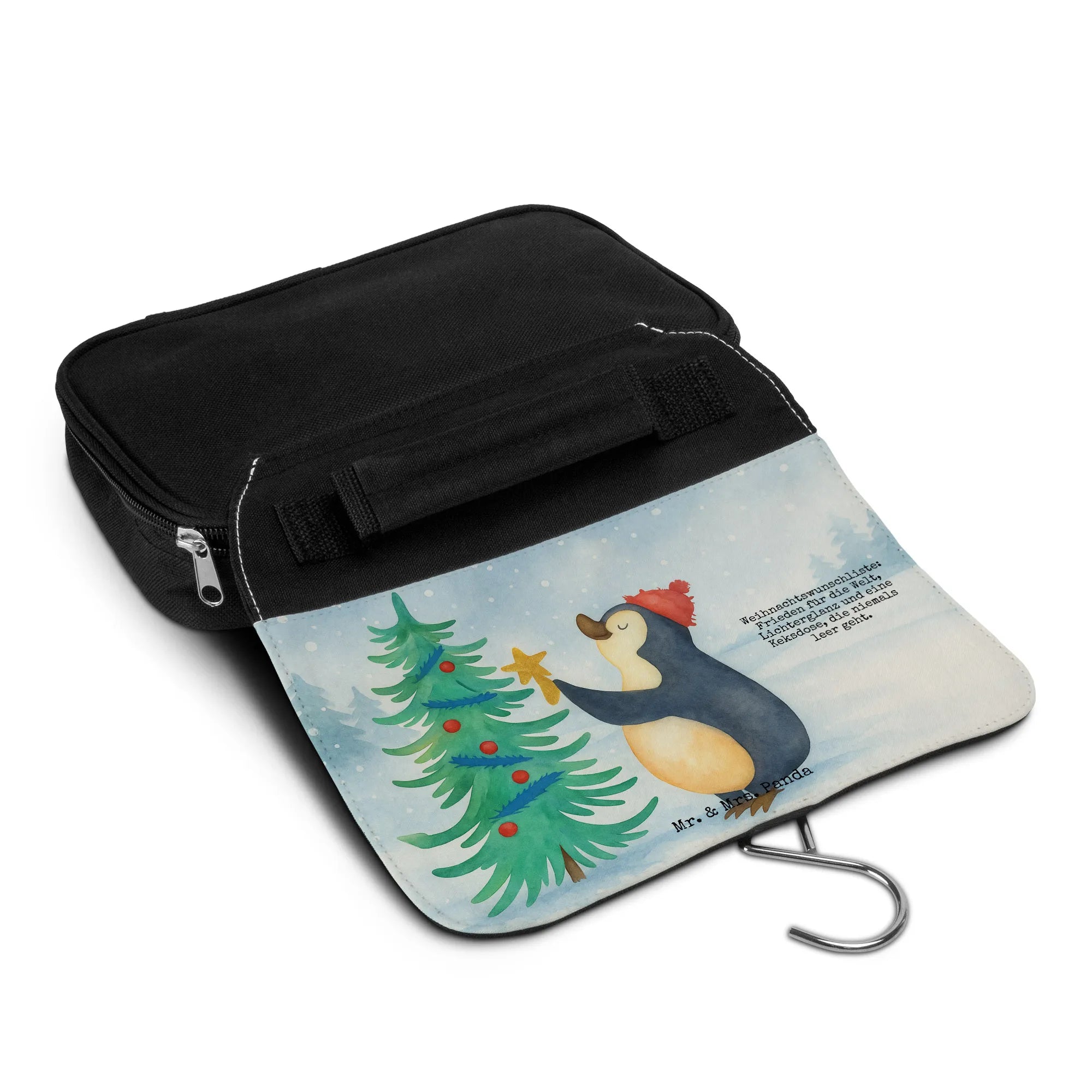 Wash bag penguin Christmas tree Design - with saying