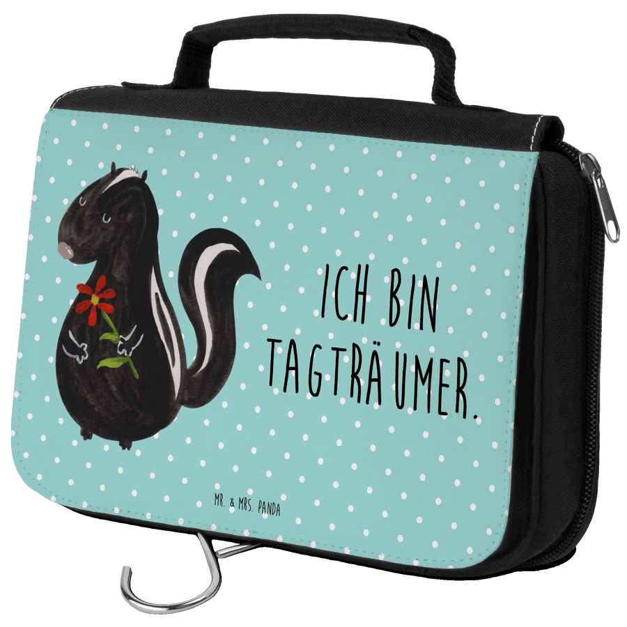 Let the whimsical skunk remind you to embrace your dreams and daydreams, as it playfully showcases the slogan "Ich bin Tagträumer." This sweet little ode to dreaming serves as a gentle reminder to all of us to never stop chasing our dreams. The Skunk Flower Wash Bag is not just a functional travel accessory; it encapsulates joy, nostalgia for the beloved Mr. Flower, Mrs. Panda's faithful companion, and inspiration to embrace the lighter side of life.