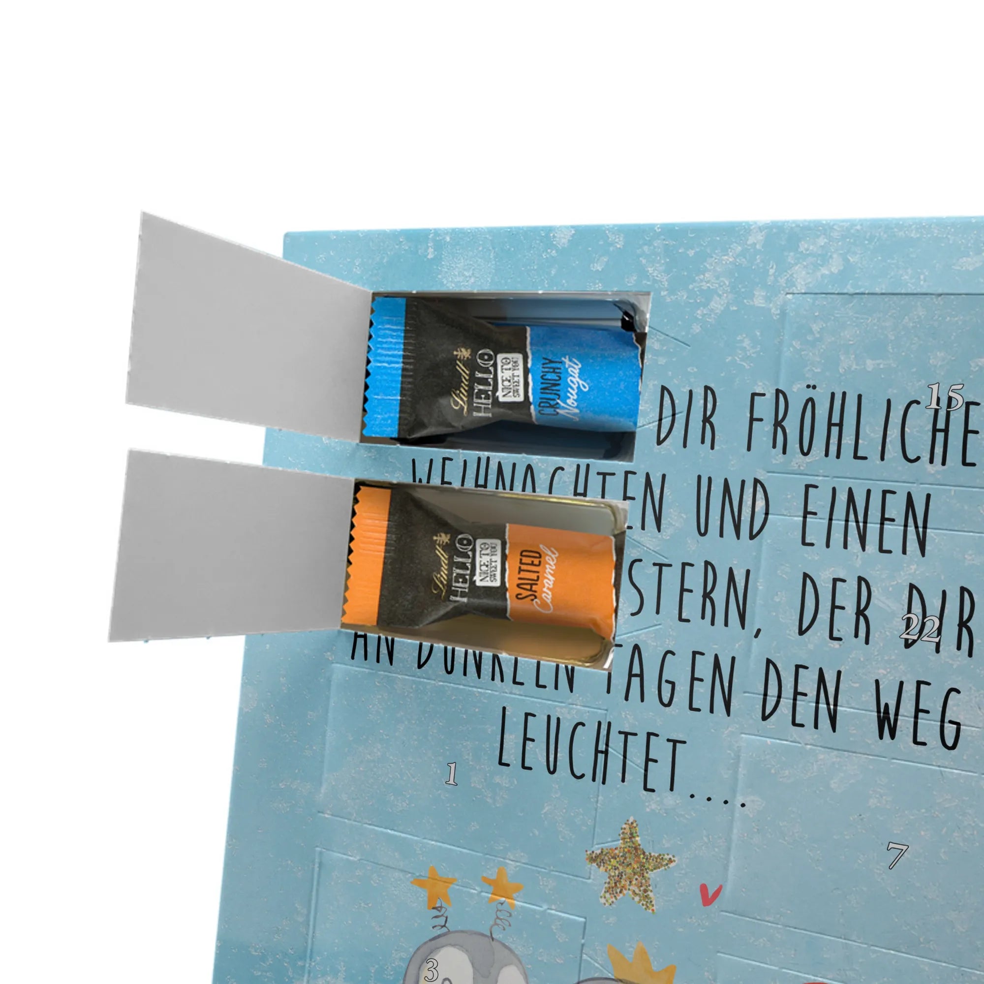 Foto-Adventskalender mit Schokolade von Mr. & Mrs. Panda – personalisiere den Advent mit deinem Lieblingsfoto und unseren liebevollen Motiven & Sprüchen. Dieser Kalender ist ideal, wenn du etwas Persönliches schenken willst: Einfach Foto hochladen, auf hohe Auflösung achten und den passenden Bildausschnitt wählen. Denk daran, nur Bilder zu verwenden, bei denen du die Bildrechte besitzt. Fotos werden nicht nachbearbeitet oder zugeschnitten; Rücknahme bei personalisierten Foto Artikeln ist ausgeschlossen. Die Druckqualität ist brillant, mit seidenmatter Oberflächenveredelung und bedruckten Seitenflächen für ein hochwertiges Erscheinungsbild. Maße: 325 mm x 225 mm x 27 mm. Besonderheit: Du kannst den Kalender sowohl aufhängen als auch aufstellen. Gefüllt ist er mit Ritter Sport Schokowürfeln – köstliche Sorten wie Mousse au Chocolat, Schoko Crisp, Voll-Nuss in Nougatcreme, Karamell Duo, Joghurt und Erdbeer-Joghurt warten hinter den Türchen. Ein liebevoll gestaltetes Geschenk, das Erinnerungen und Genuss verbindet und die Vorfreude auf Weihnachten jeden Tag versüßt.