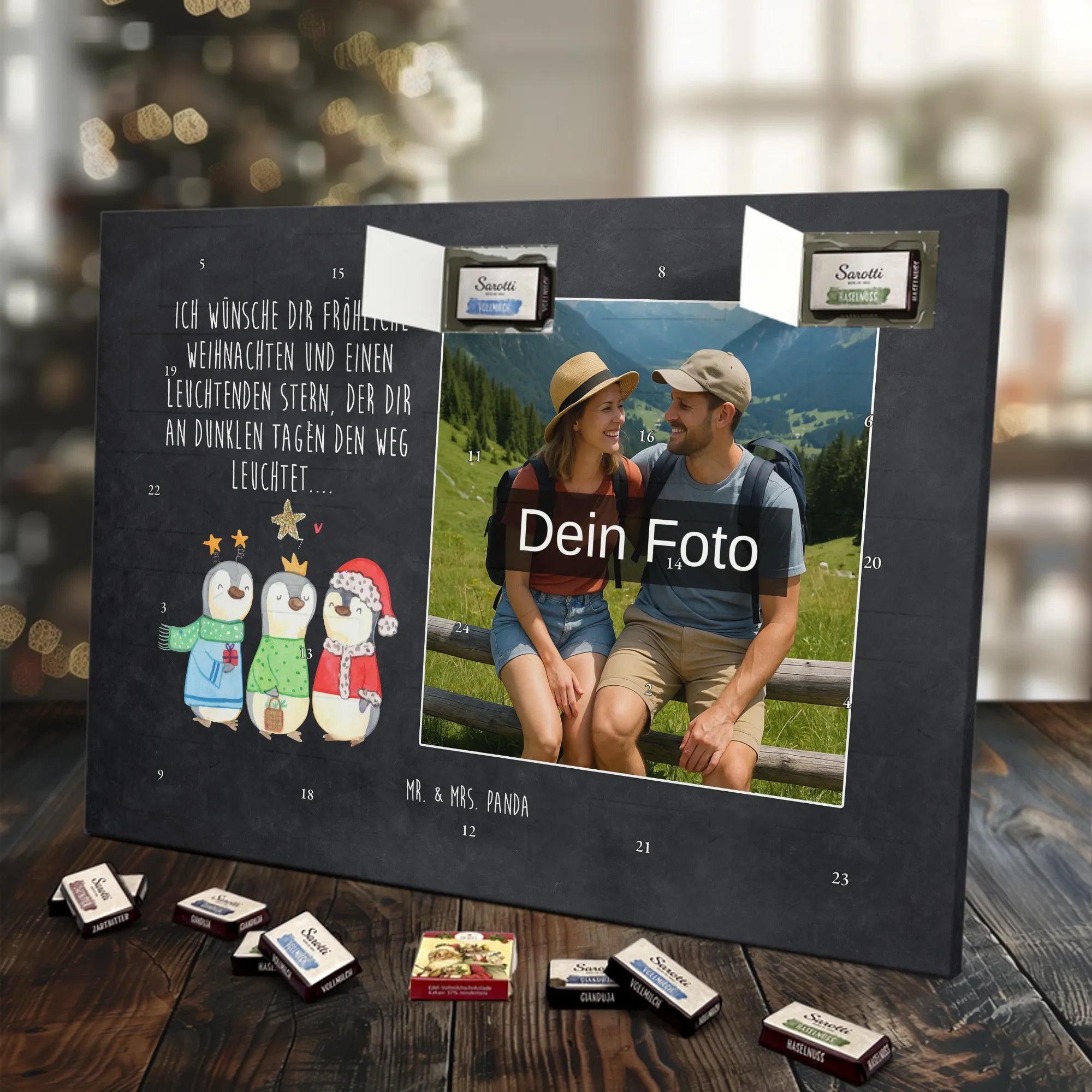 🐼 Personalisierter Schoko Foto Adventskalender mit deinem Foto, Mr. & Mrs. Panda Sprüchen und kinder® Schokolade.