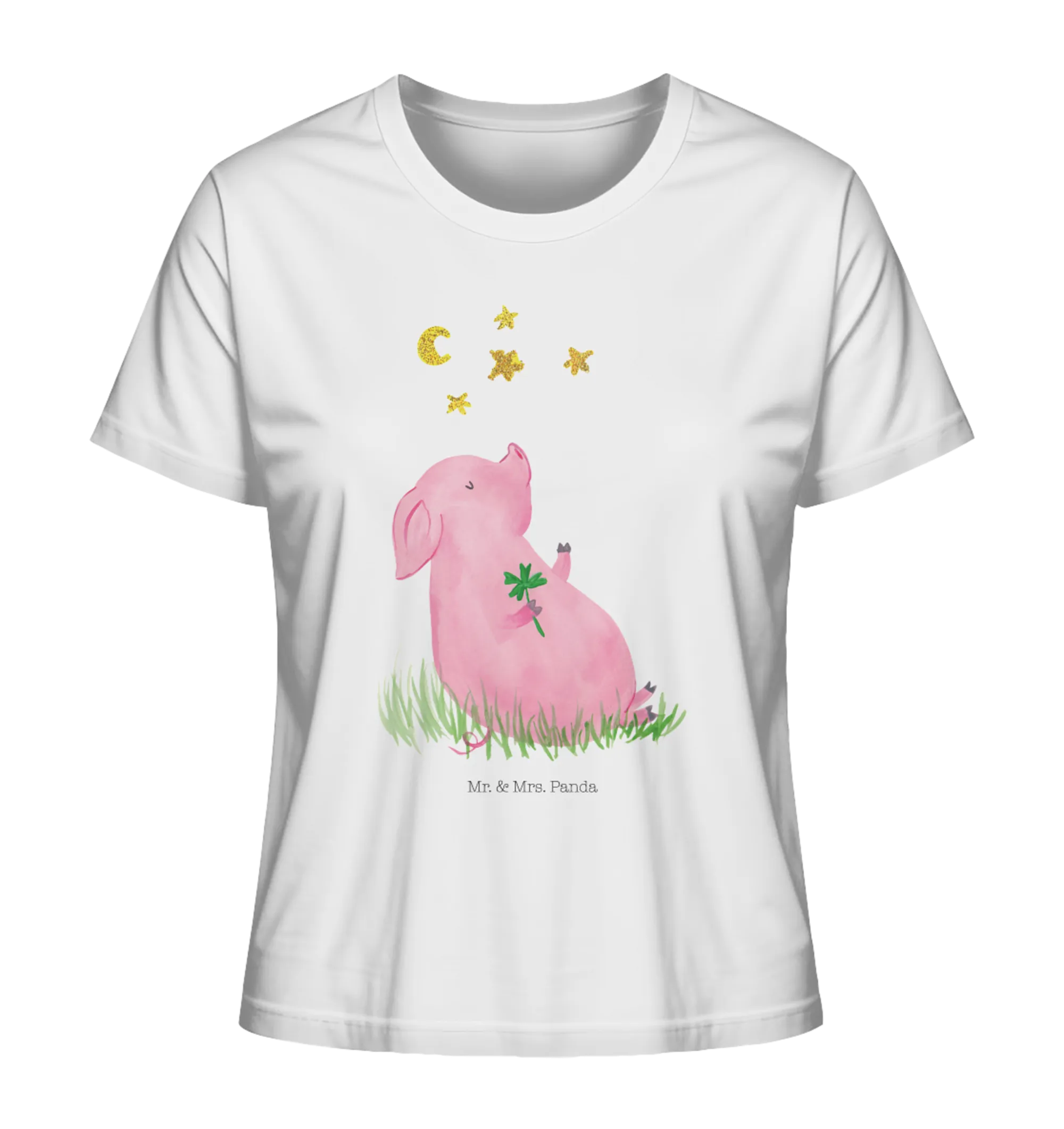 Ein hochwertiges Shirt Damen von Mr. & Mrs. Panda – das Glücksschwein aus der Small World Kollektion.