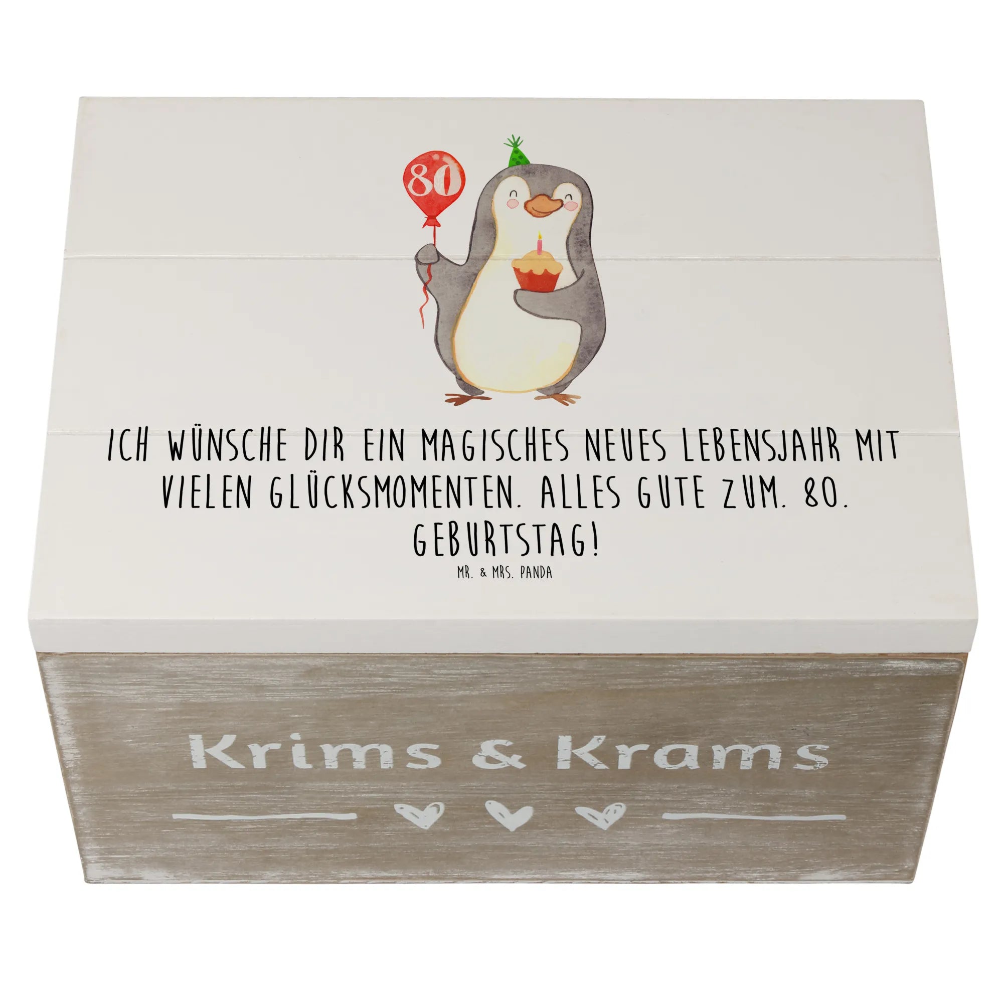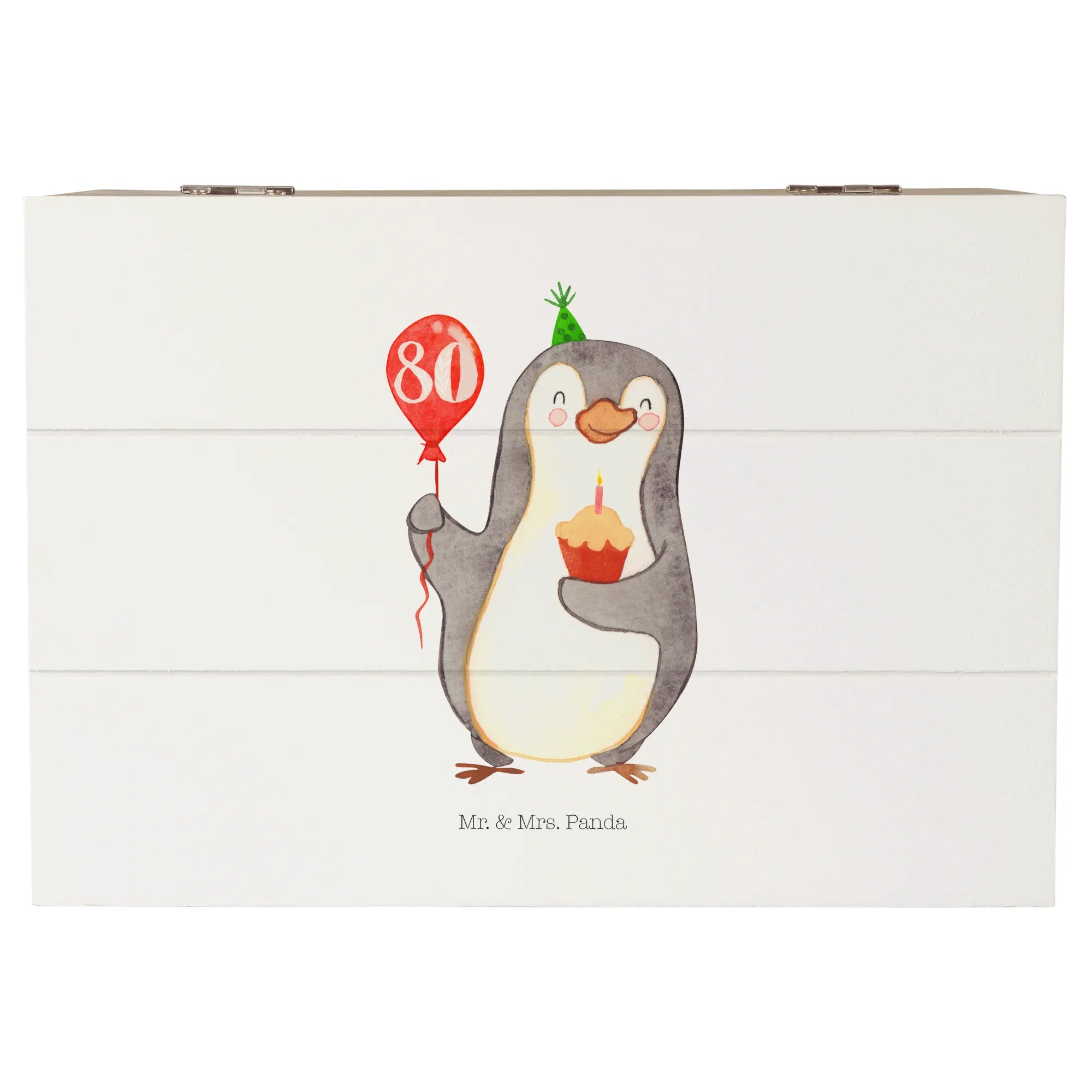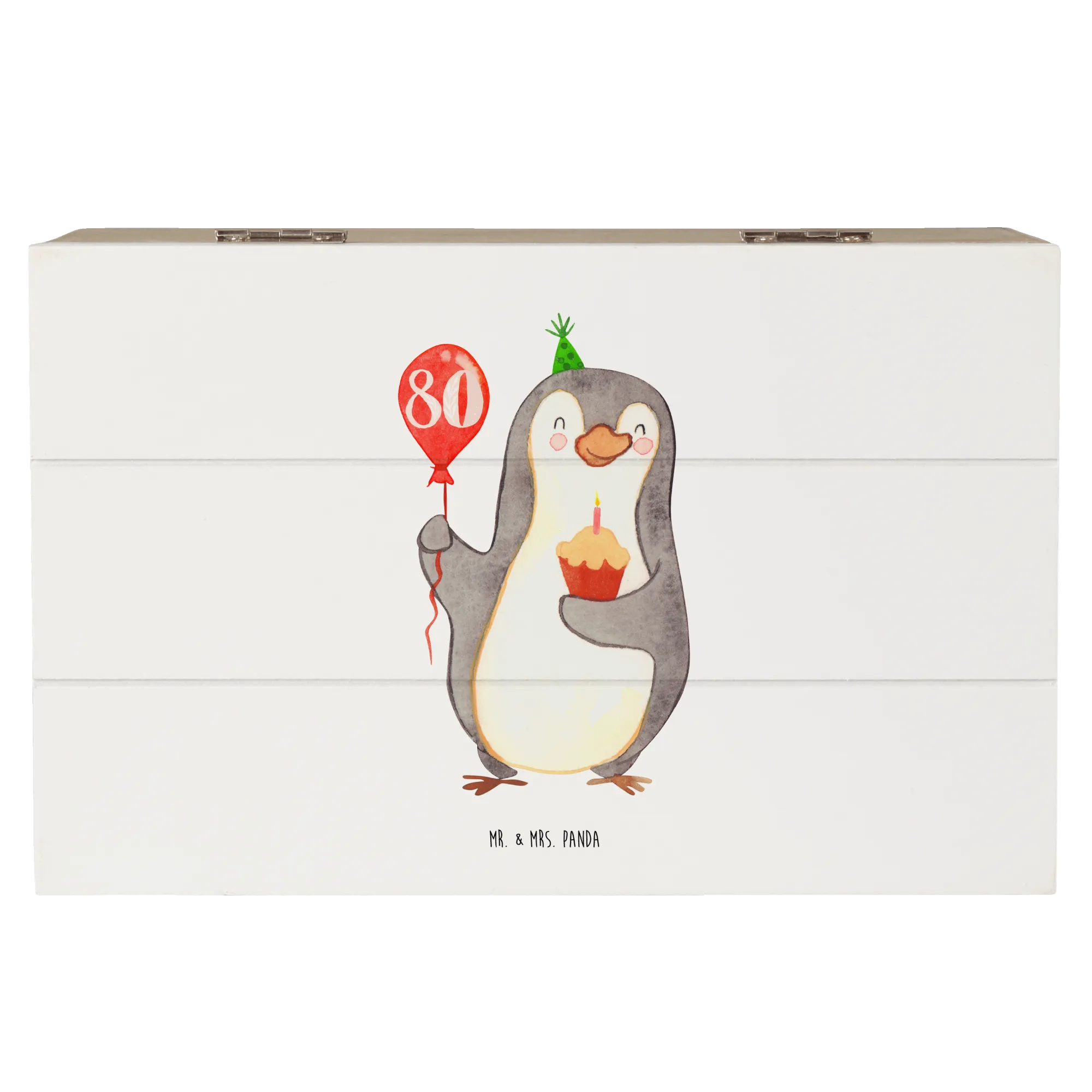 Looking for the perfect gift to celebrate a remarkable 80th birthday? Our Wooden Chest featuring the adorable motif of a penguin with a balloon is your answer!