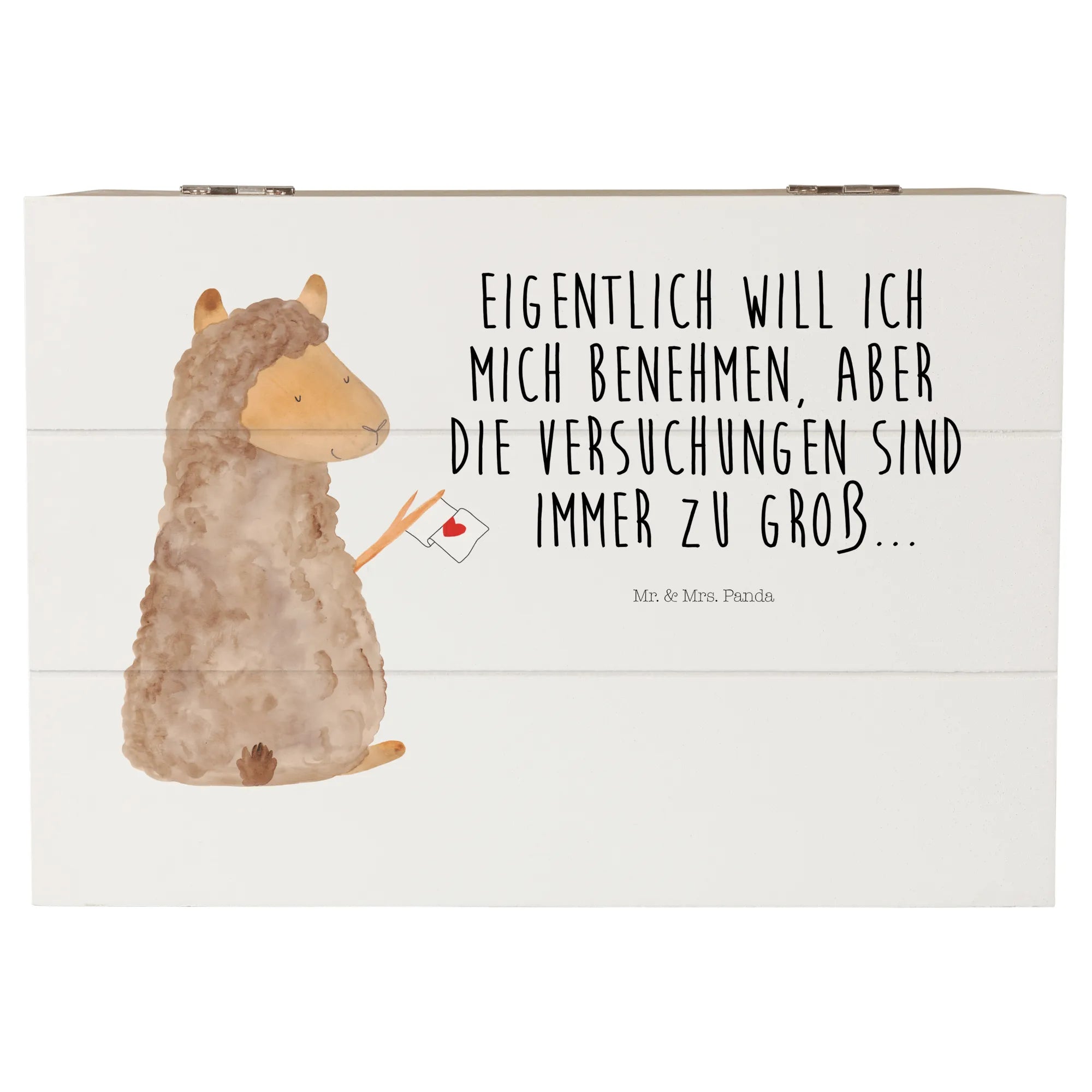 Wooden chest alpaca banner - 22 x 15 cm - with a saying - White