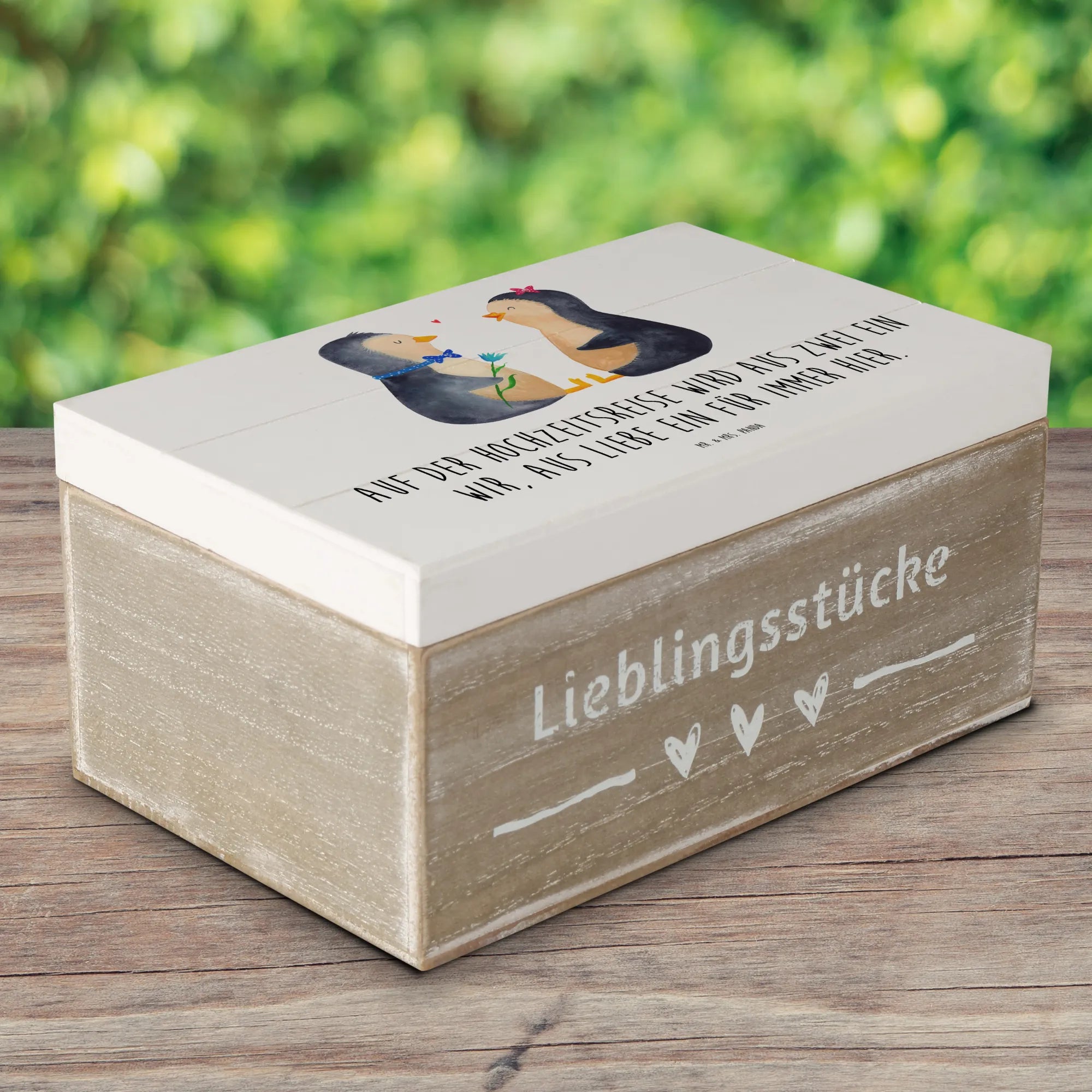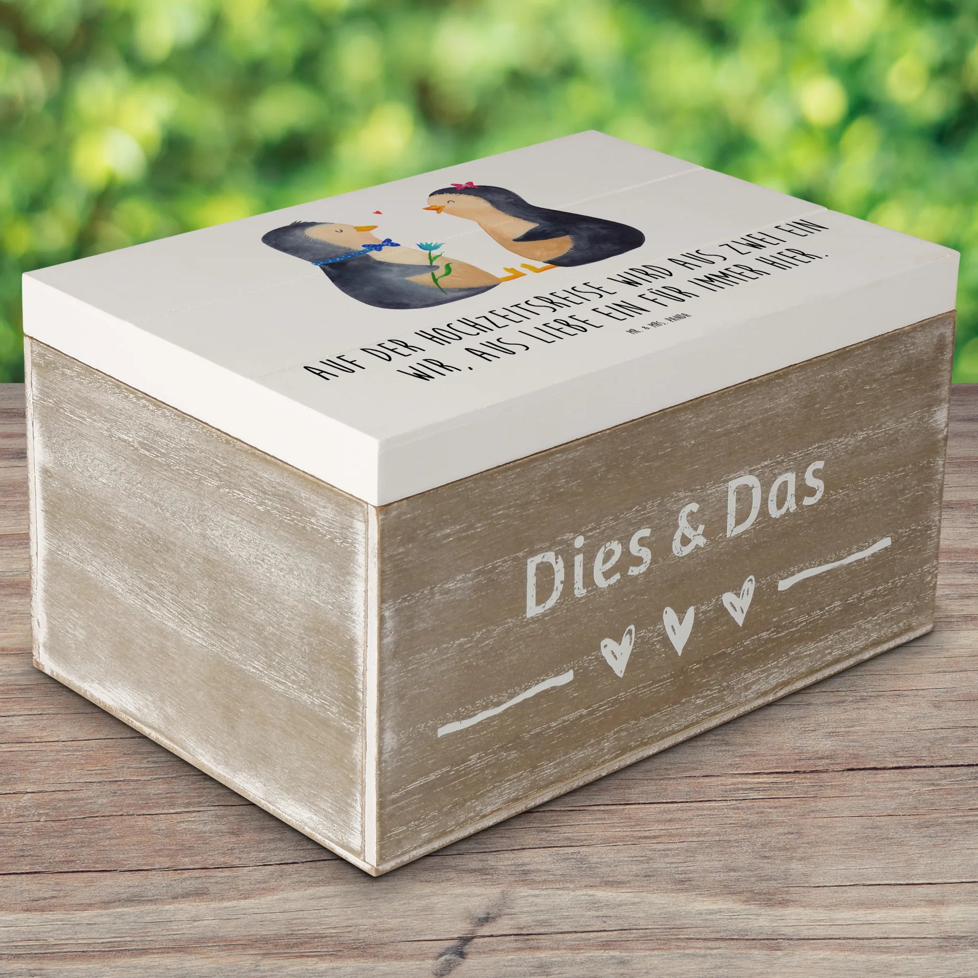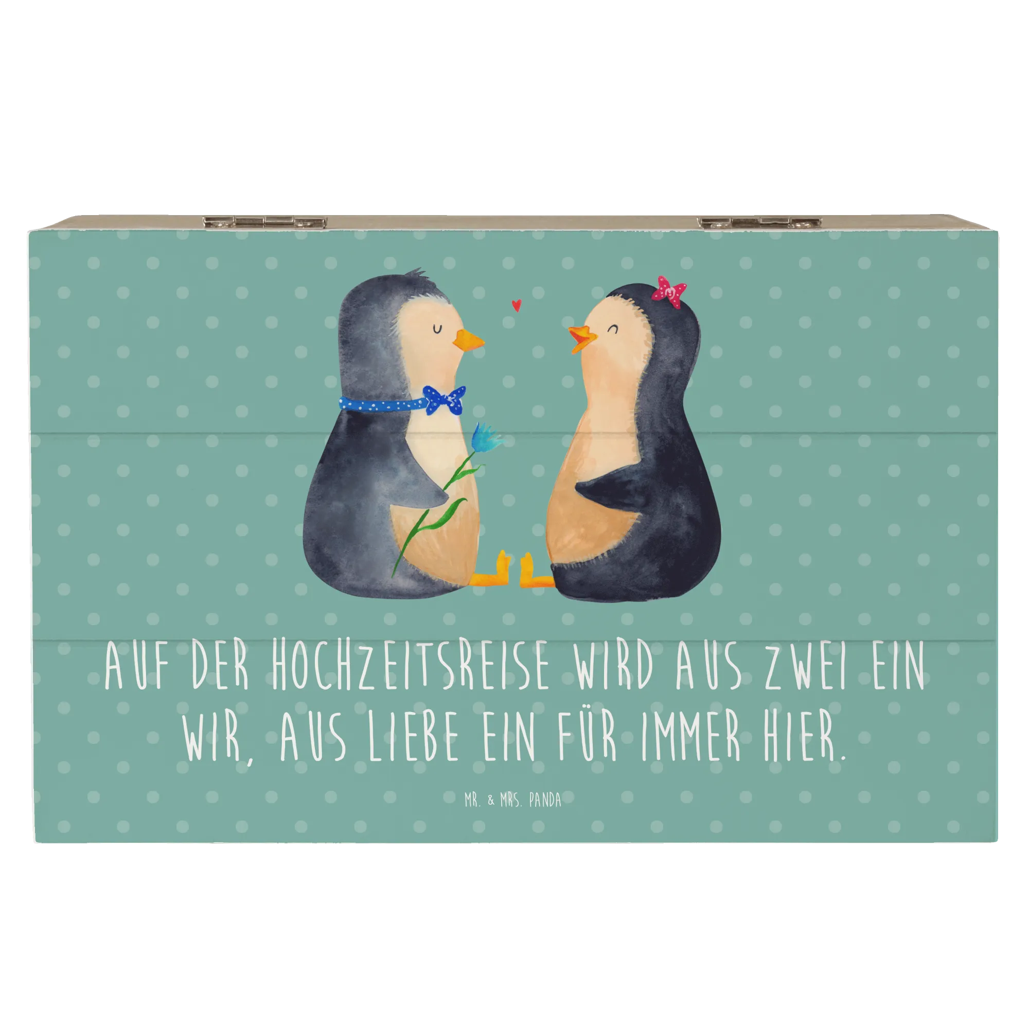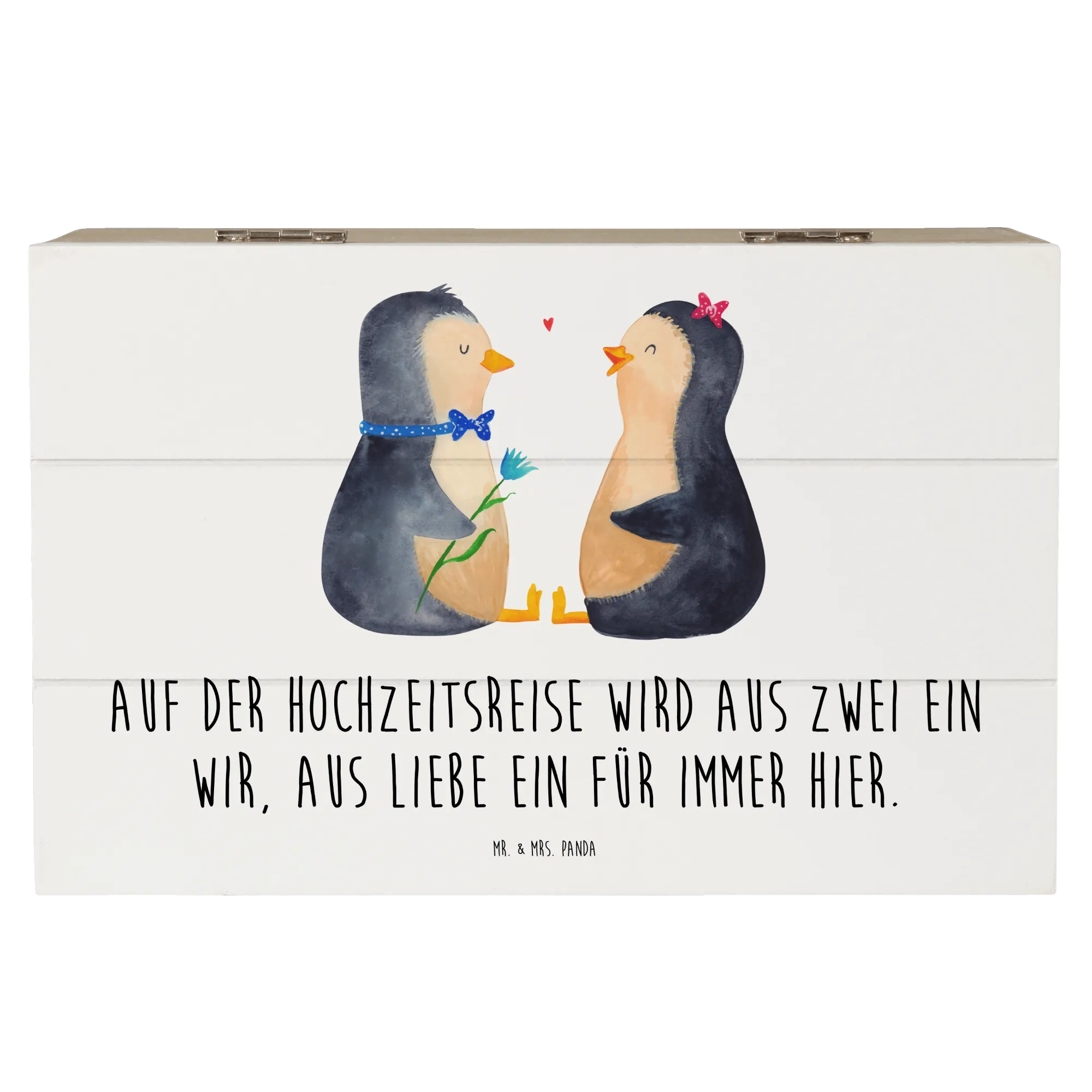 Wooden chest Auf der Hochzeitsreise wird aus Zwei ein Wir, aus Liebe e – Mr. & Mrs. Panda