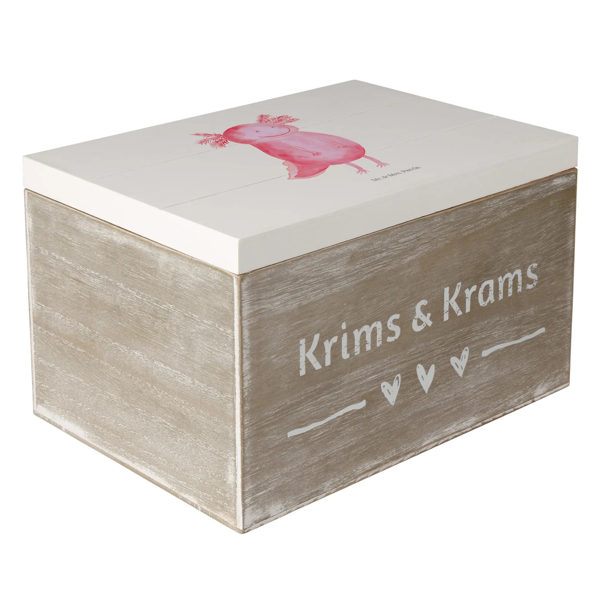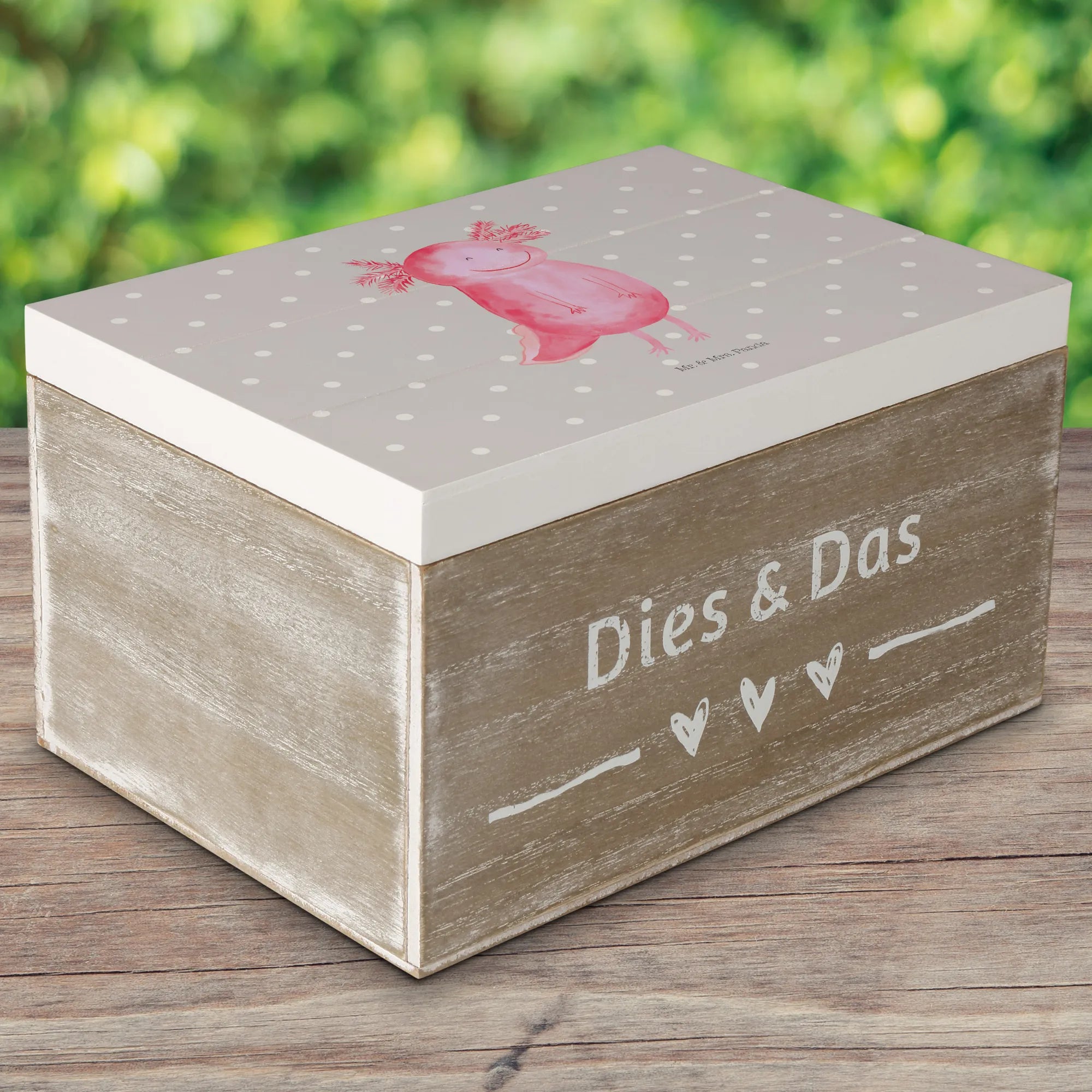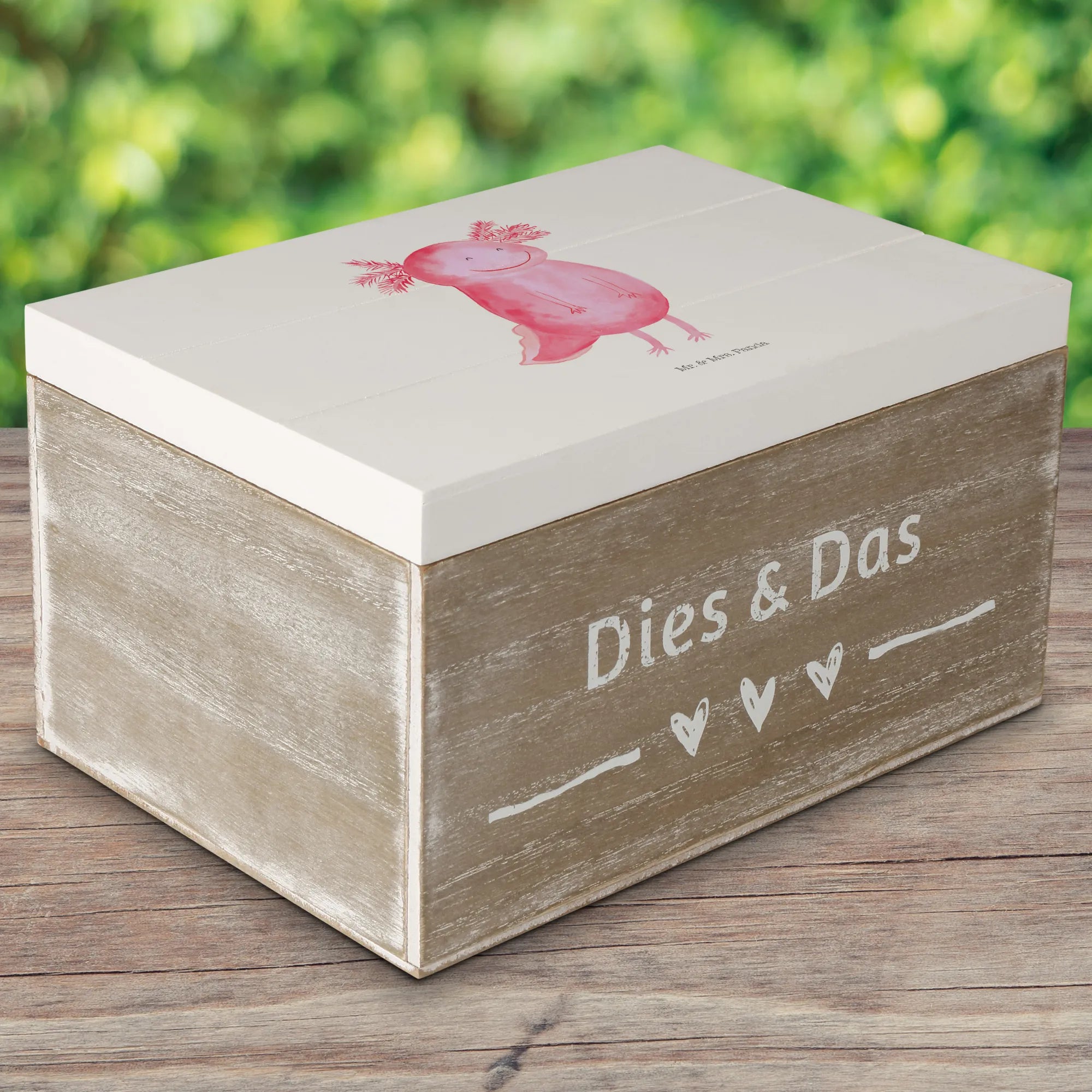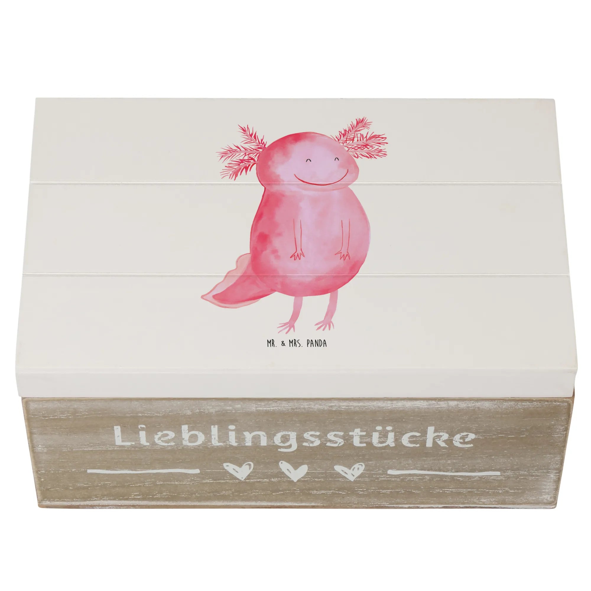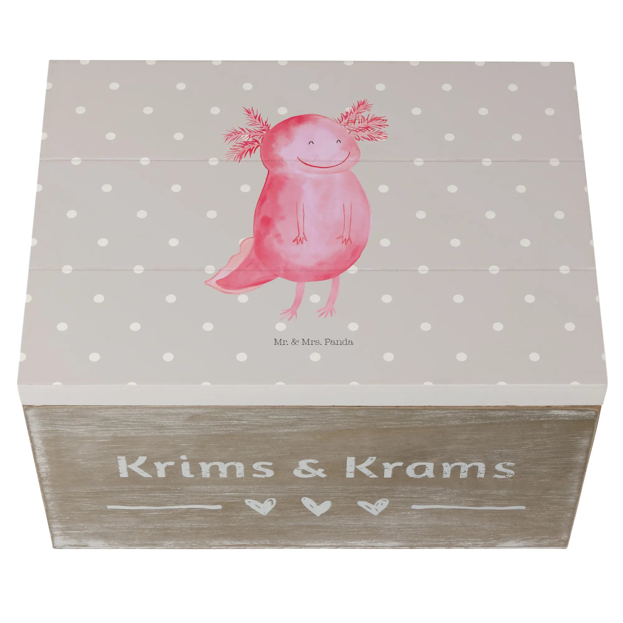 Wooden chest axolotl Happy - 22 x 15 cm - with saying - Pastel Gray