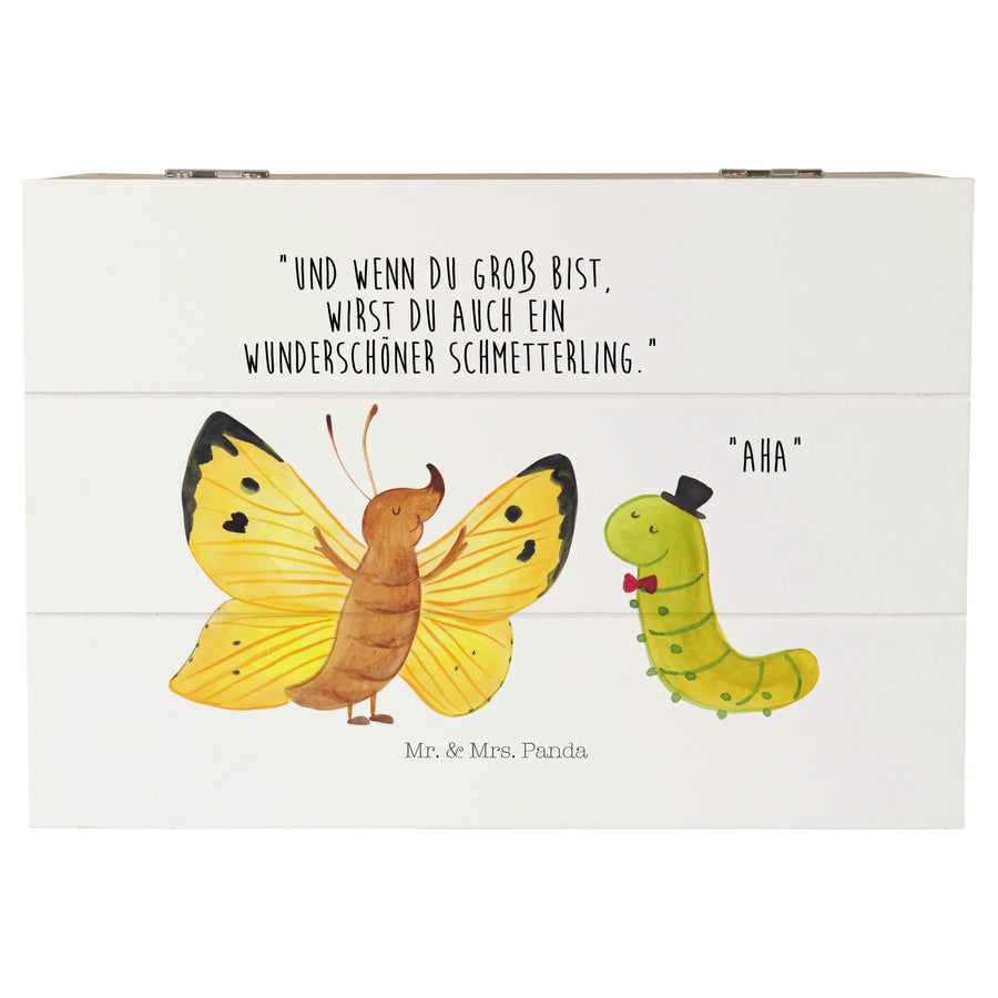 Wooden chest Caterpillar butterfly - 22 x 15 cm - with saying - White