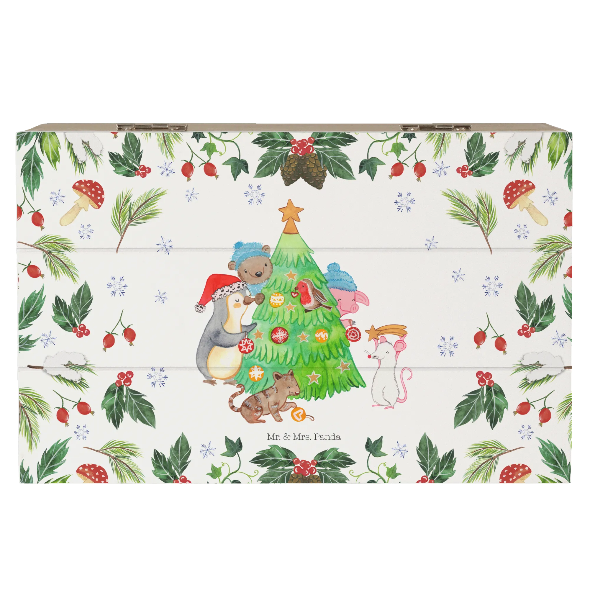 Winter is a magical time of year, and what better way to celebrate the season than with our lovely Wooden Chest from the Winter Collection by Mr. & Mrs. Panda! This beautifully designed treasure chest, featuring cheerful winter motifs of a penguin, a pig, a mouse, a cat, and a bear decorating a Christmas tree, captures the joy and warmth of the holiday spirit.