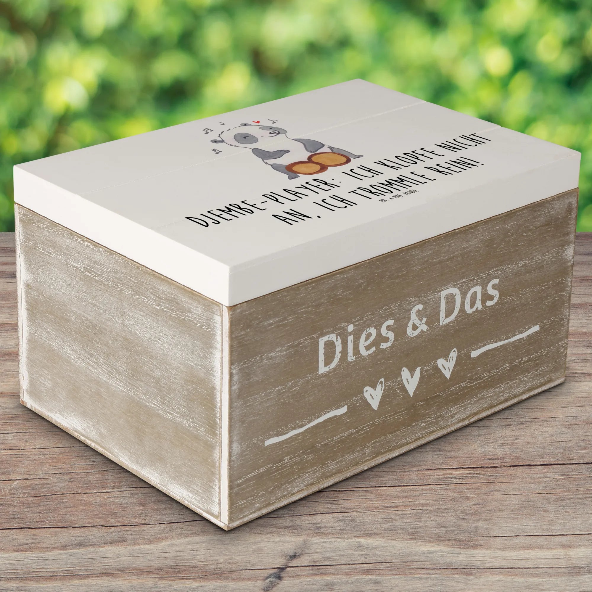Wooden chest Djembe-Player: Ich klopfe nicht an, ich trommle rein! - 22 x 15 cm - White
