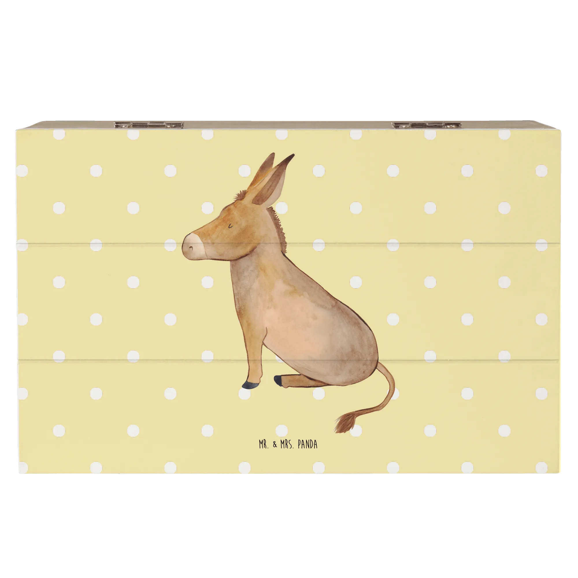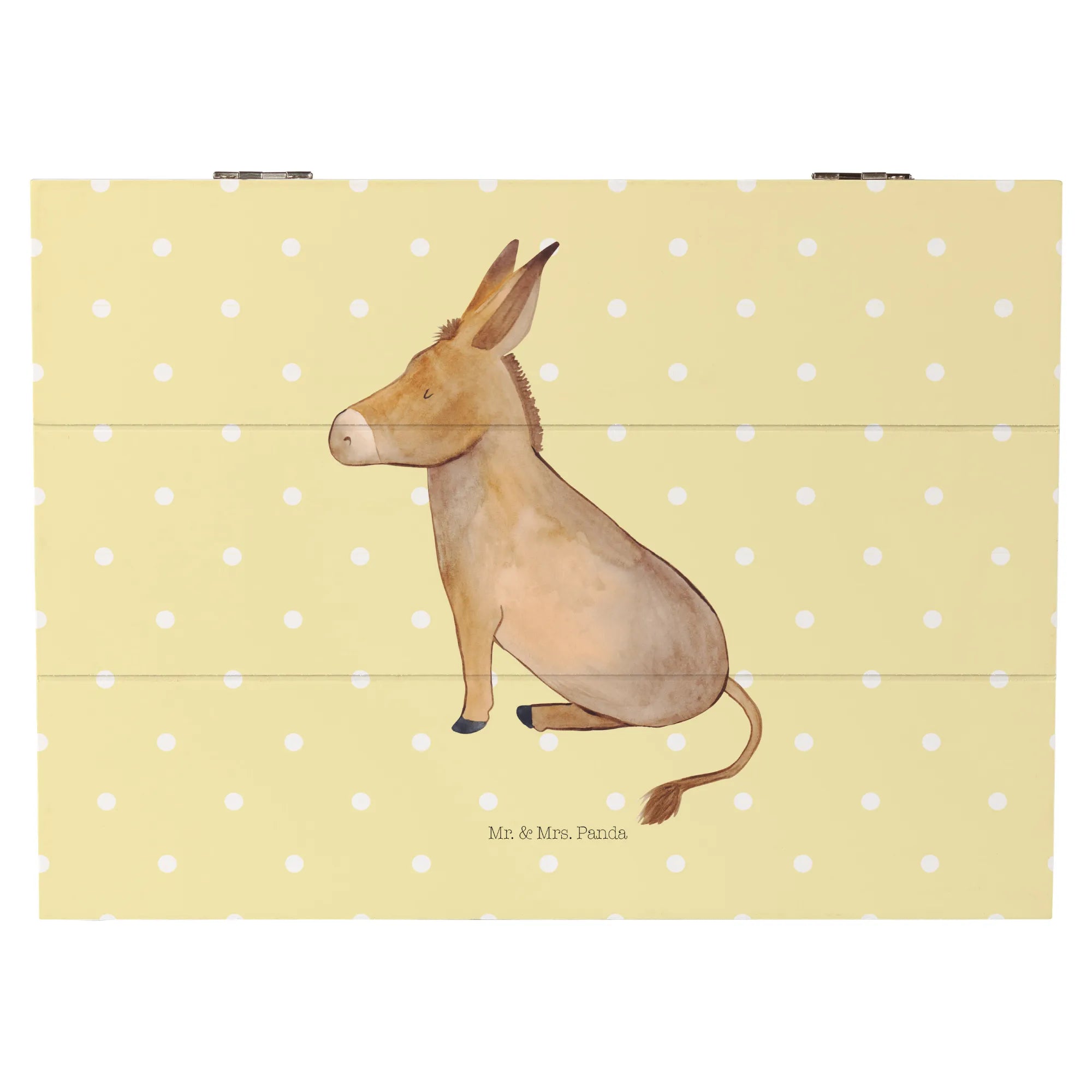 Imagine this beautiful chest nestled in your home, ready to store everything from childhood drawings to momentos from celebratory occasions like communions or confirmations. With its soft, pastel yellow background and adorable hand-drawn donkey, this memory box doesn't just keep your treasures safe; it also adds a touch of whimsy and charm to any space!