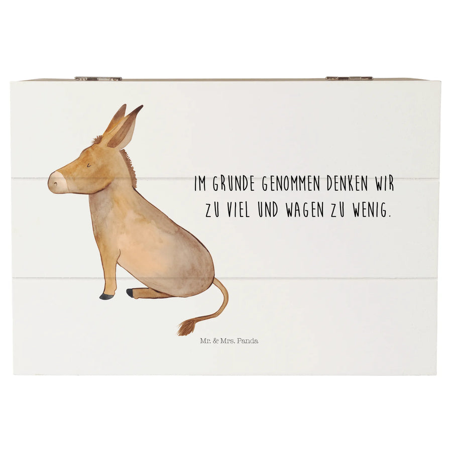 Wooden chest Donkey - 22 x 15 cm - with a saying - White