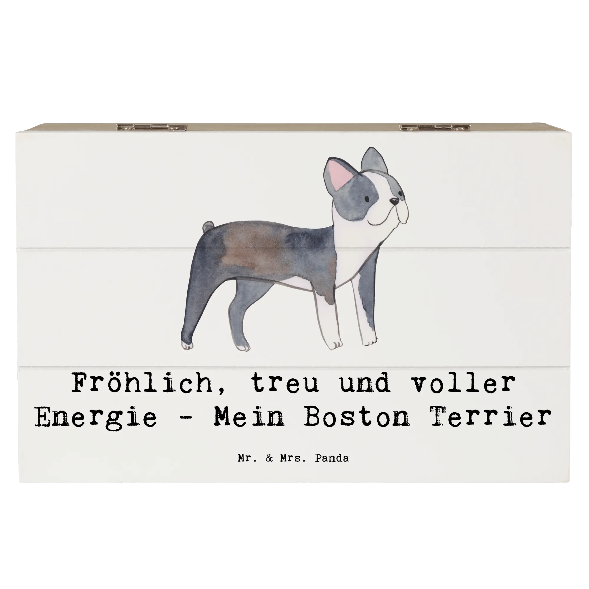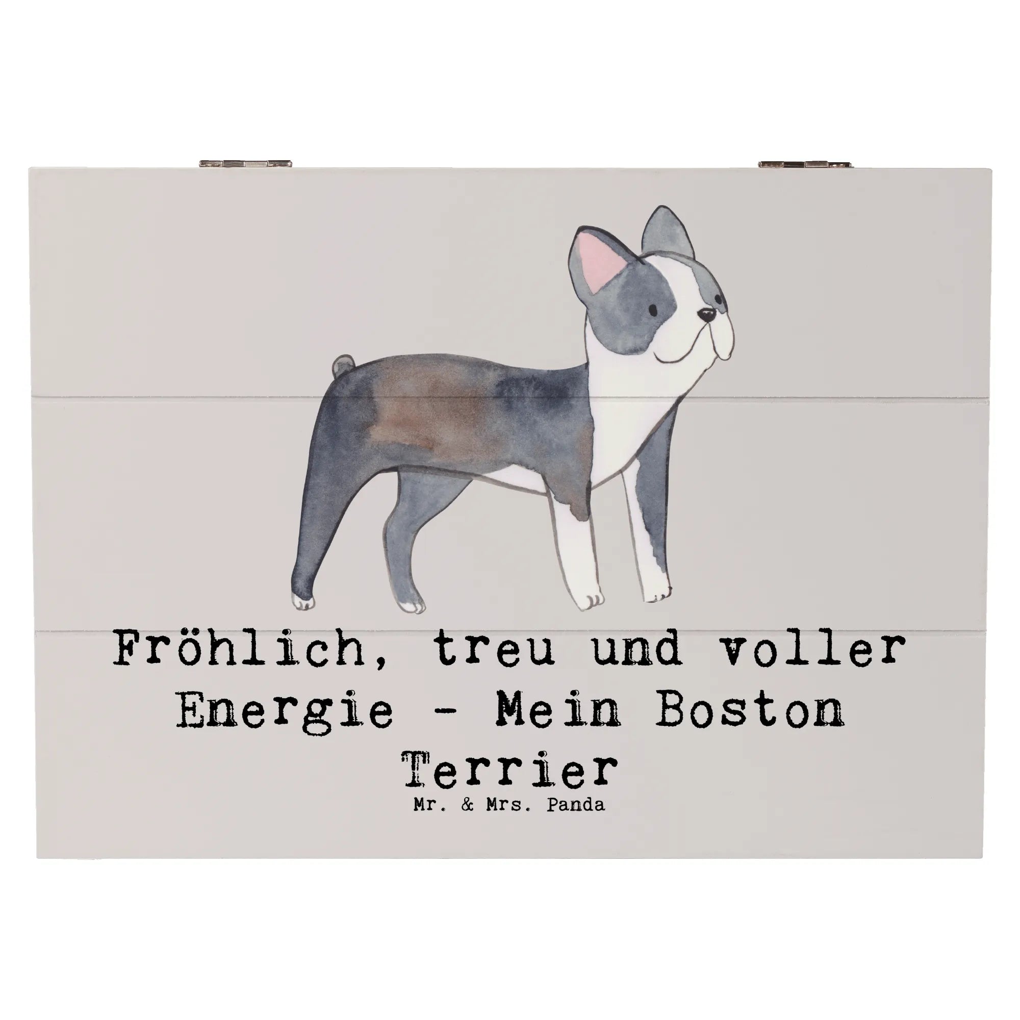 Wooden chest Fröhlich, treu und voller Energie - Mein Boston Terrier - 22 x 15 cm - Grey Pastel