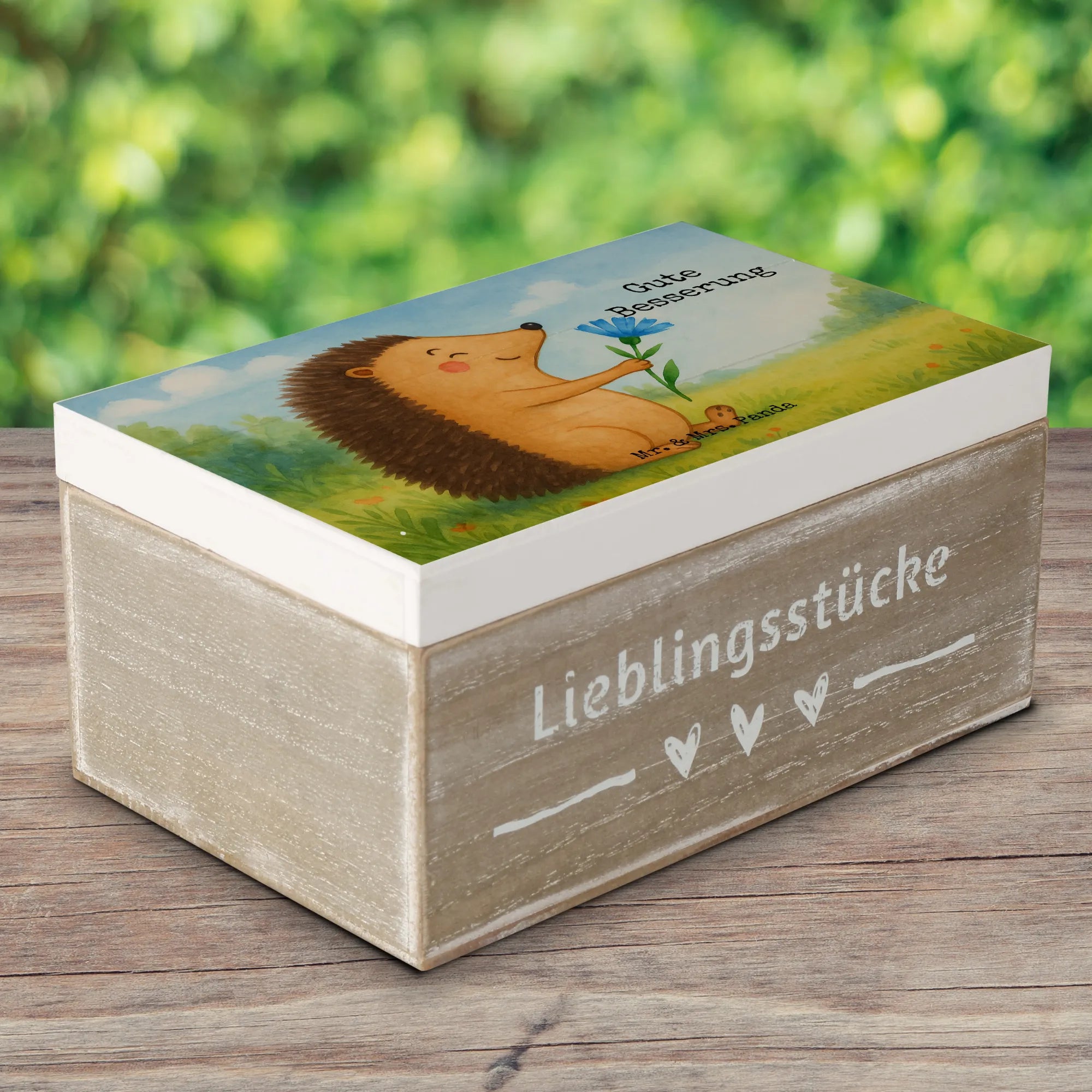Wooden chest Hedgehog Flower Design - 22 x 15 cm - with saying