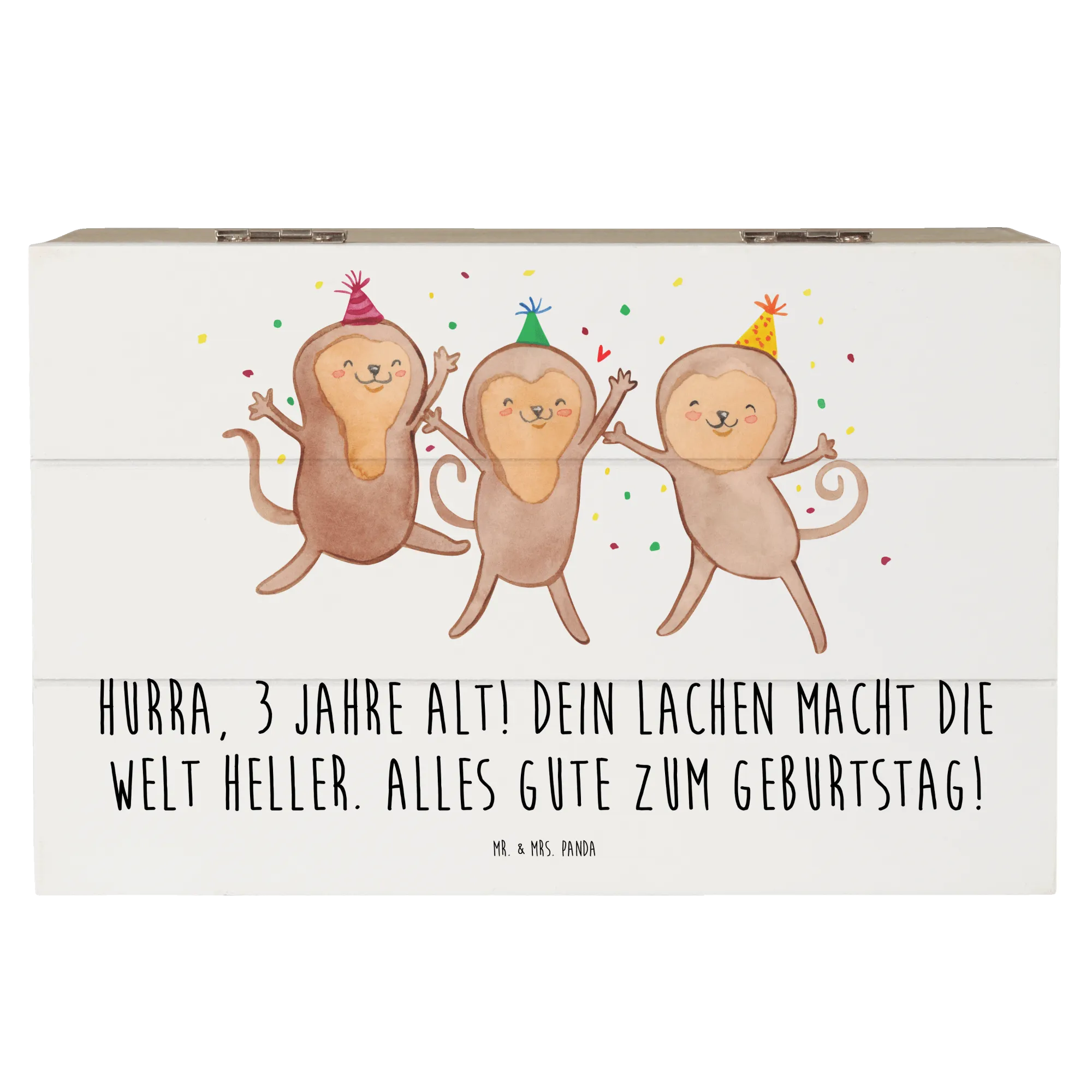 Wooden chest Hurra, 3 Jahre alt! Dein Lachen macht die Welt heller. Alles Gute zum Geburtstag! - 22 x 15 cm