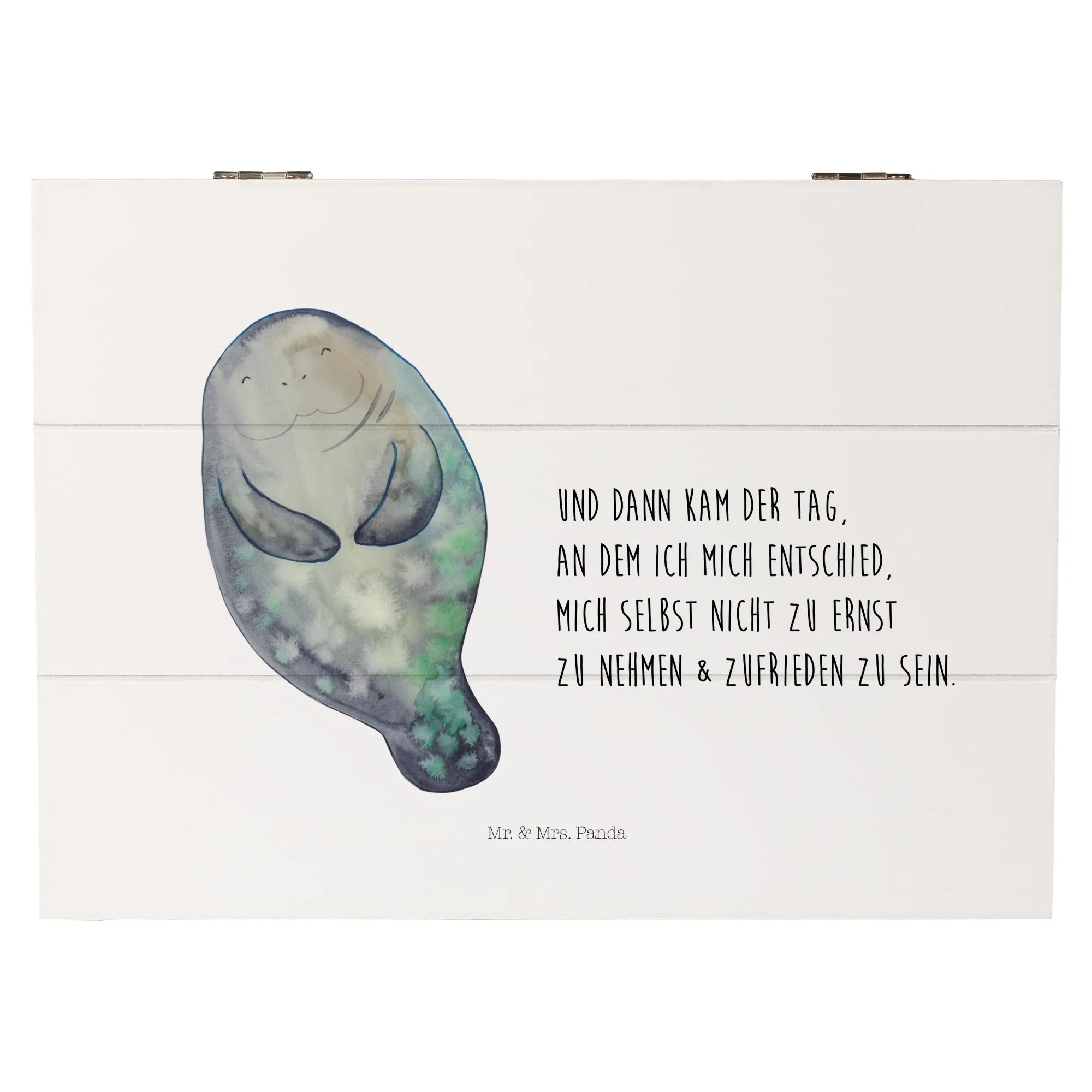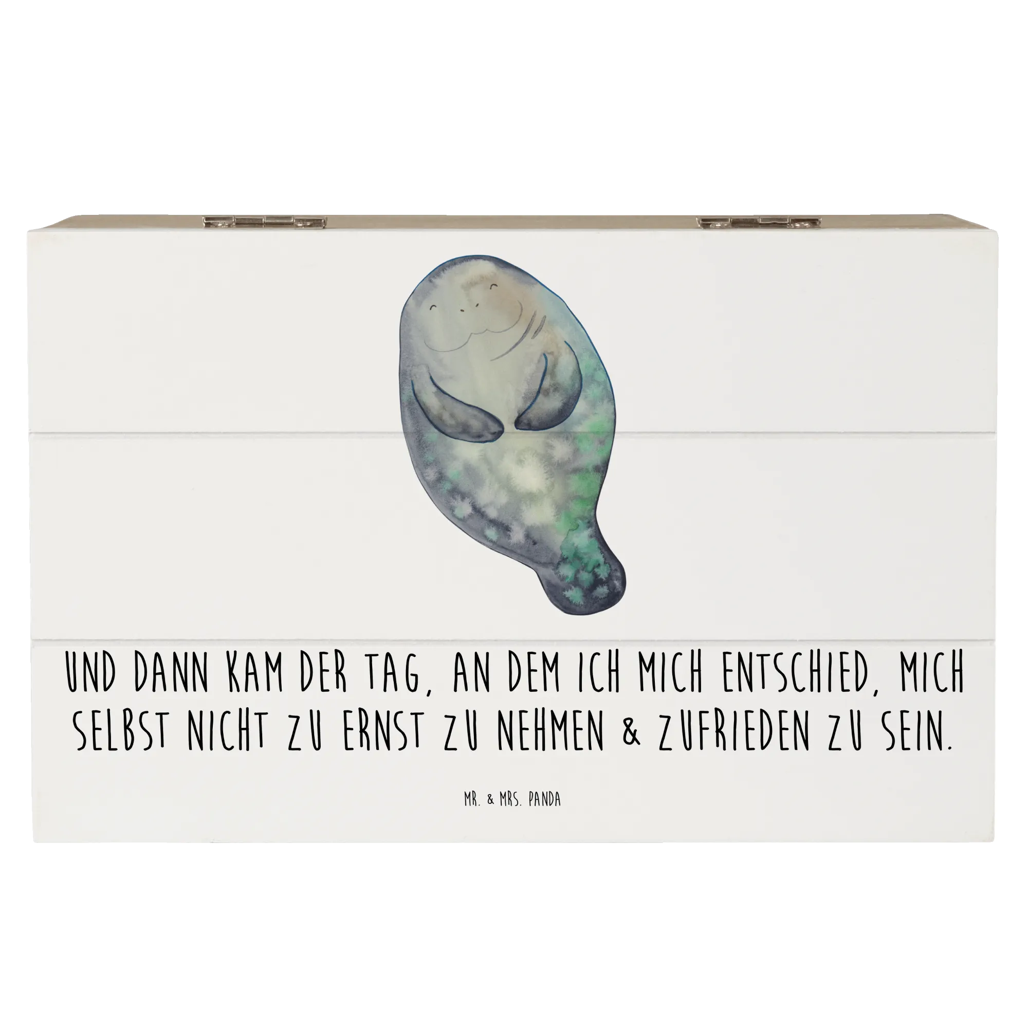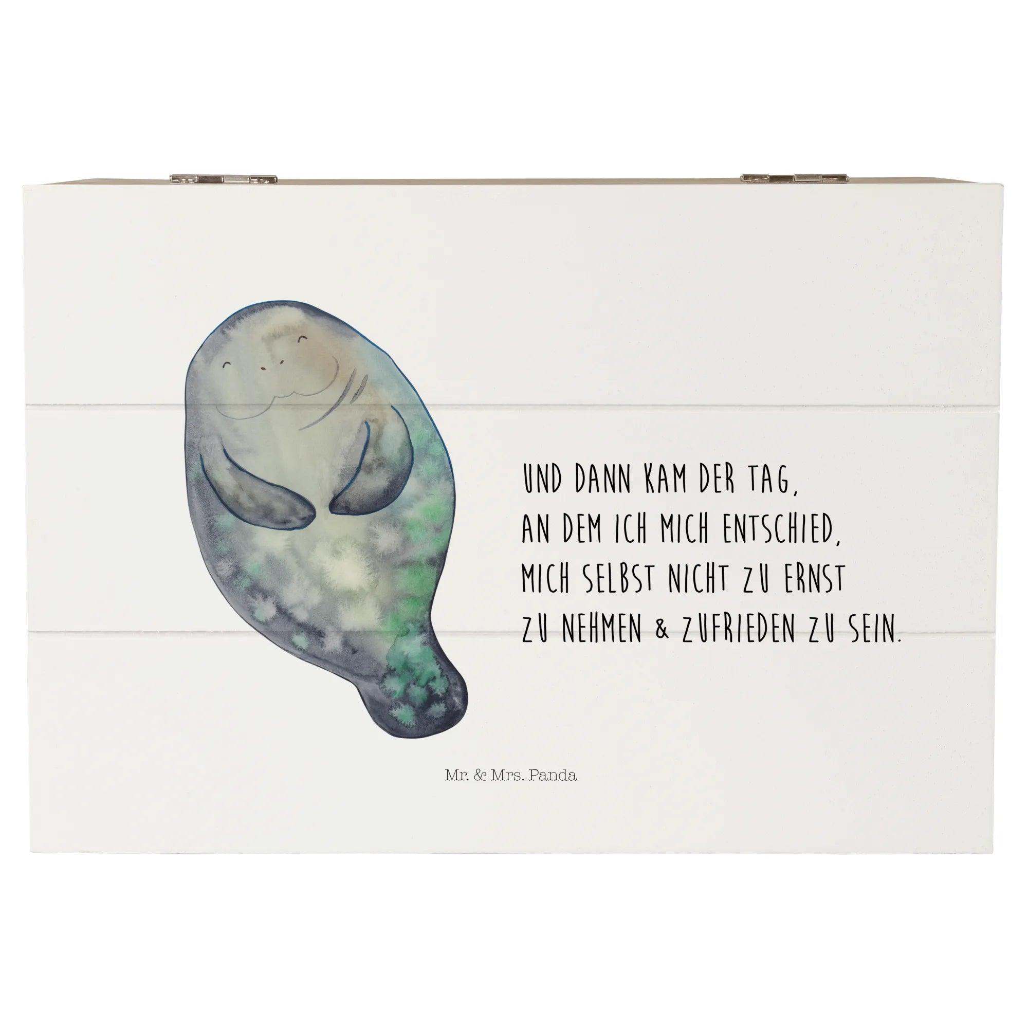 Wooden chest manatee happy - 22 x 15 cm - with a saying - White
