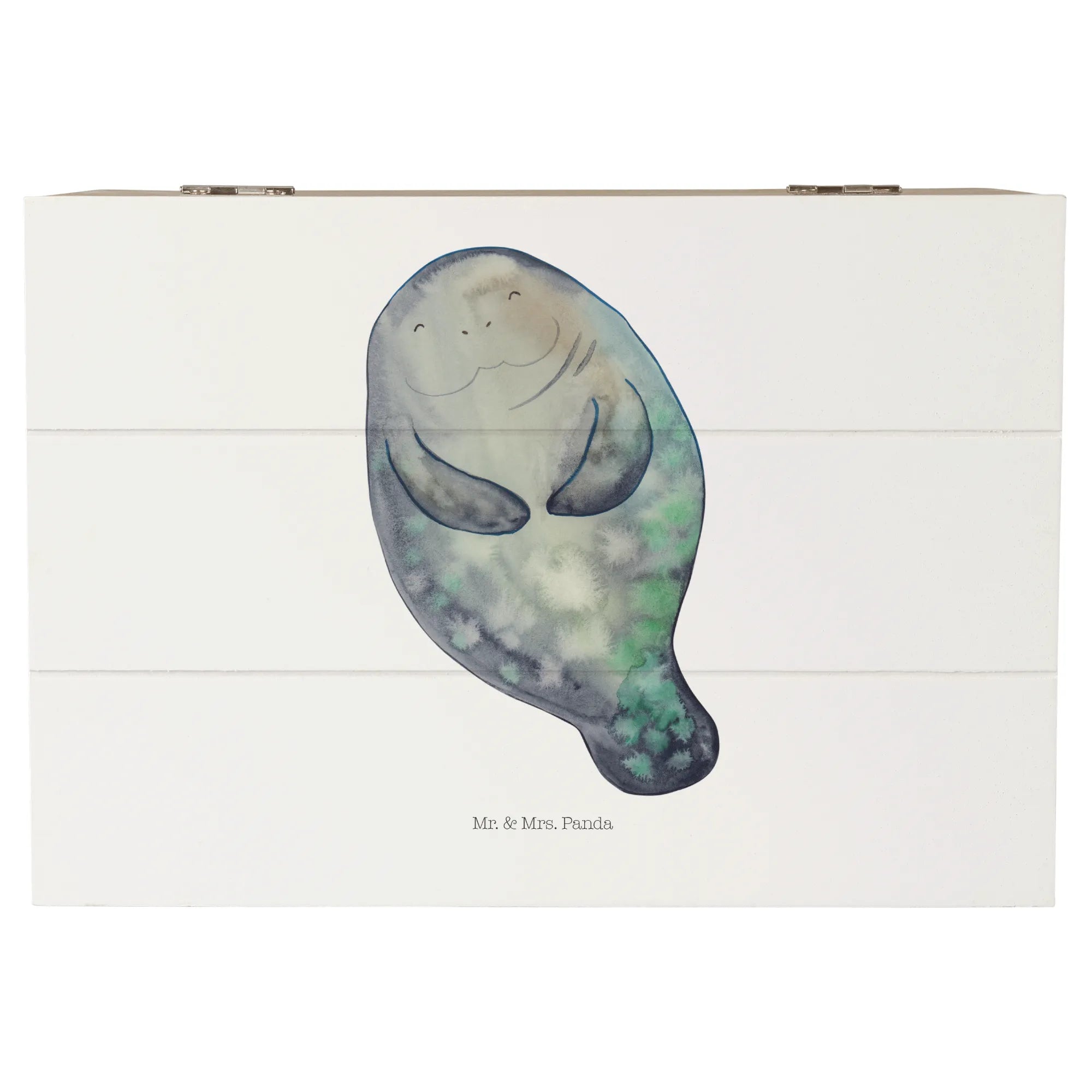 Introducing the charming and delightful Wooden Box - Manatee Happy from Mr. & Mrs. Panda! This beautiful chest is not just a storage solution but a treasure trove of love and memories, perfect for those who appreciate the gentle nature of manatees and the serene beauty of aquatic life.