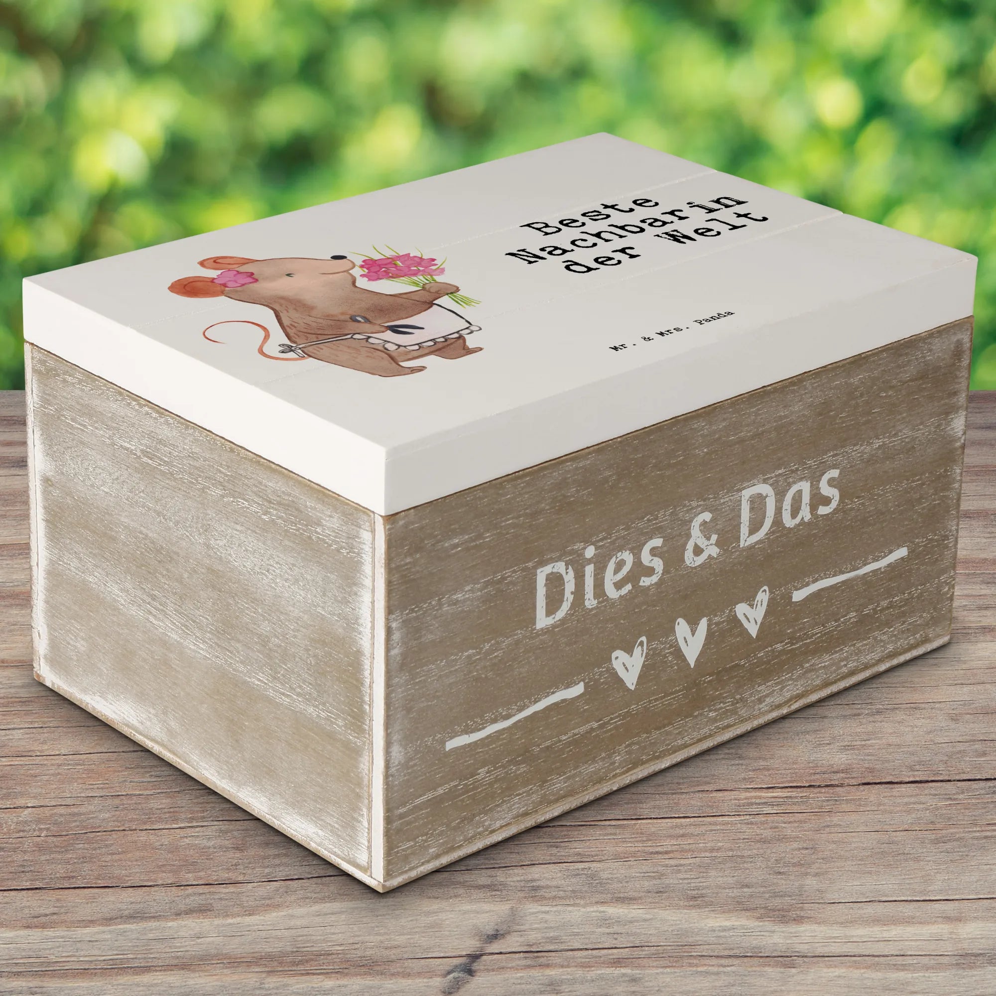 Wooden chest Mouse Best neighbor in the world - 22 x 15 cm - White