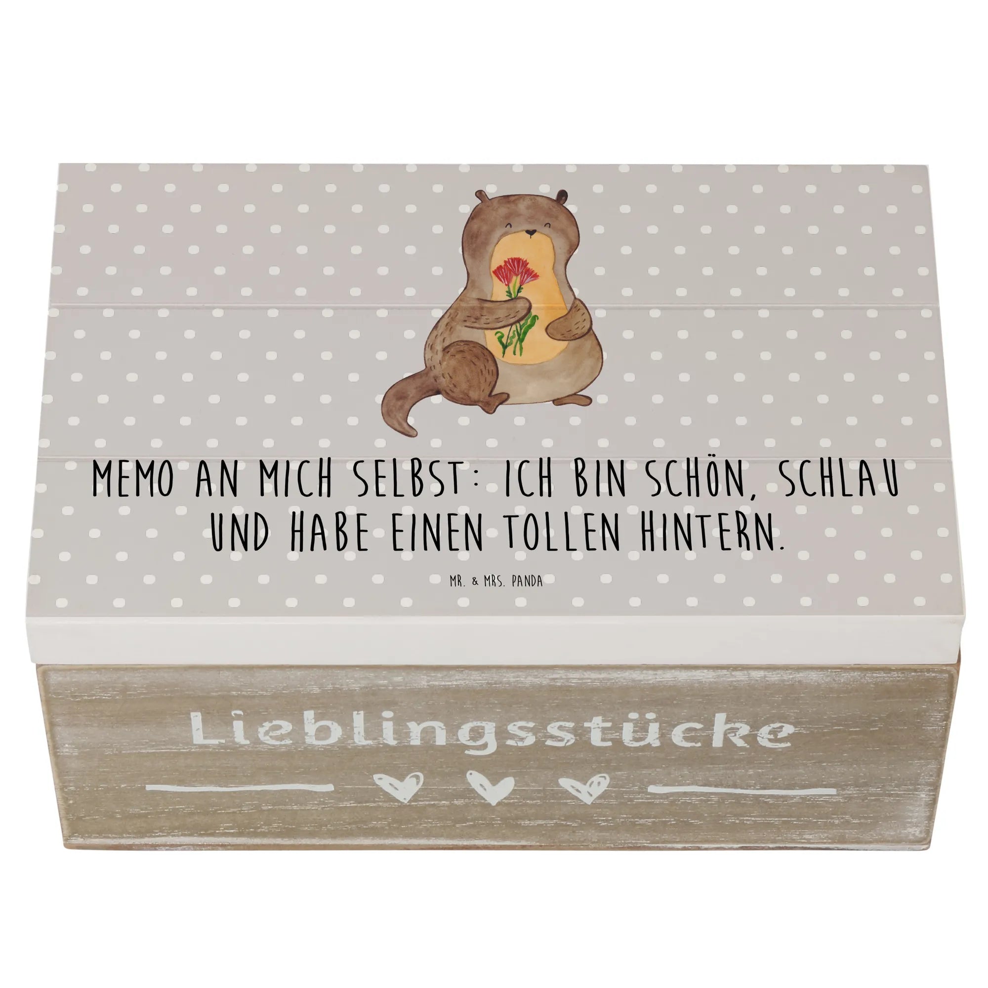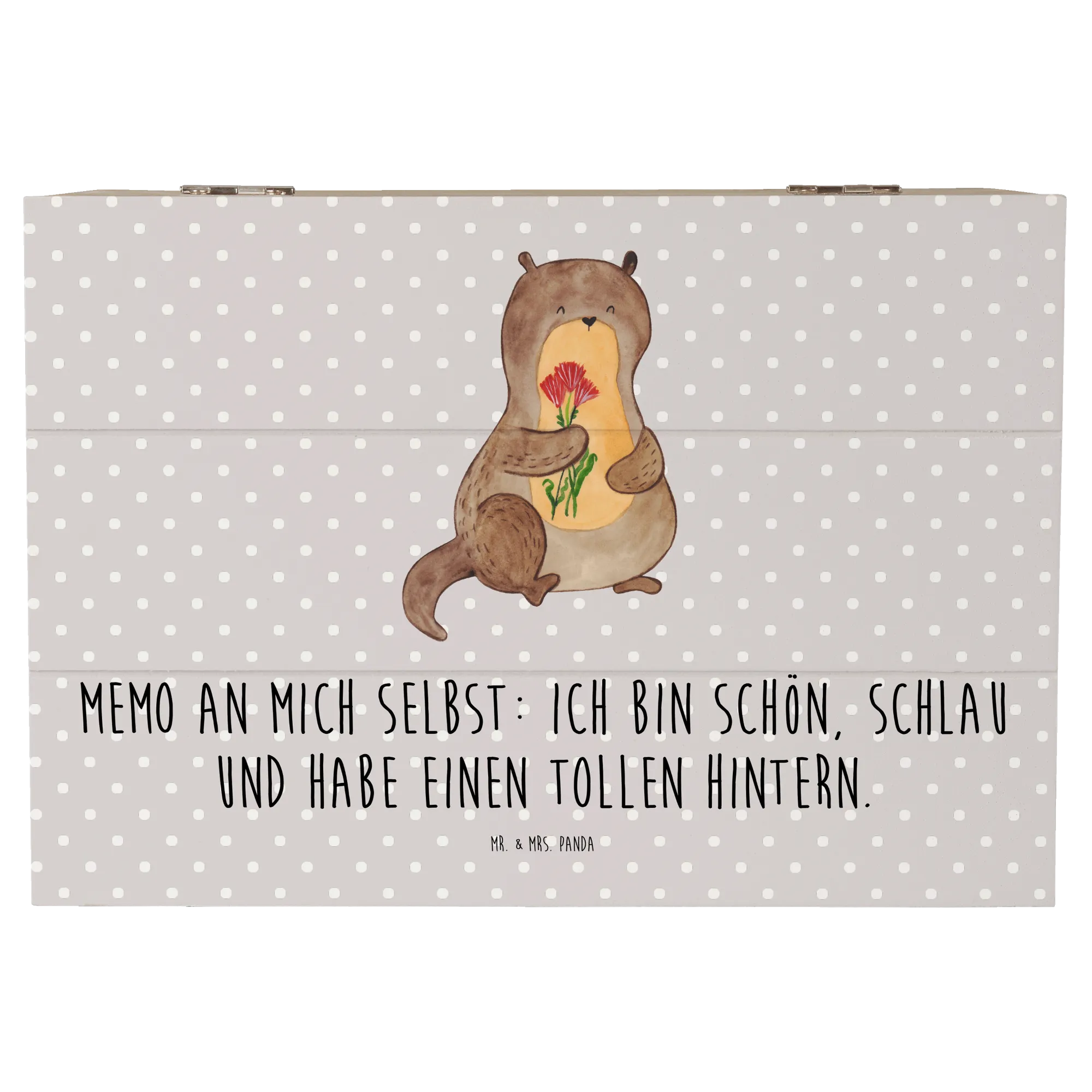 Why not surprise a loved one or treat yourself to this delightful wooden box? Gift it as a unique birthday present, a thoughtful surprise for an anniversary, or simply as a way to say “I appreciate you.” The Mr. & Mrs. Panda Wooden Chest is the ultimate otter gift that combines charm with practicality, and we guarantee it will bring a smile to anyone's face. Delight in the joy of gift-giving by presenting this special casket filled with heartfelt memories, little trinkets, or even sweets!