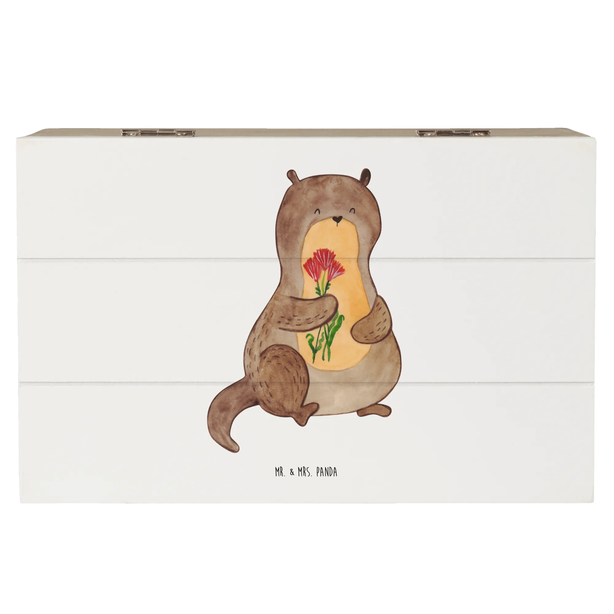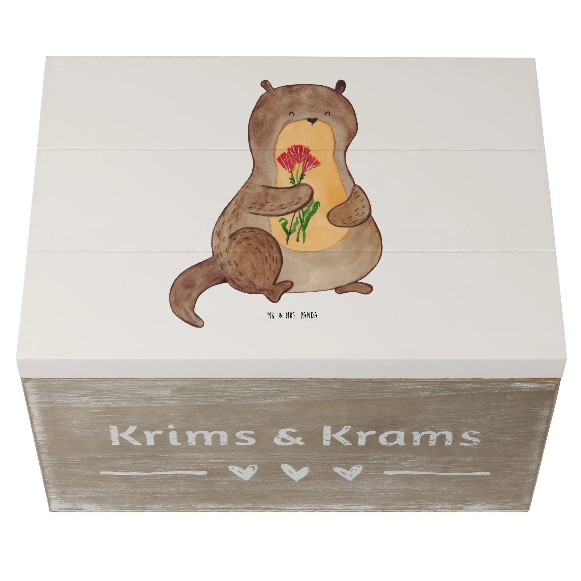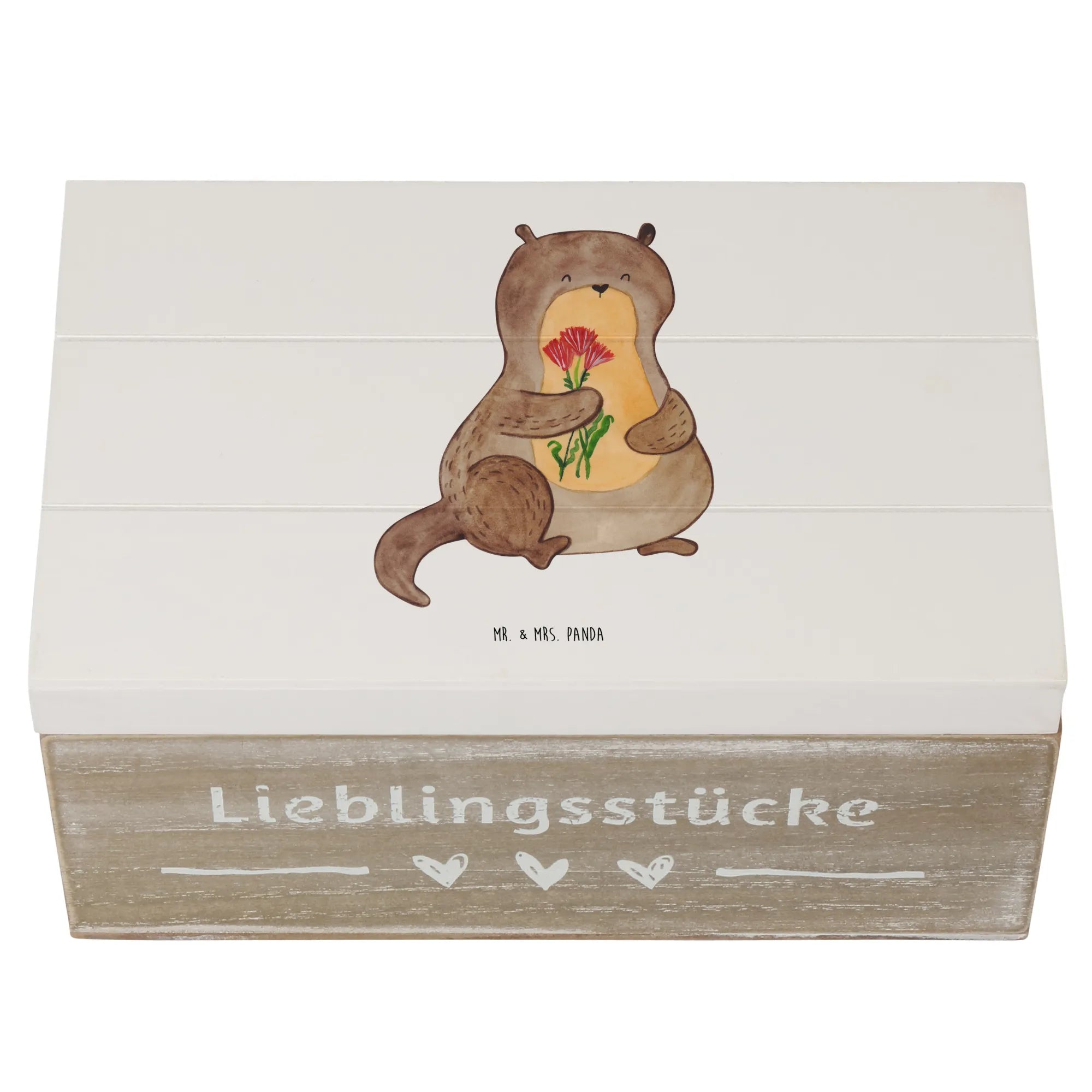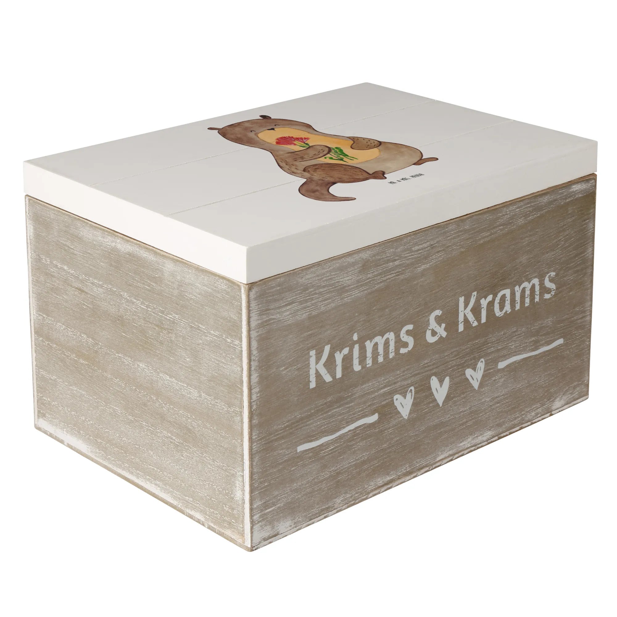 Wooden chest otter Bunch of flowers - 22 x 15 cm - with saying - White