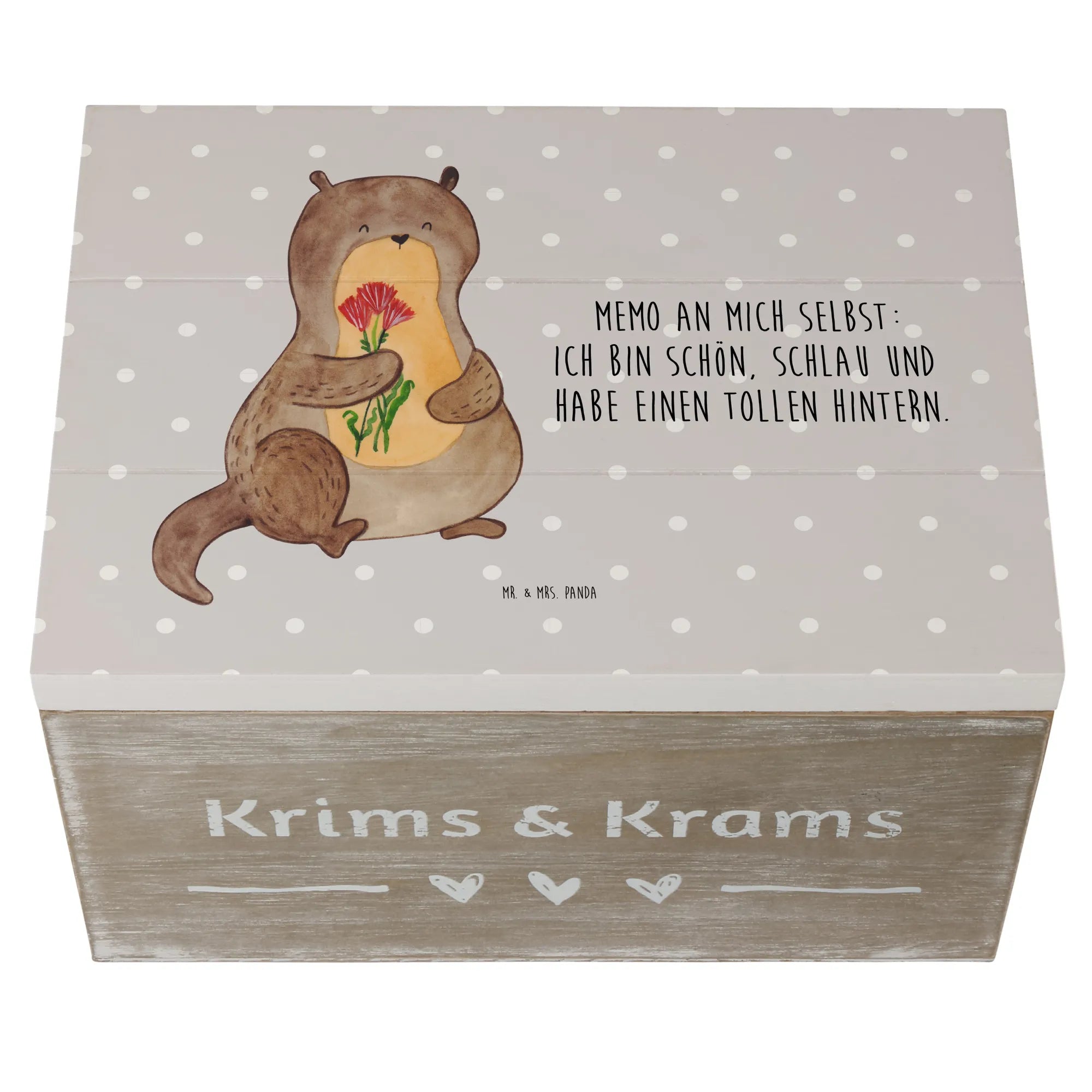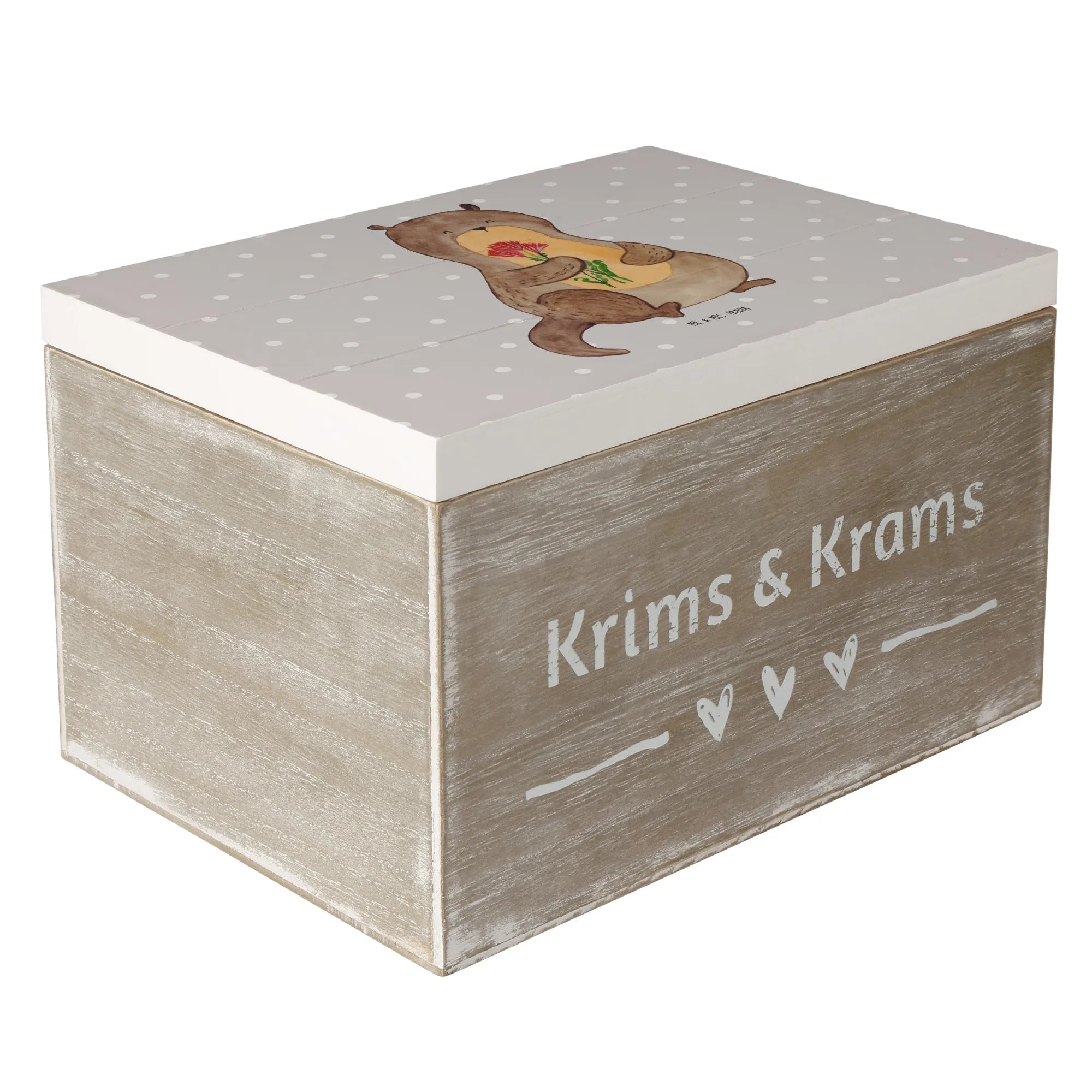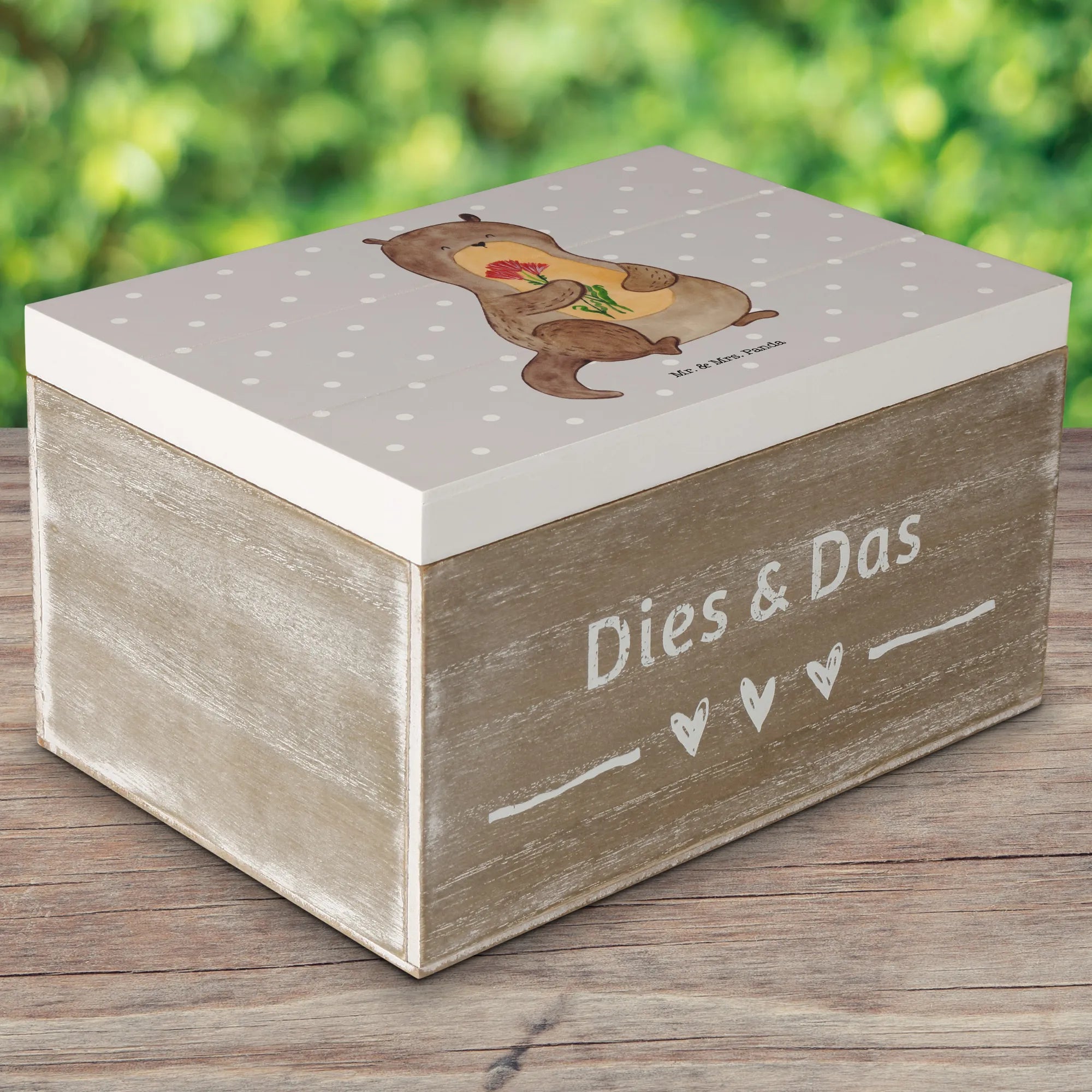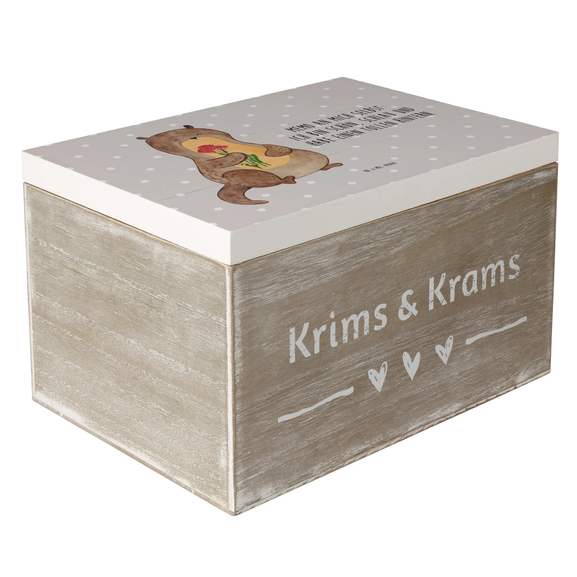 Wooden chest otter Bunch of flowers - 22 x 15 cm - with saying - White