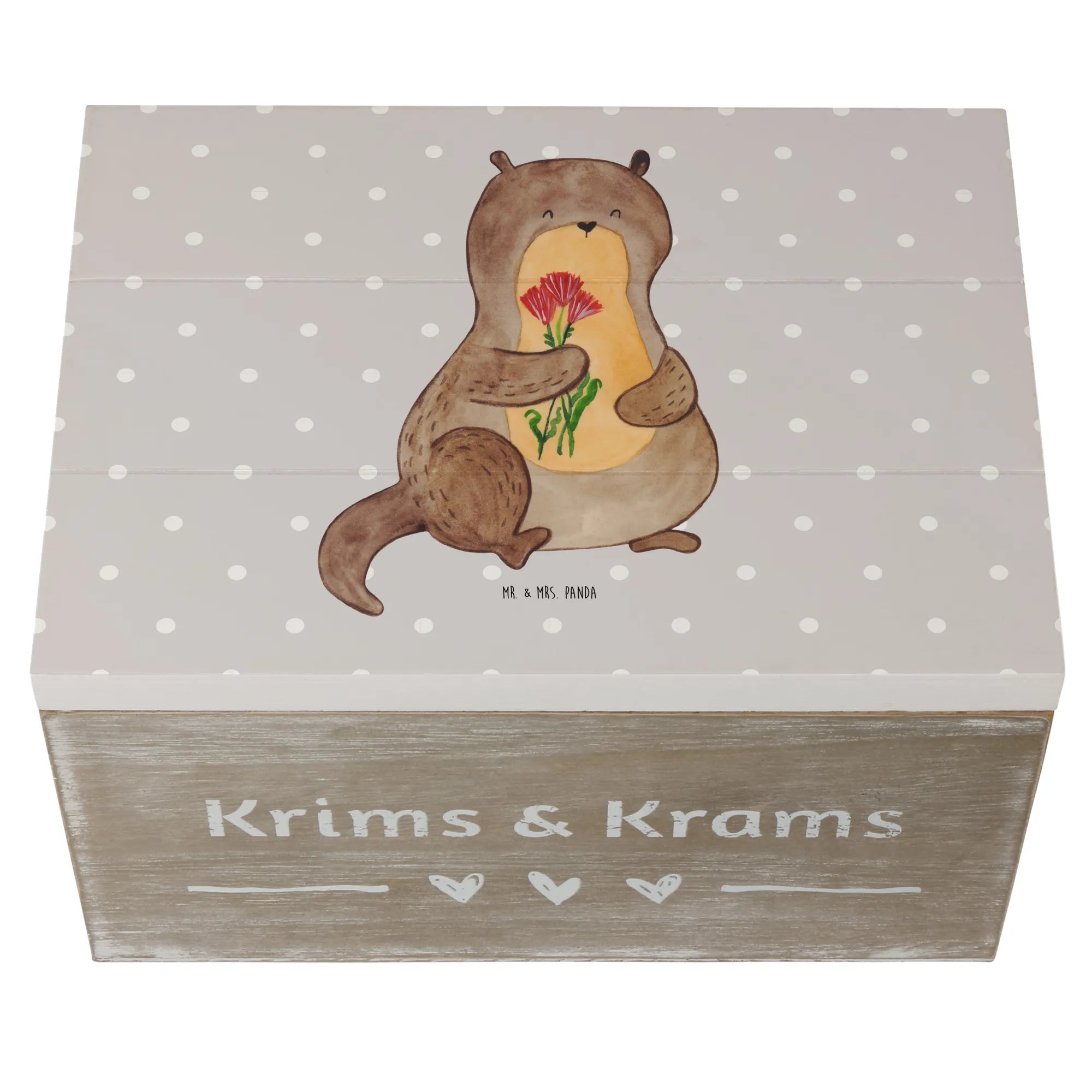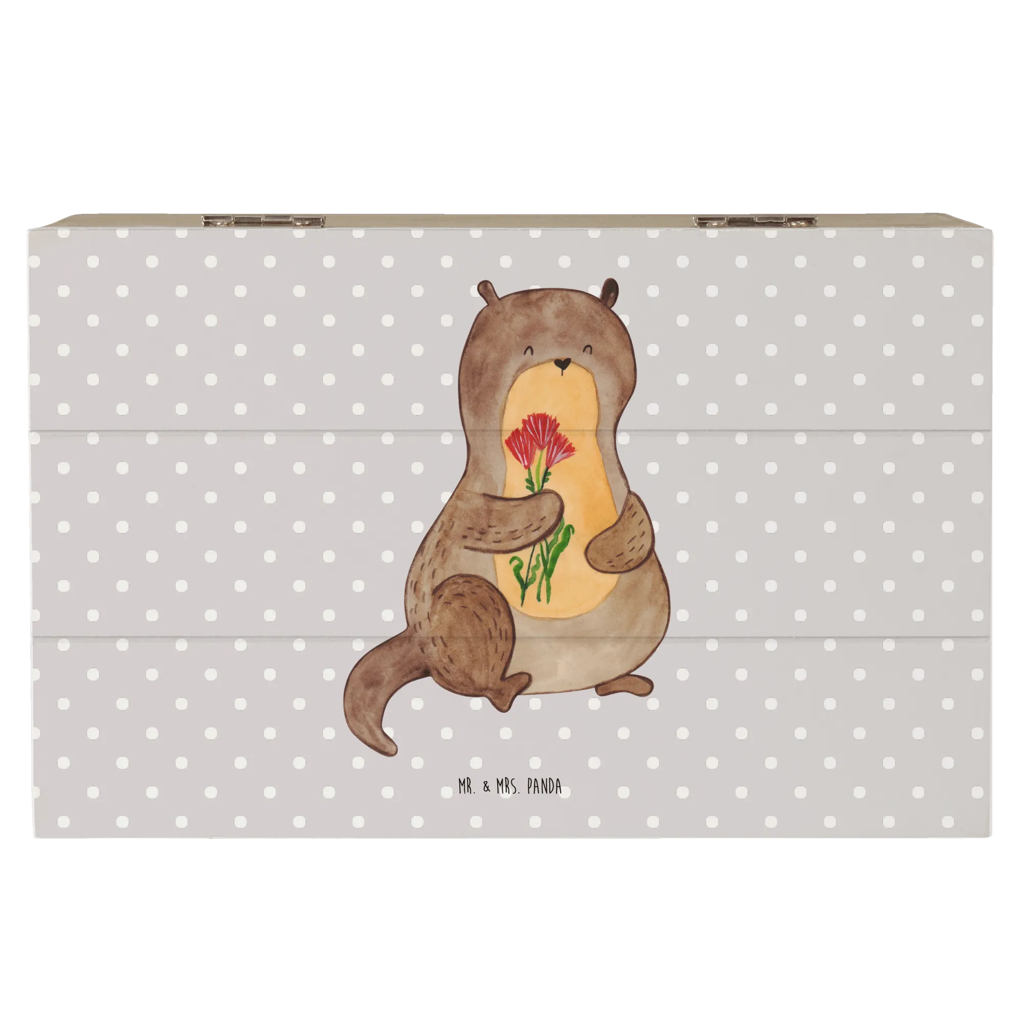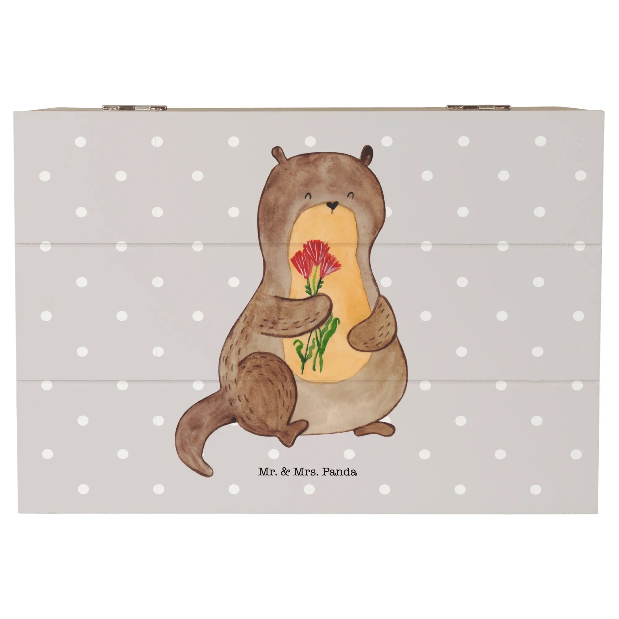 The unique design showcases a sweet otter holding a bouquet of flowers, making it a perfect gift for animal lovers, especially those who adore otters! This beautiful piece is not just a storage solution; it’s a memory keeper, ideal for special occasions like communions, confirmations, or birthdays. It's a thoughtful way to preserve memories that can be cherished for years to come.