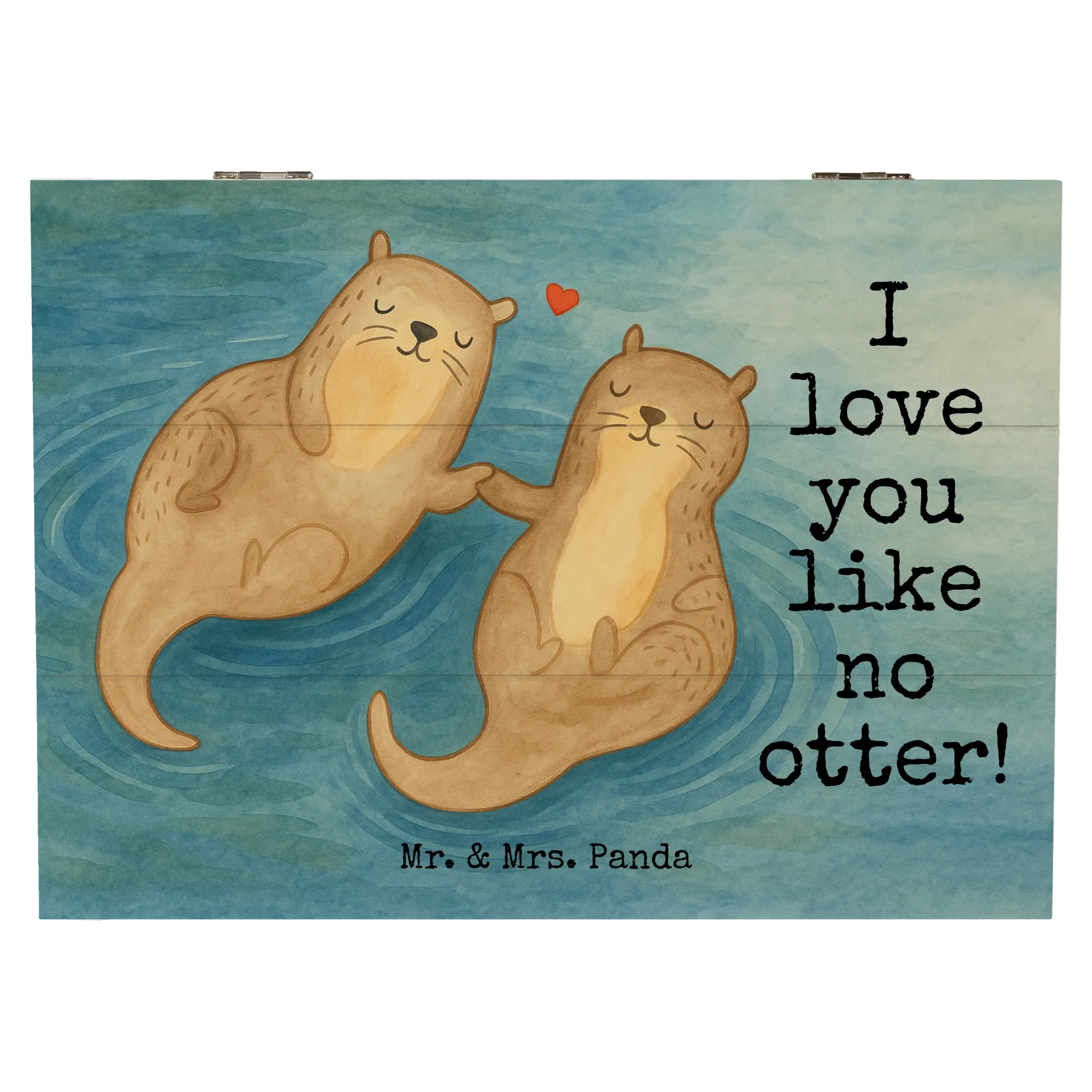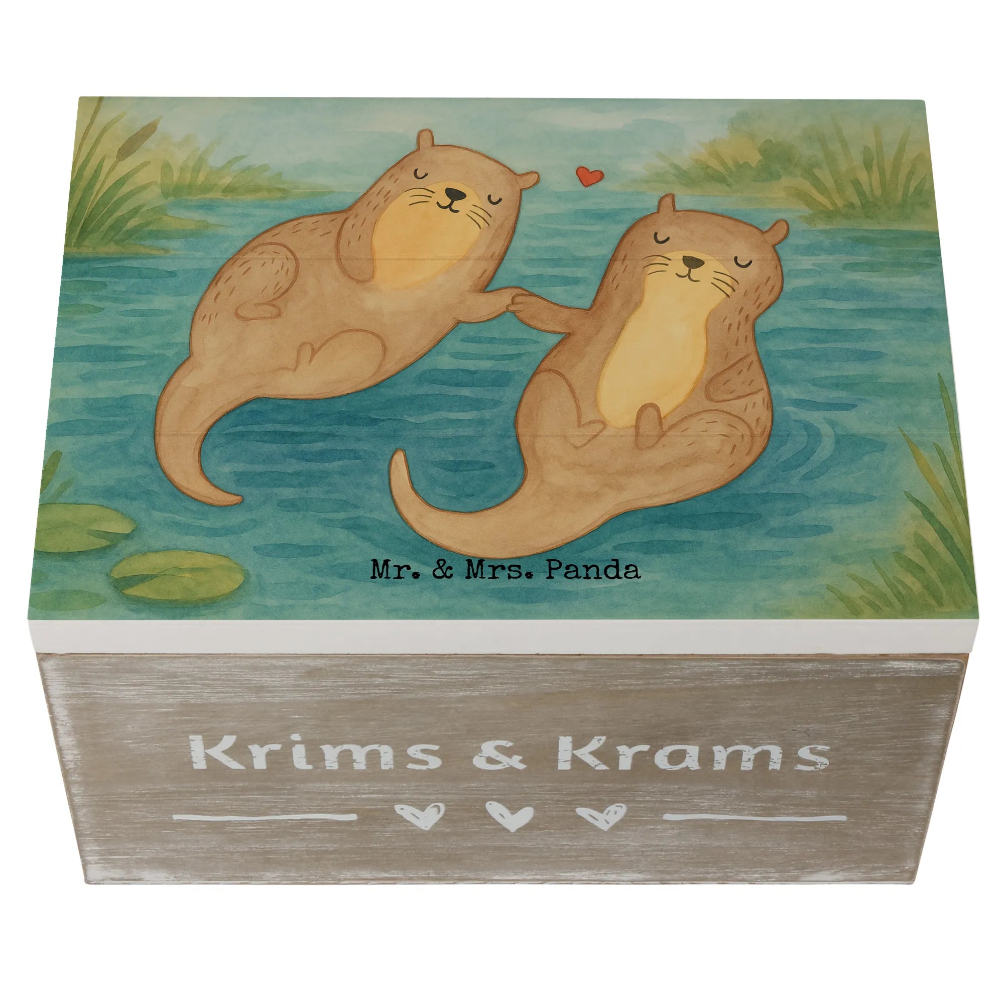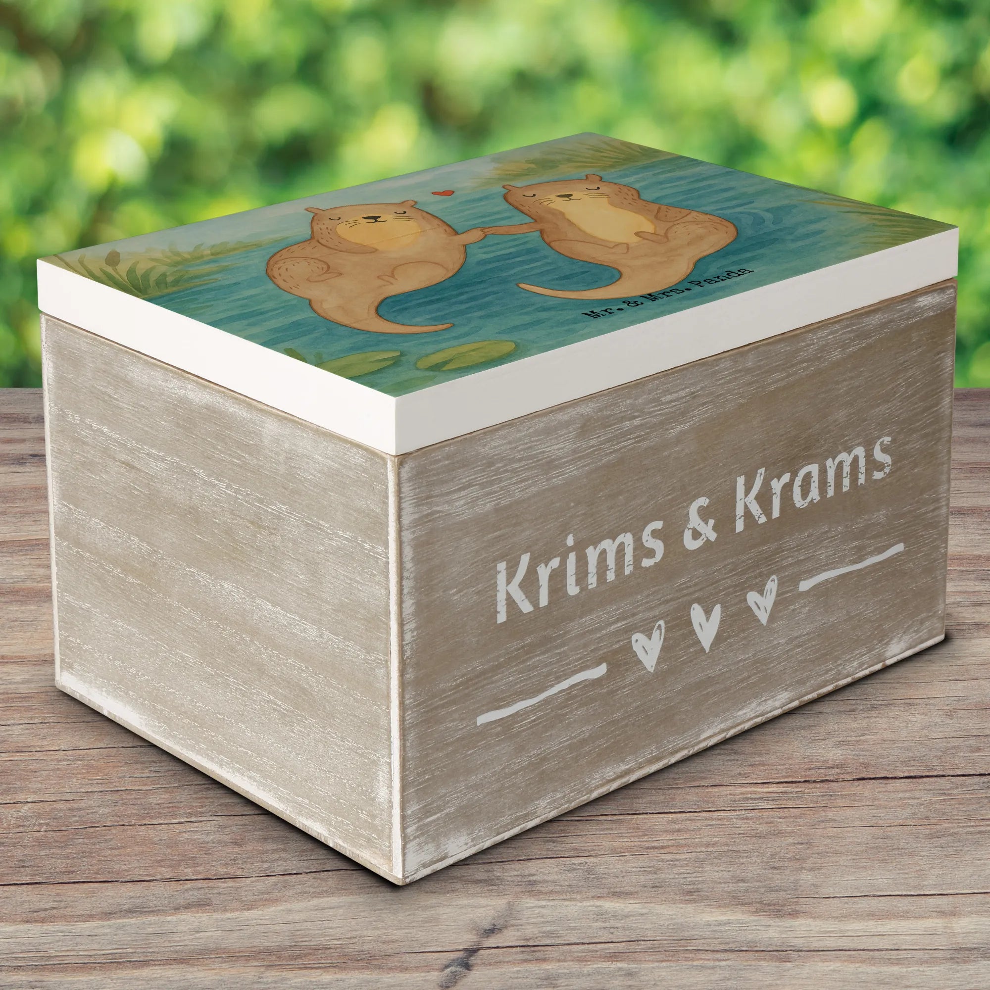 Wooden chest otter holding hands Design - 22 x 15 cm - with a saying