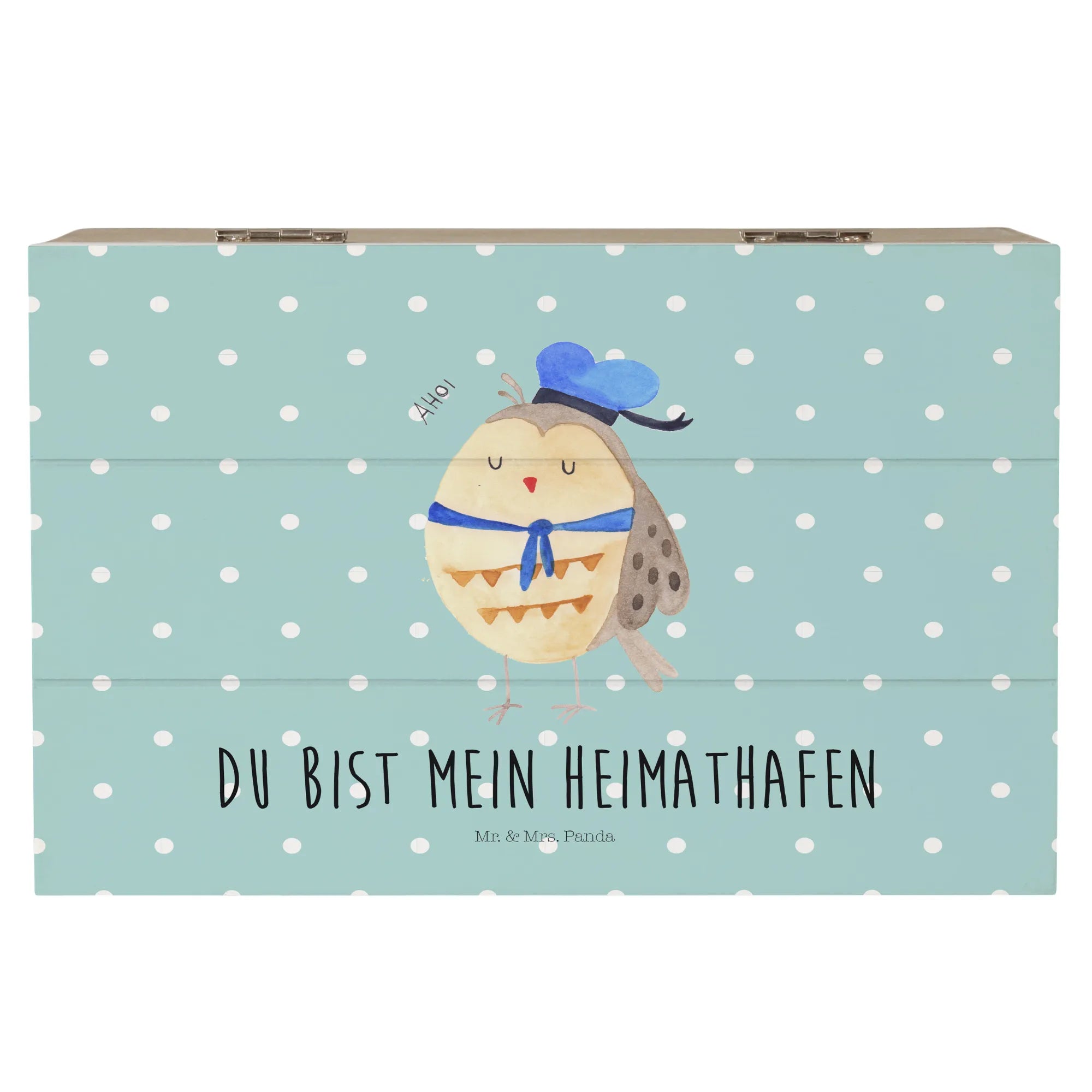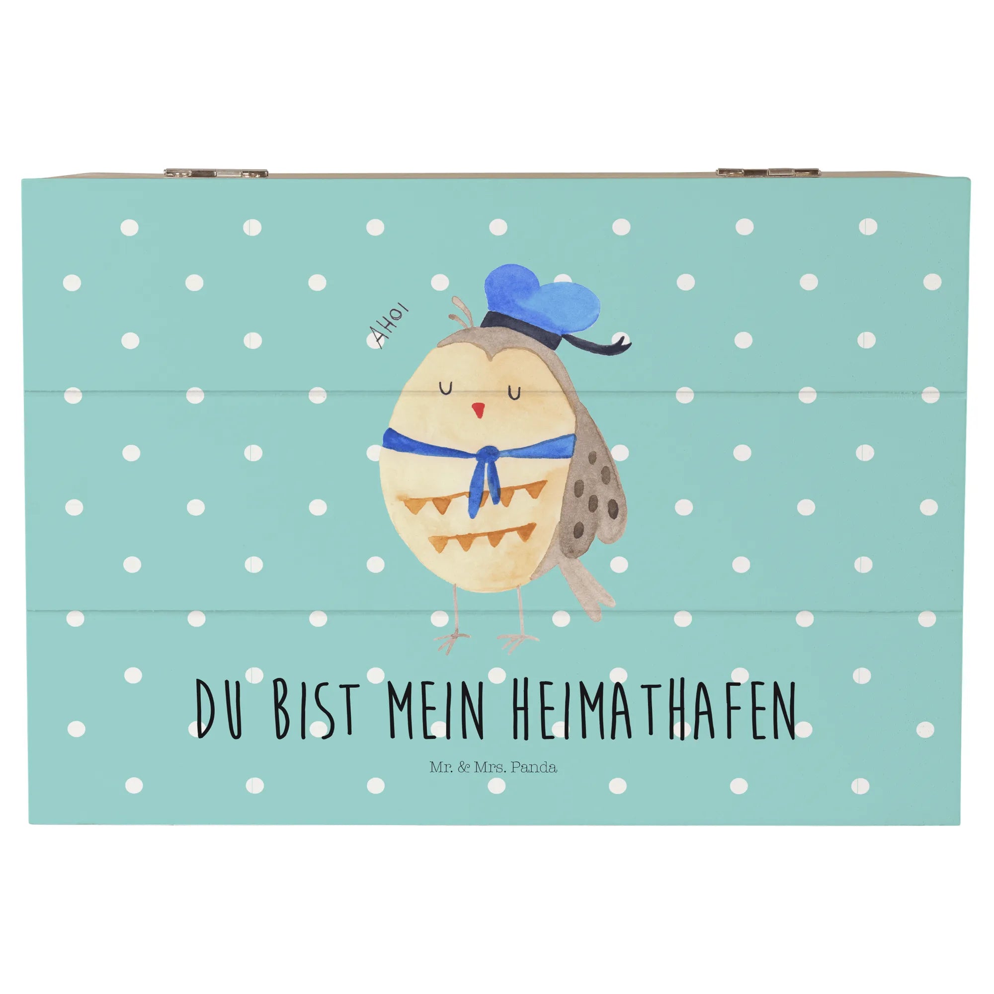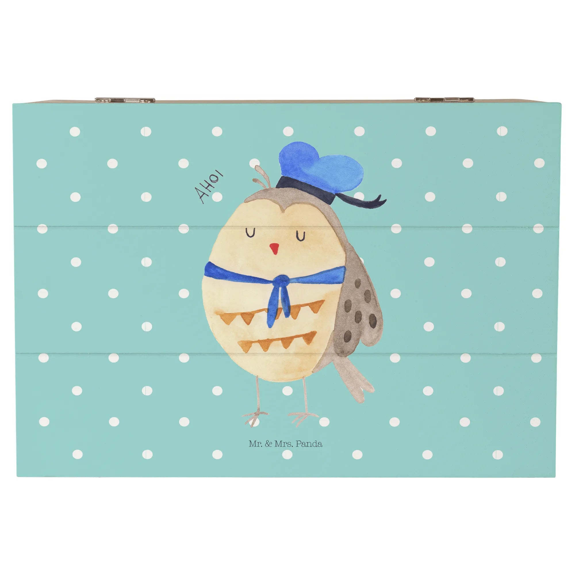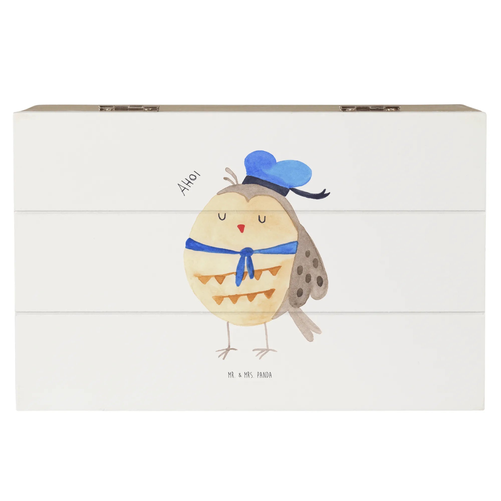 Wooden chest Owl sailor - 22 x 15 cm - with a saying - White