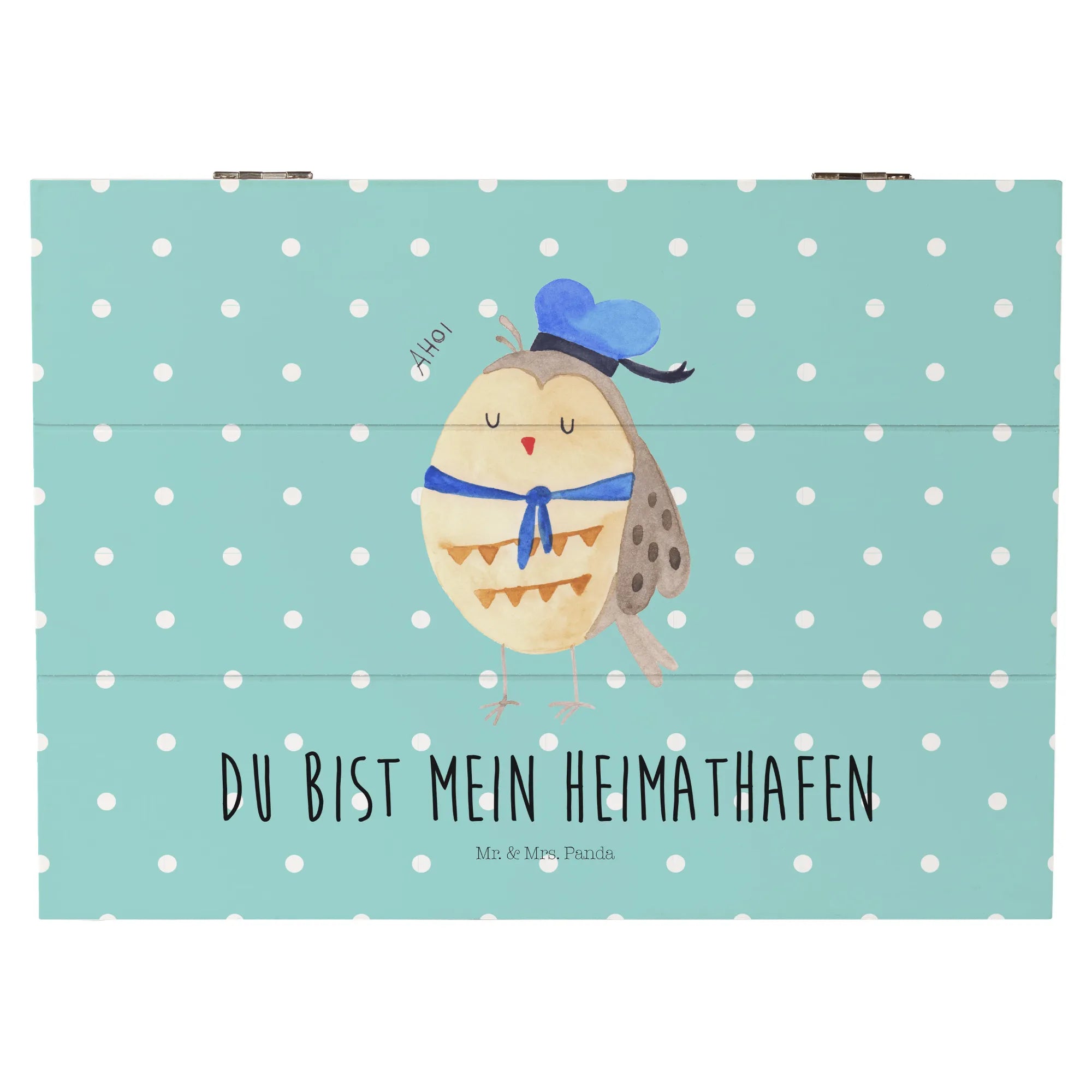 Crafted from premium hardboard, our Owl Sailor chest boasts both durability and elegance. It's a beautiful turquoise pastel color, making it not only practical but also a stunning decoration for your living space. Measuring at 19x12cm, it's perfect for keeping precious keepsakes, photos, or even trinkets that hold special memories. Whether it's a birthday present for a dear friend or a wedding anniversary gift for your girlfriend, this decorative box is made to impress.