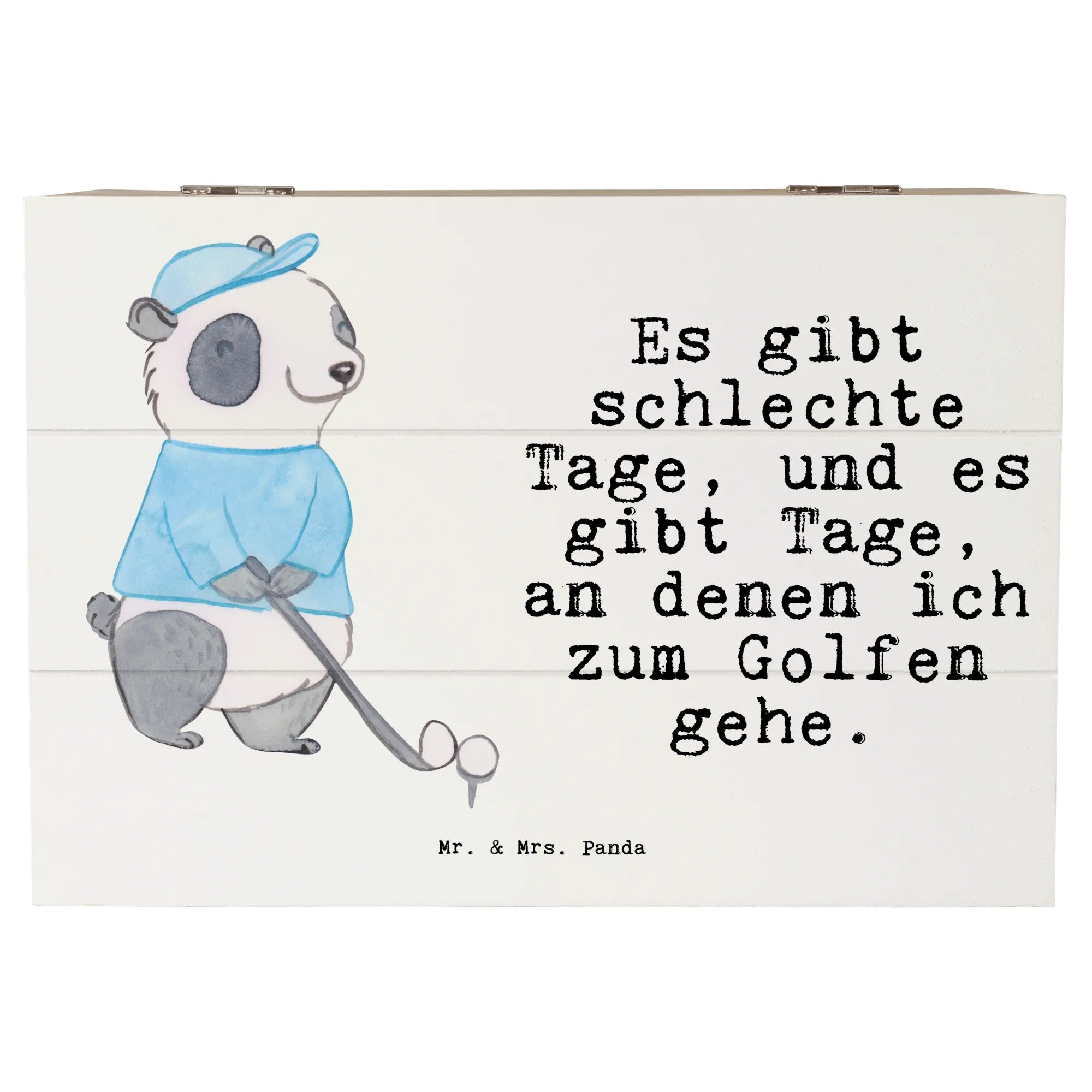 Wooden chest panda golfing - 22 x 15 cm
