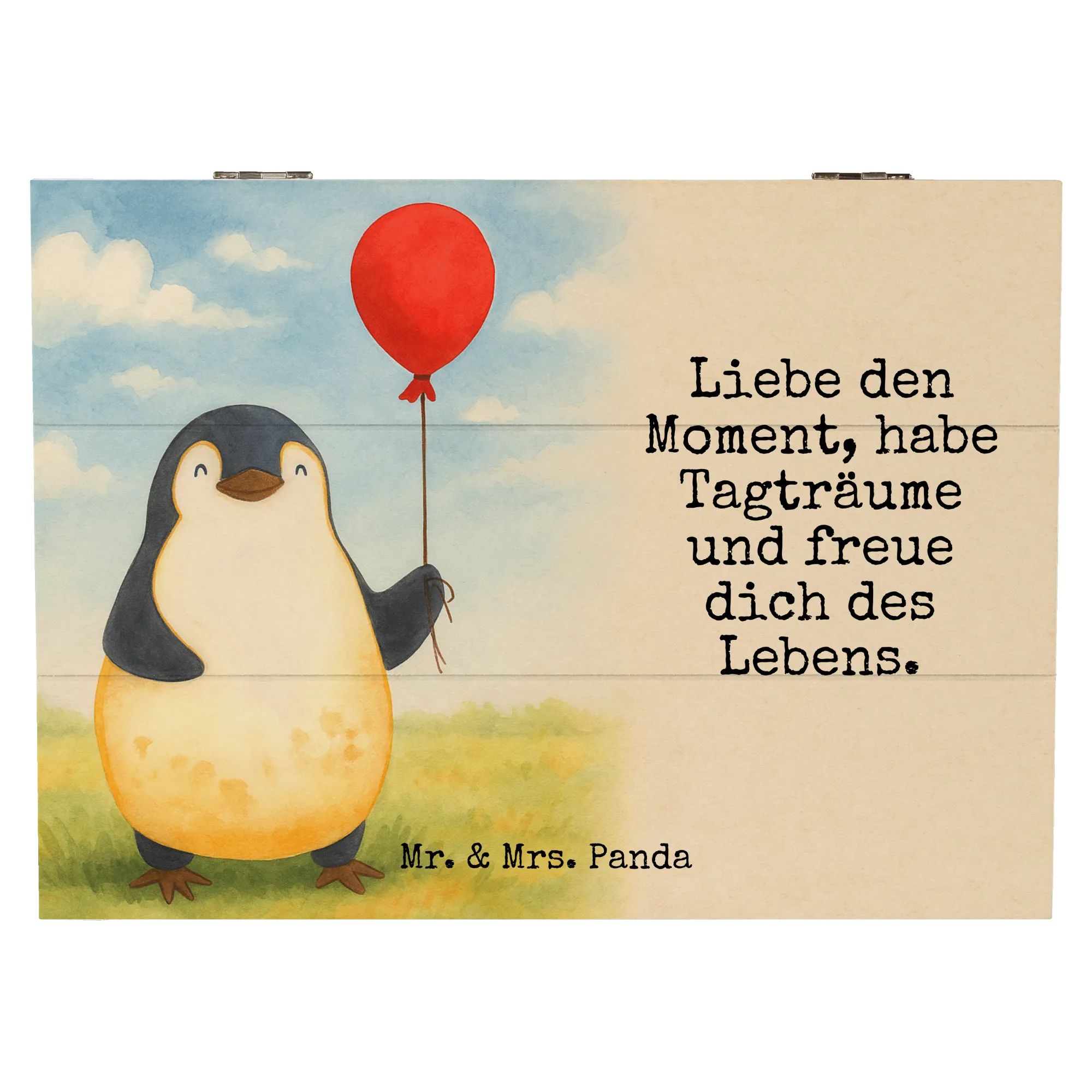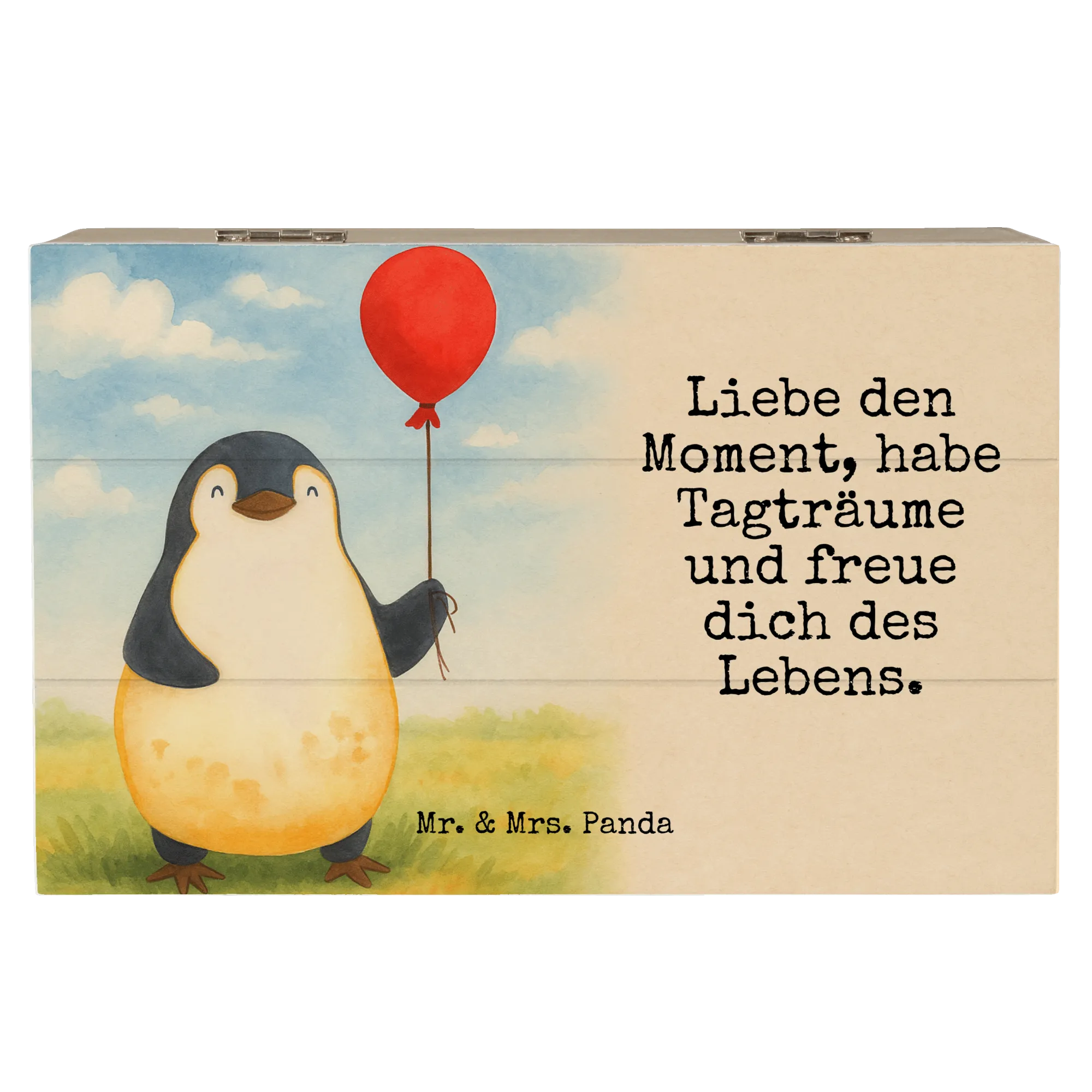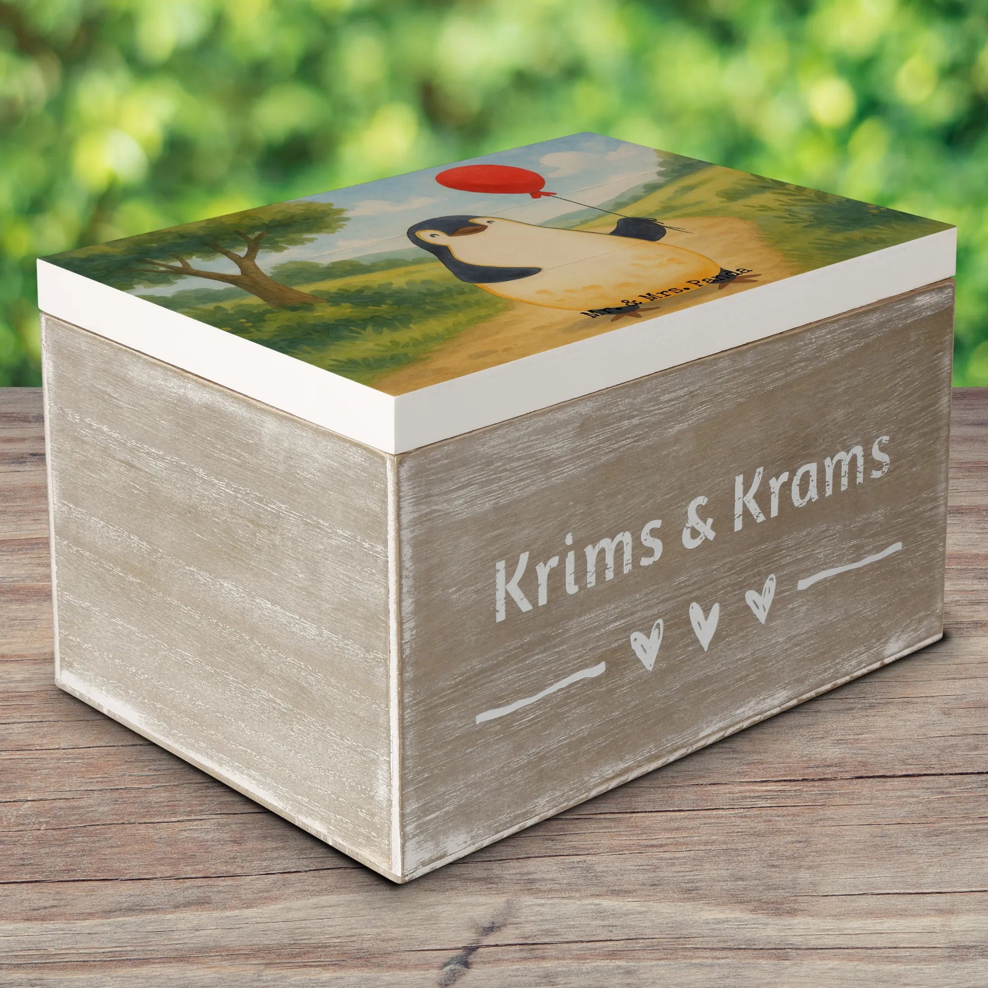 Wooden chest Penguin balloon Design - 22 x 15 cm - with a saying