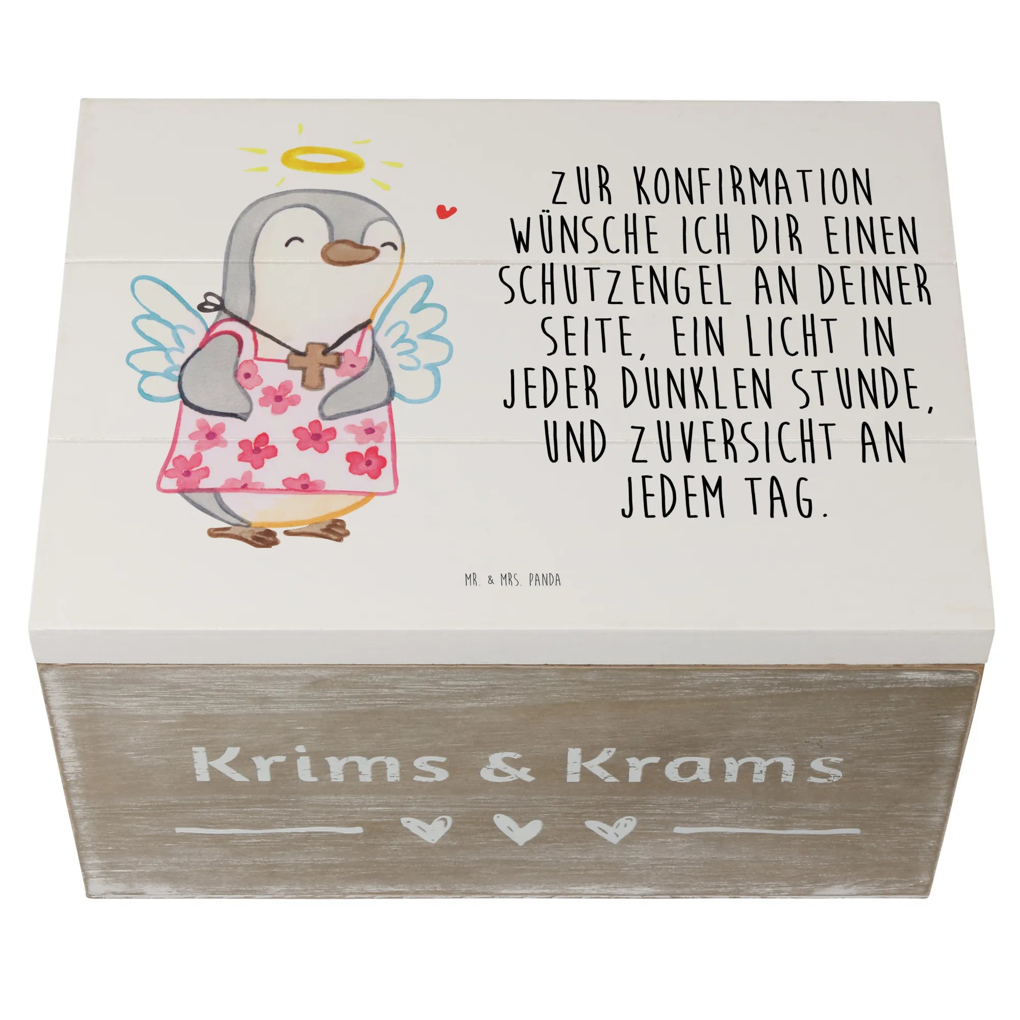 Wooden chest penguin confirmation - 22 x 15 cm - White