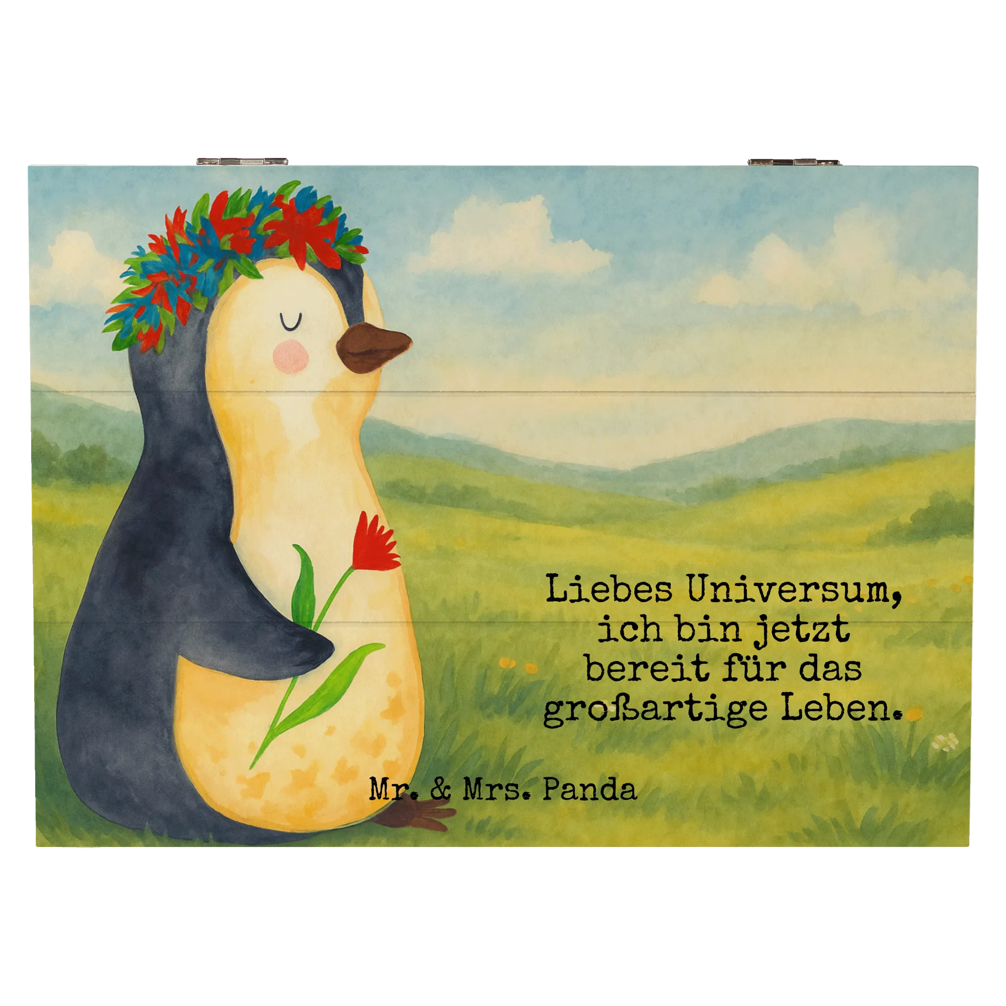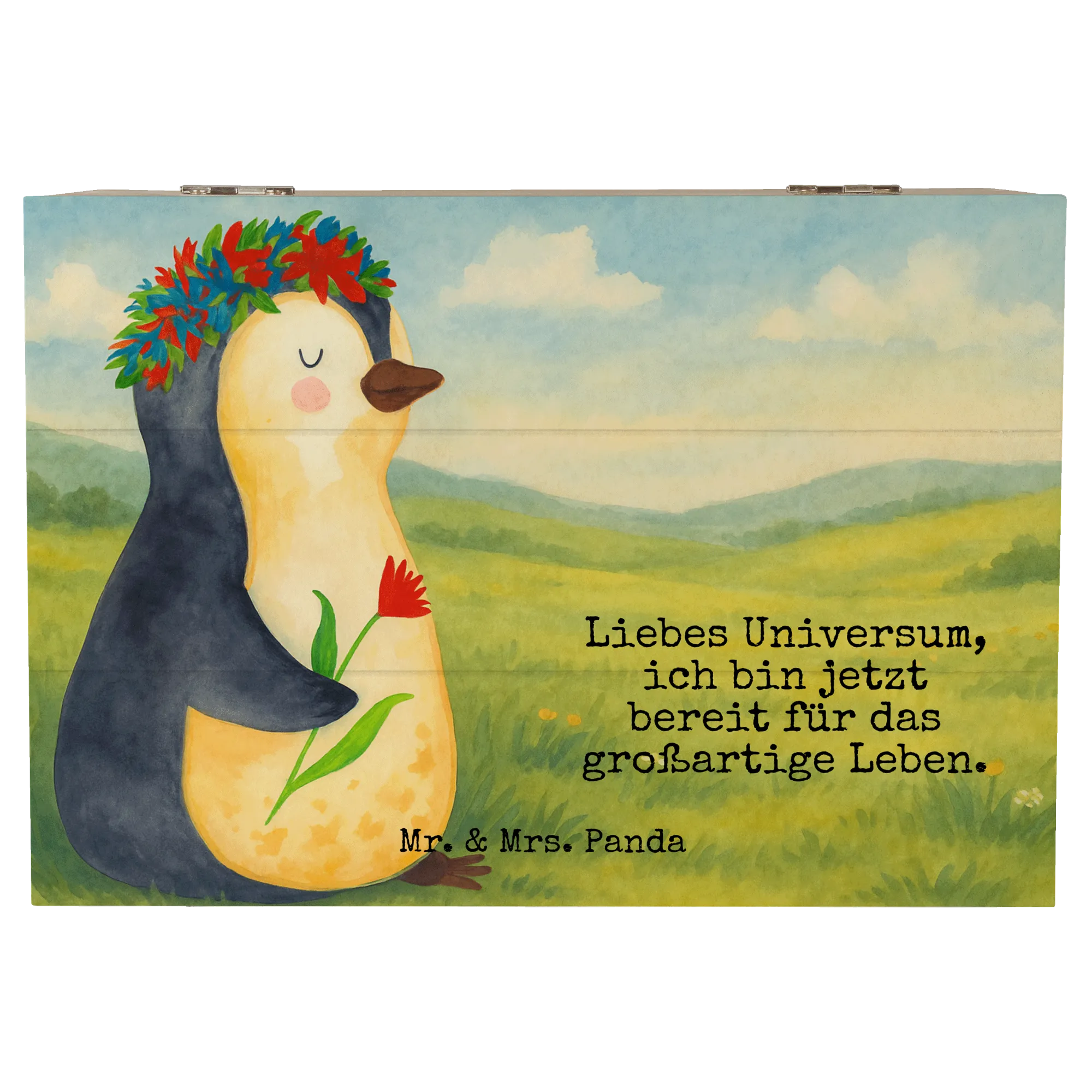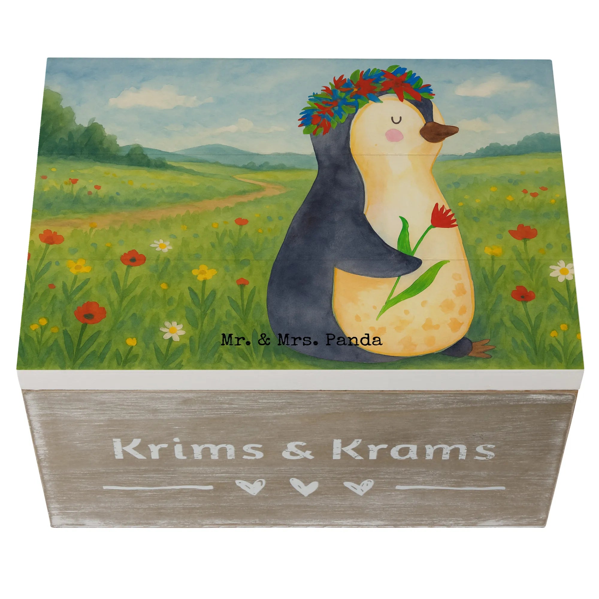 Wooden chest Penguin Flower Design - 22 x 15 cm - with a saying