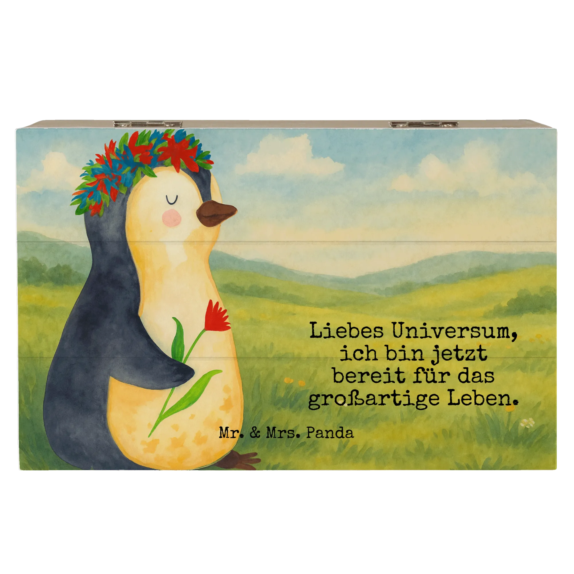 Wooden chest Penguin Flower Design - 22 x 15 cm - with saying