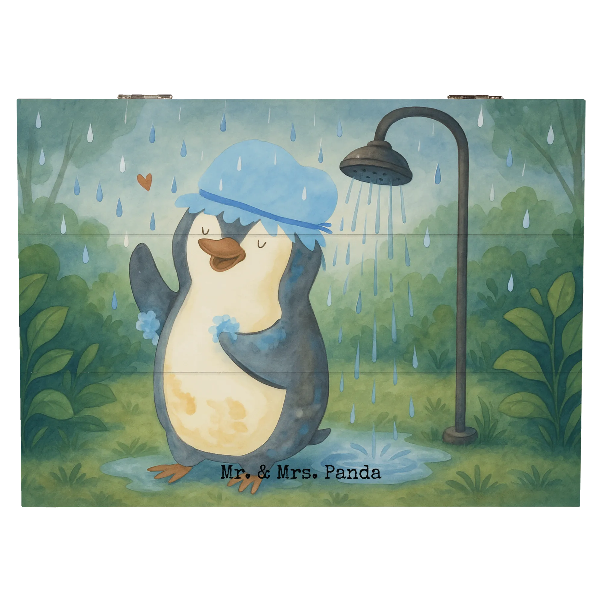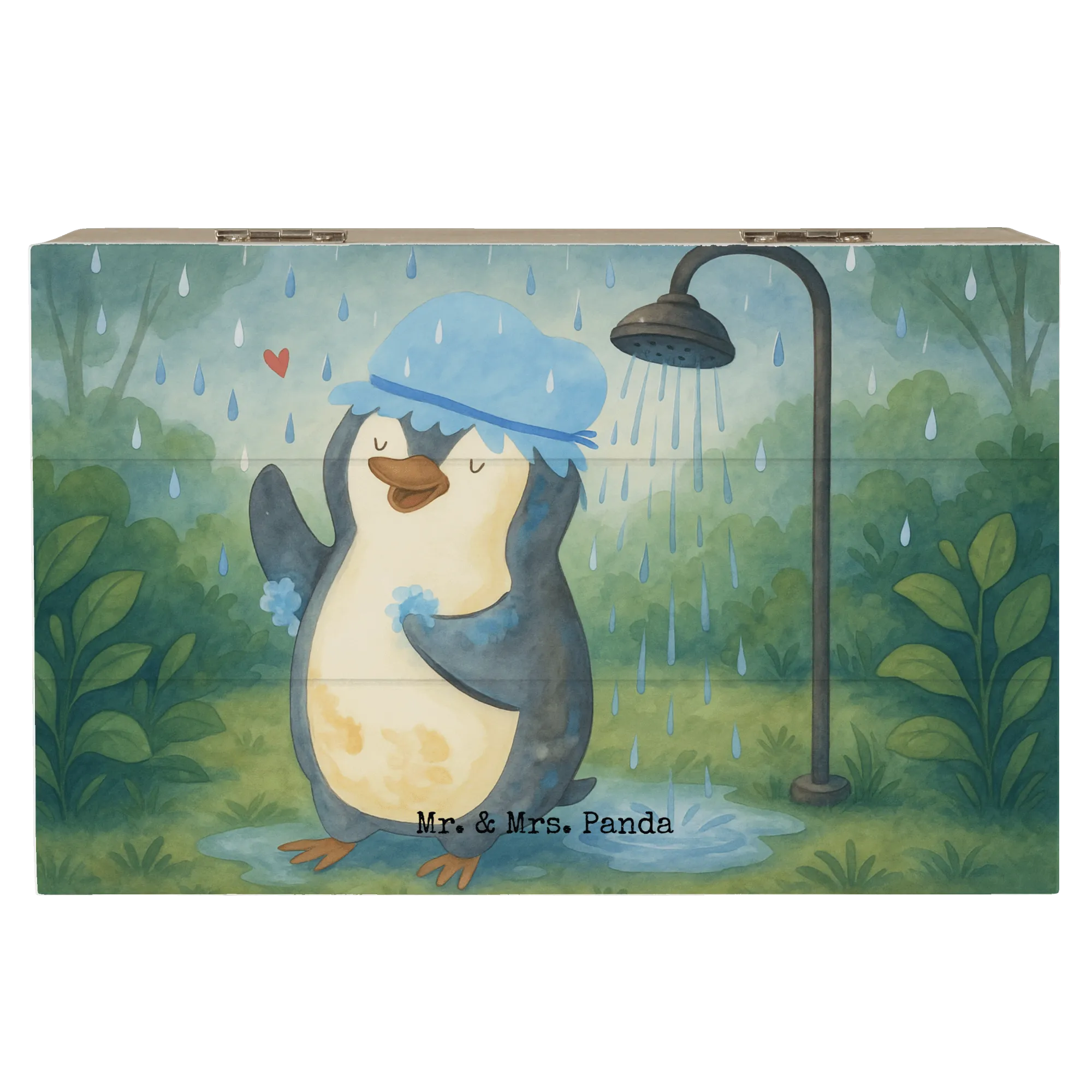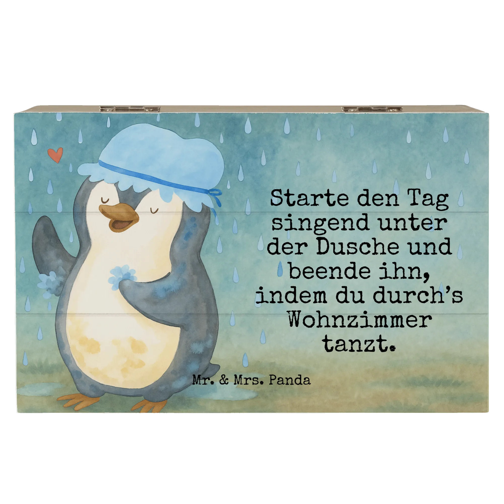 Wooden chest Penguin have a shower Design - 22 x 15 cm - with a saying