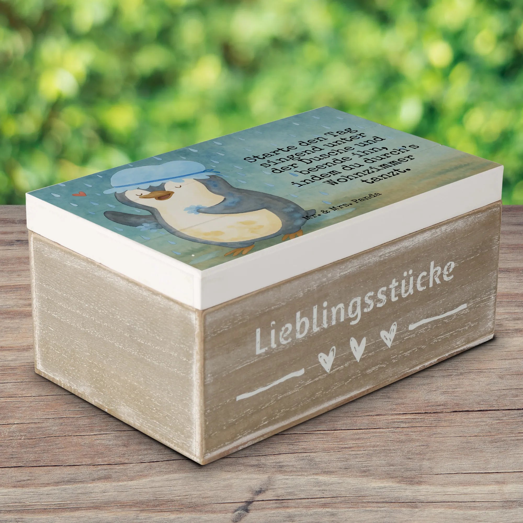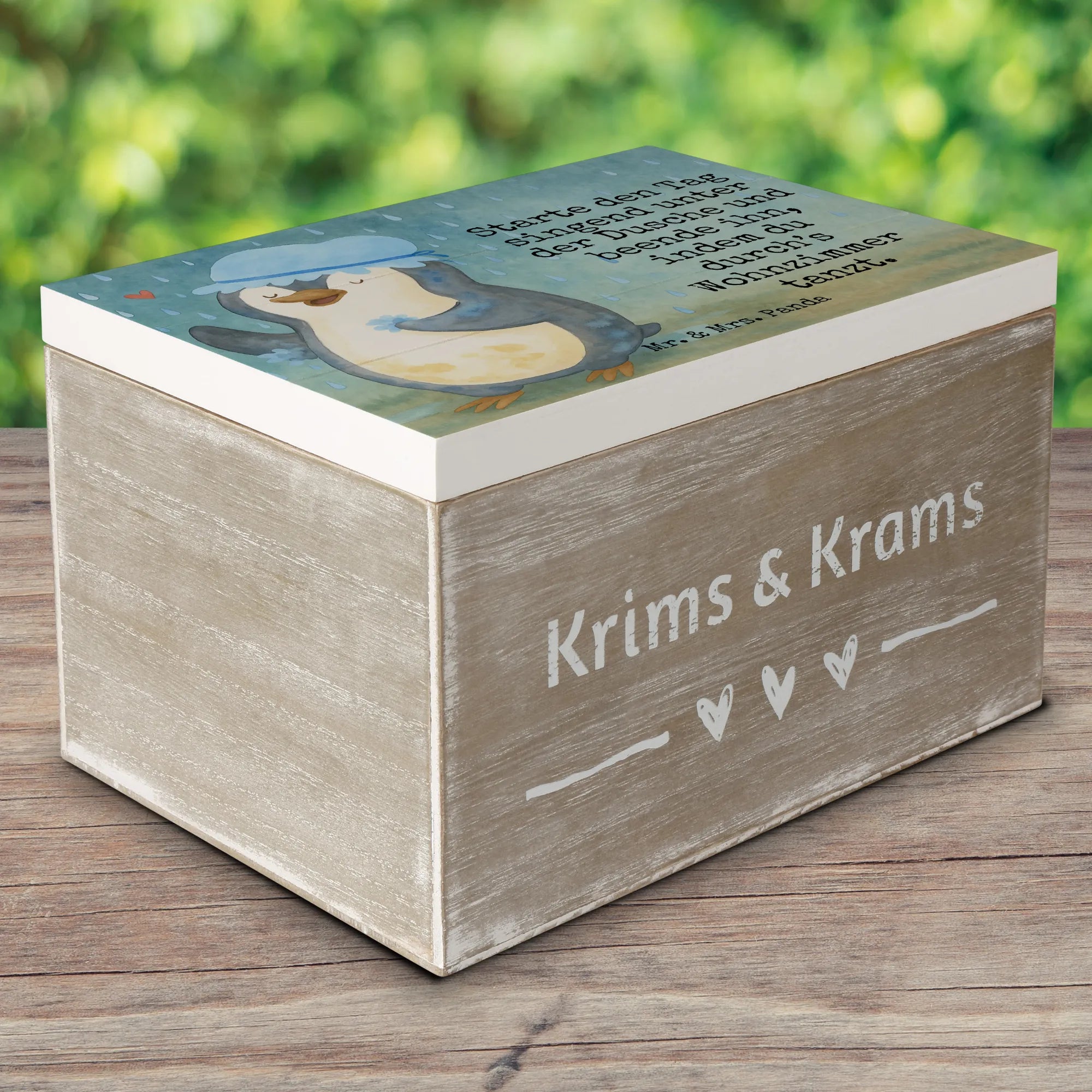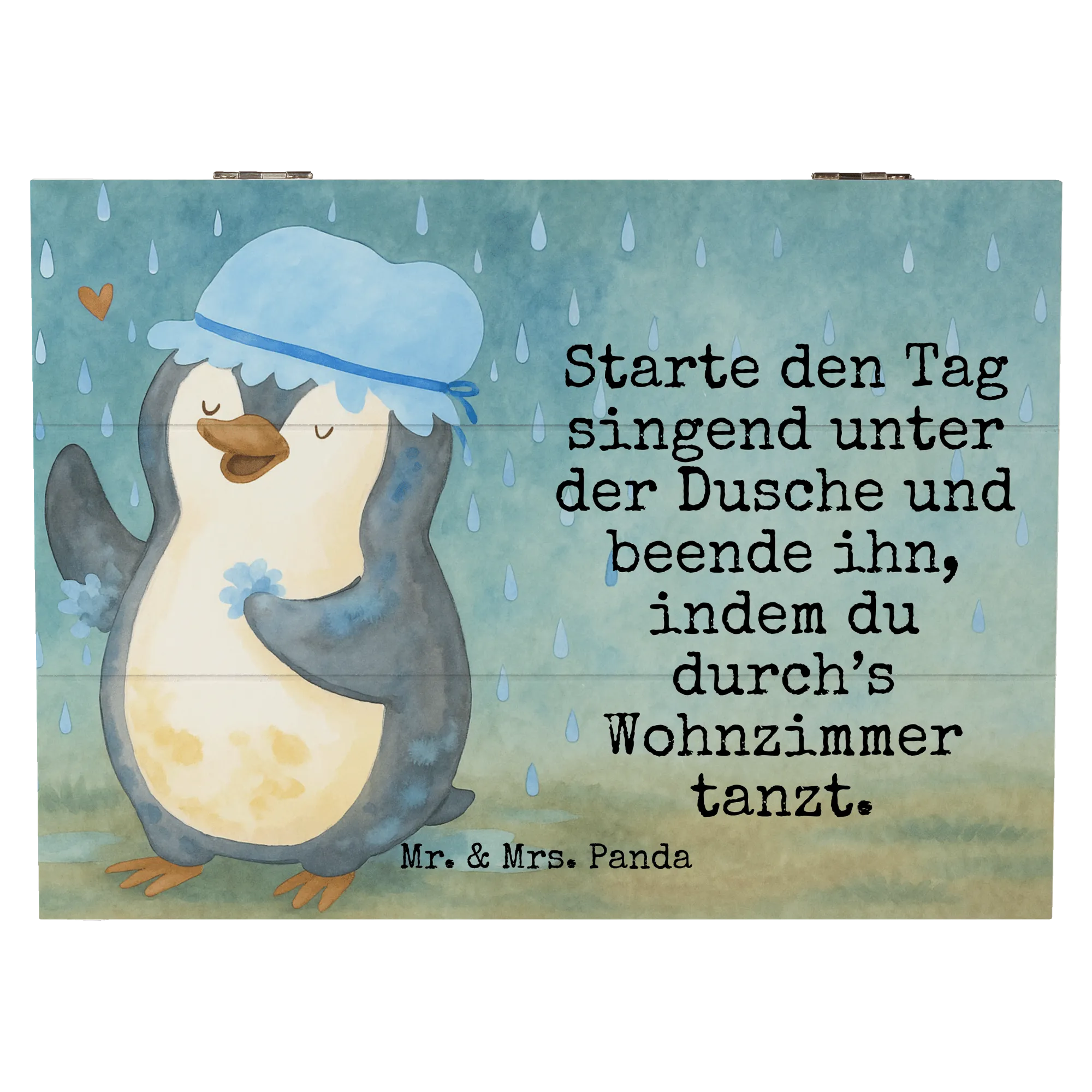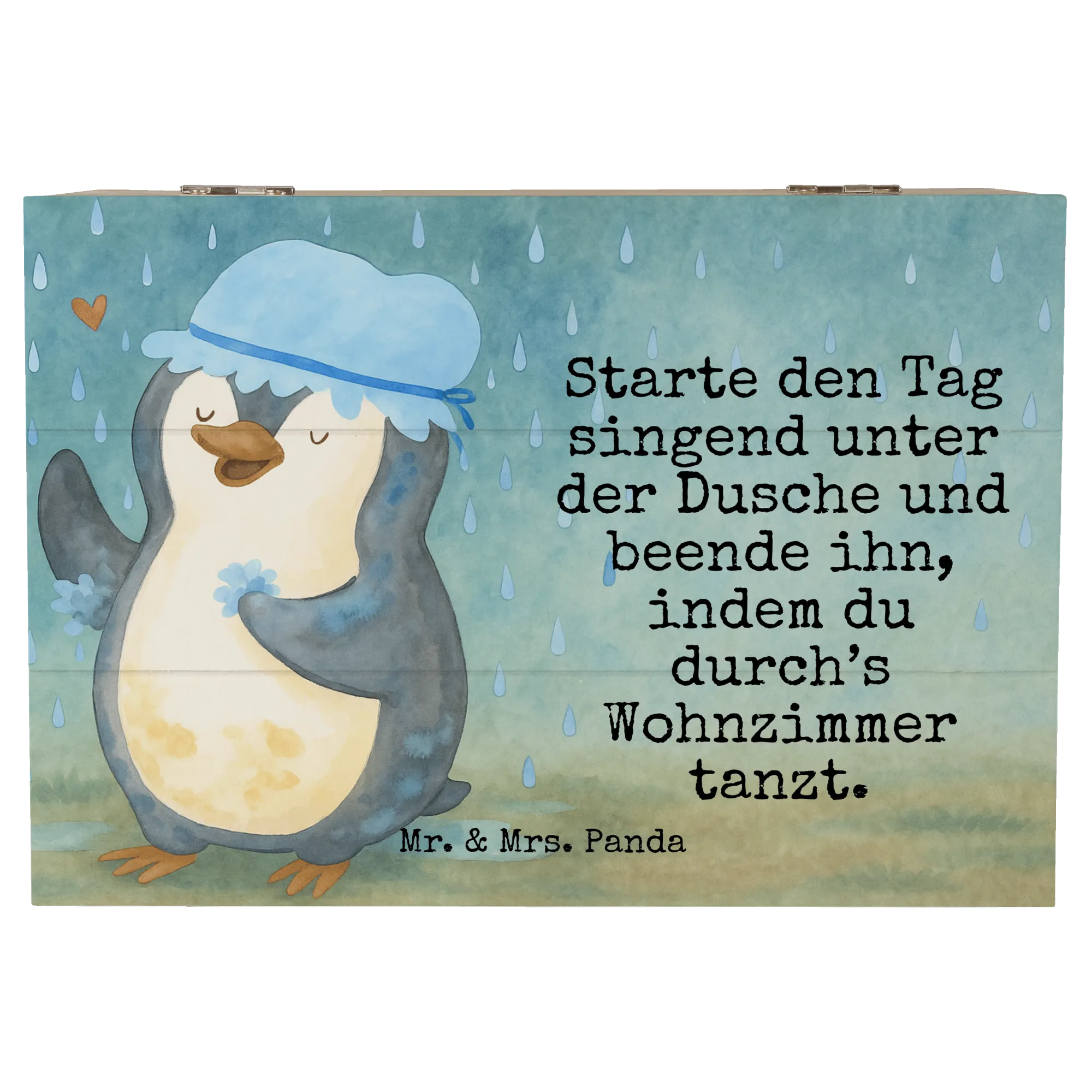 Wooden chest Penguin have a shower Design - 22 x 15 cm - with a saying