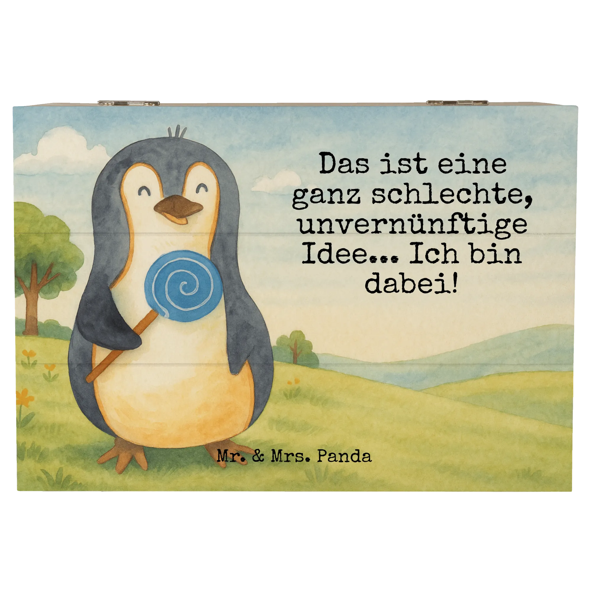 Wooden chest Penguin lollipop Design - 22 x 15 cm - with saying