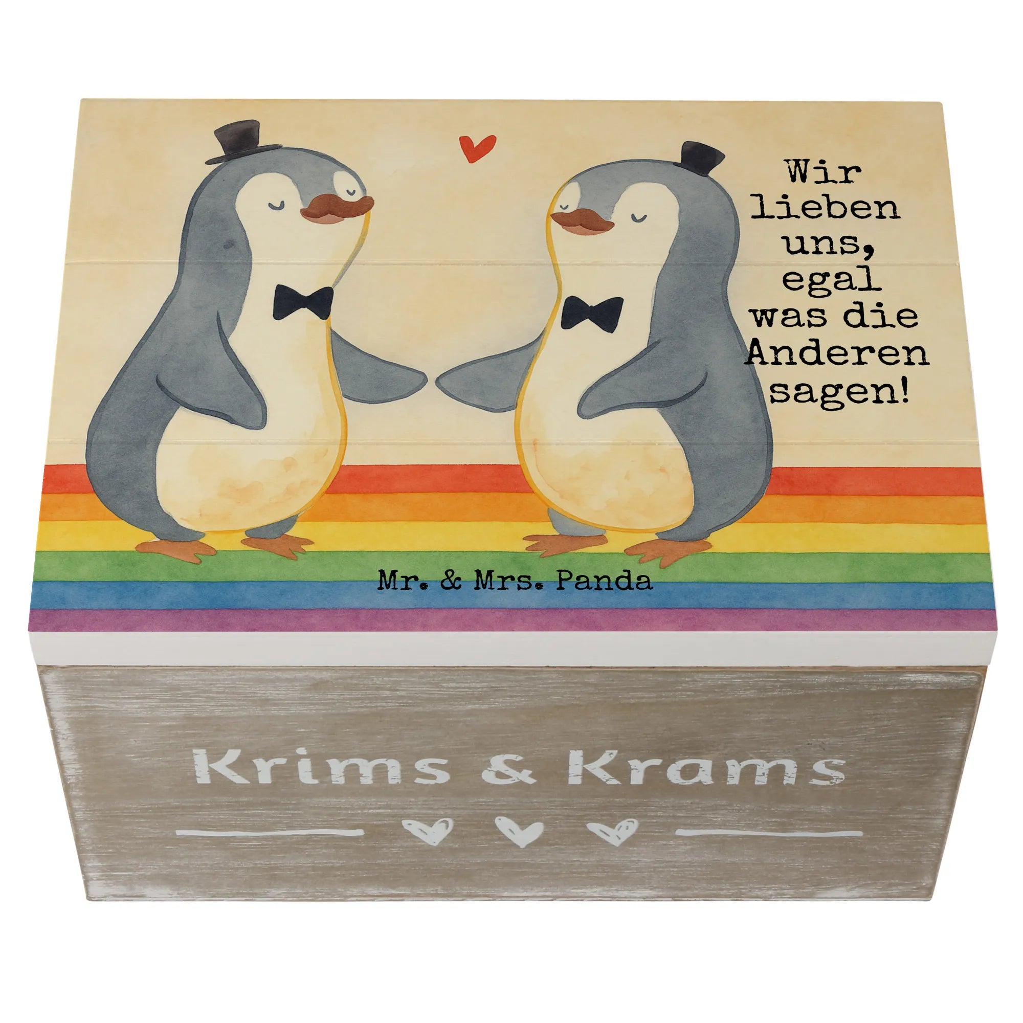 Wooden chest penguins gay pride Design - 22 x 15 cm - with saying