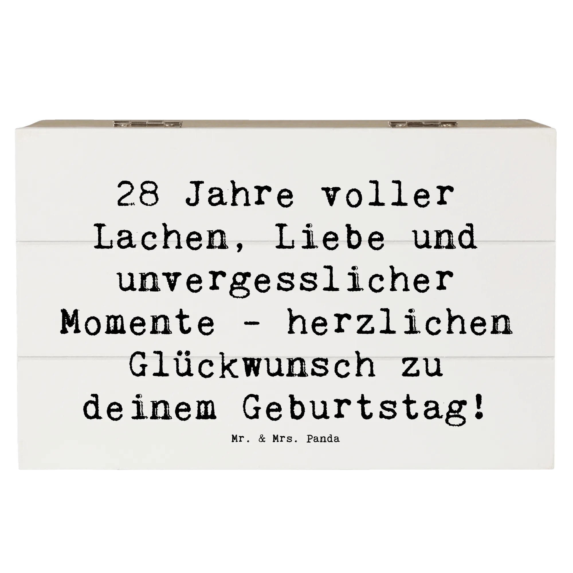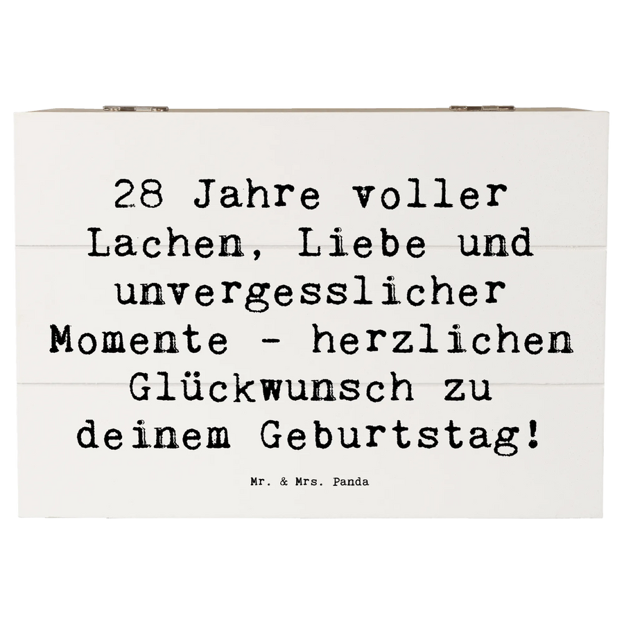 Wooden chest Saying 28 Jahre voller Lachen, Liebe und unvergesslicher Momente - herzlichen Glückwunsch zu deinem Geburtstag! - 22 x 15 cm - White