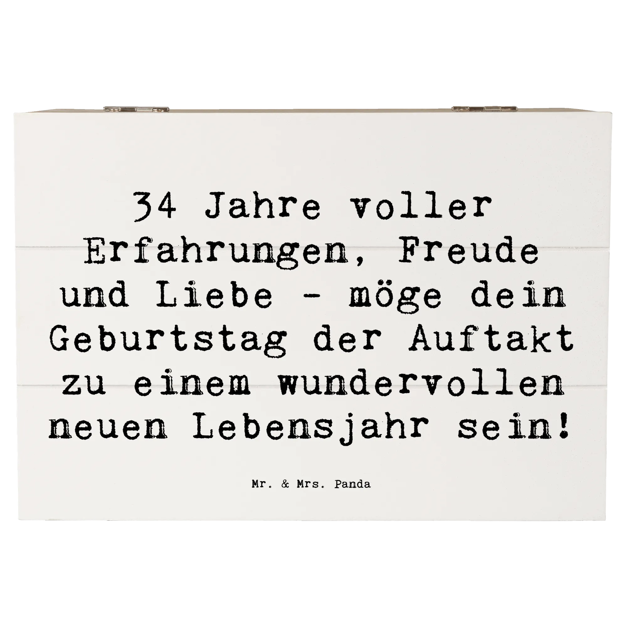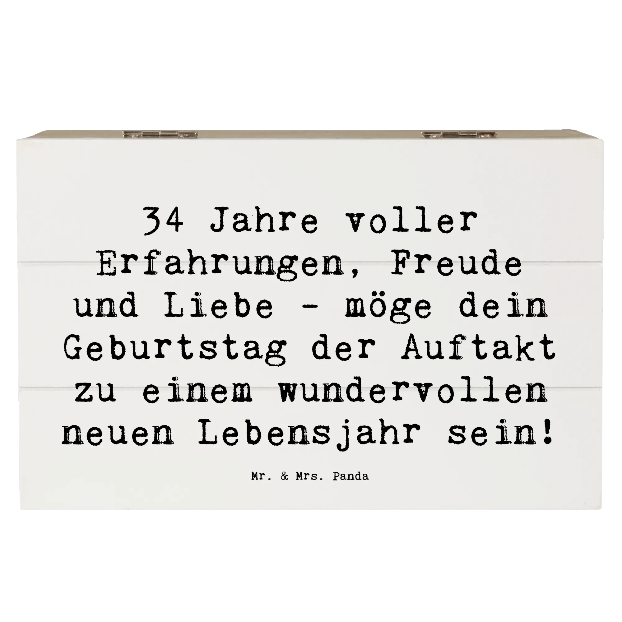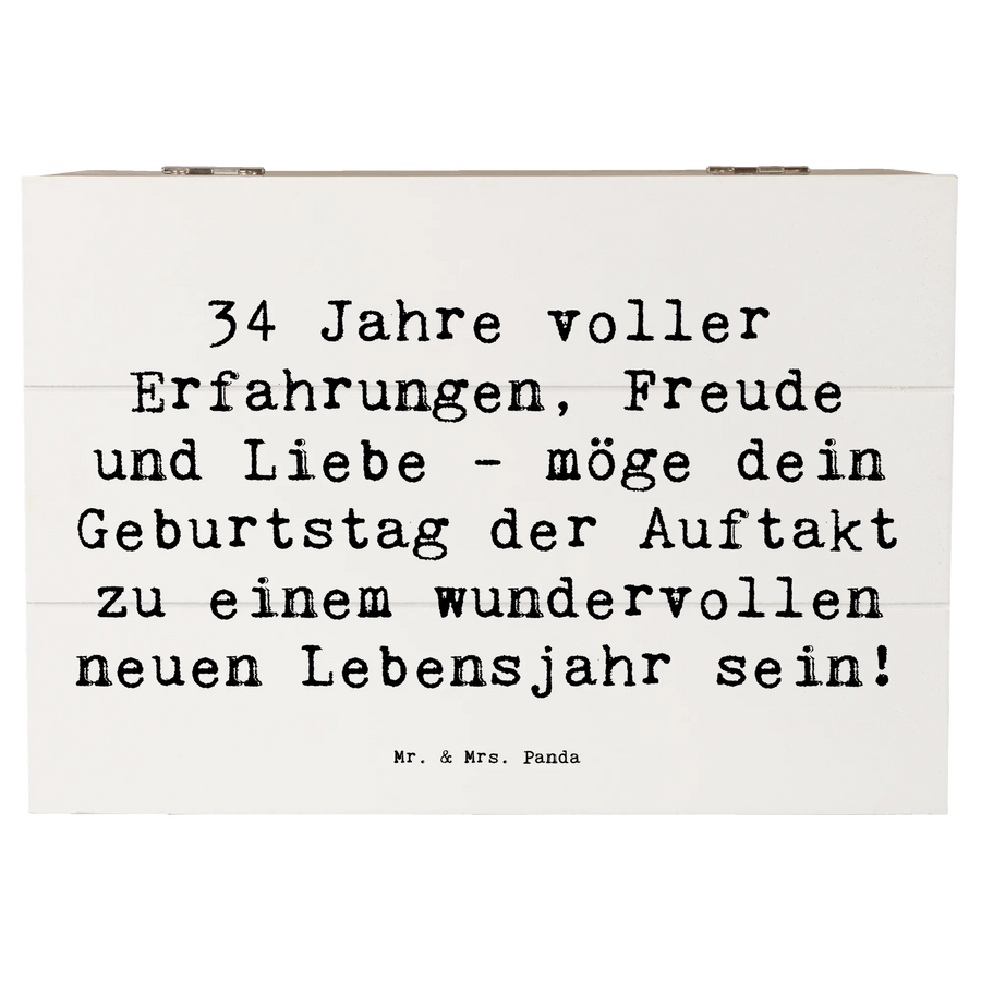Wooden chest Saying 34 Jahre voller Erfahrungen, Freude und Liebe - möge dein Geburtstag der Auftakt zu einem wundervollen neuen Lebensjahr sein! - 22 x 15 cm - White