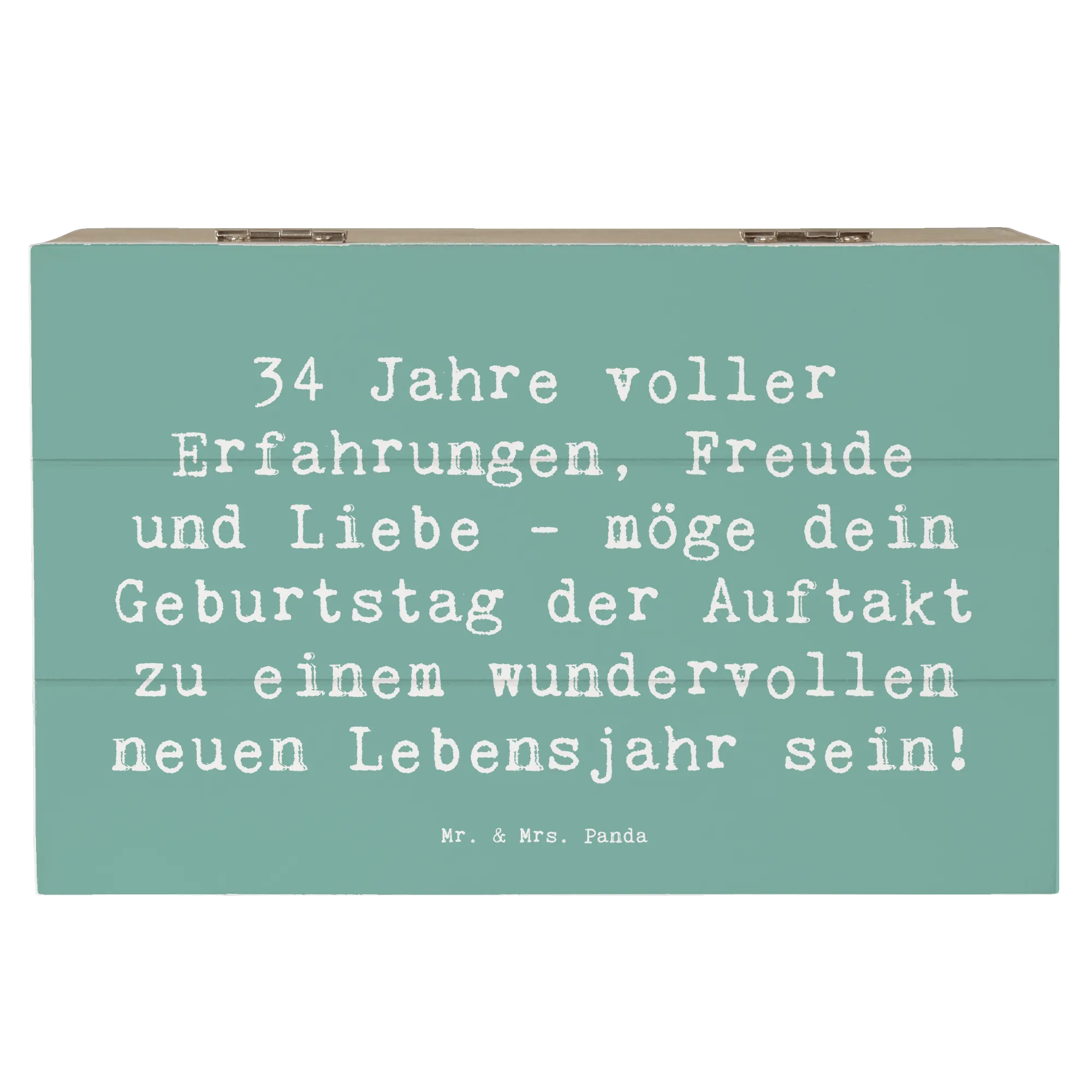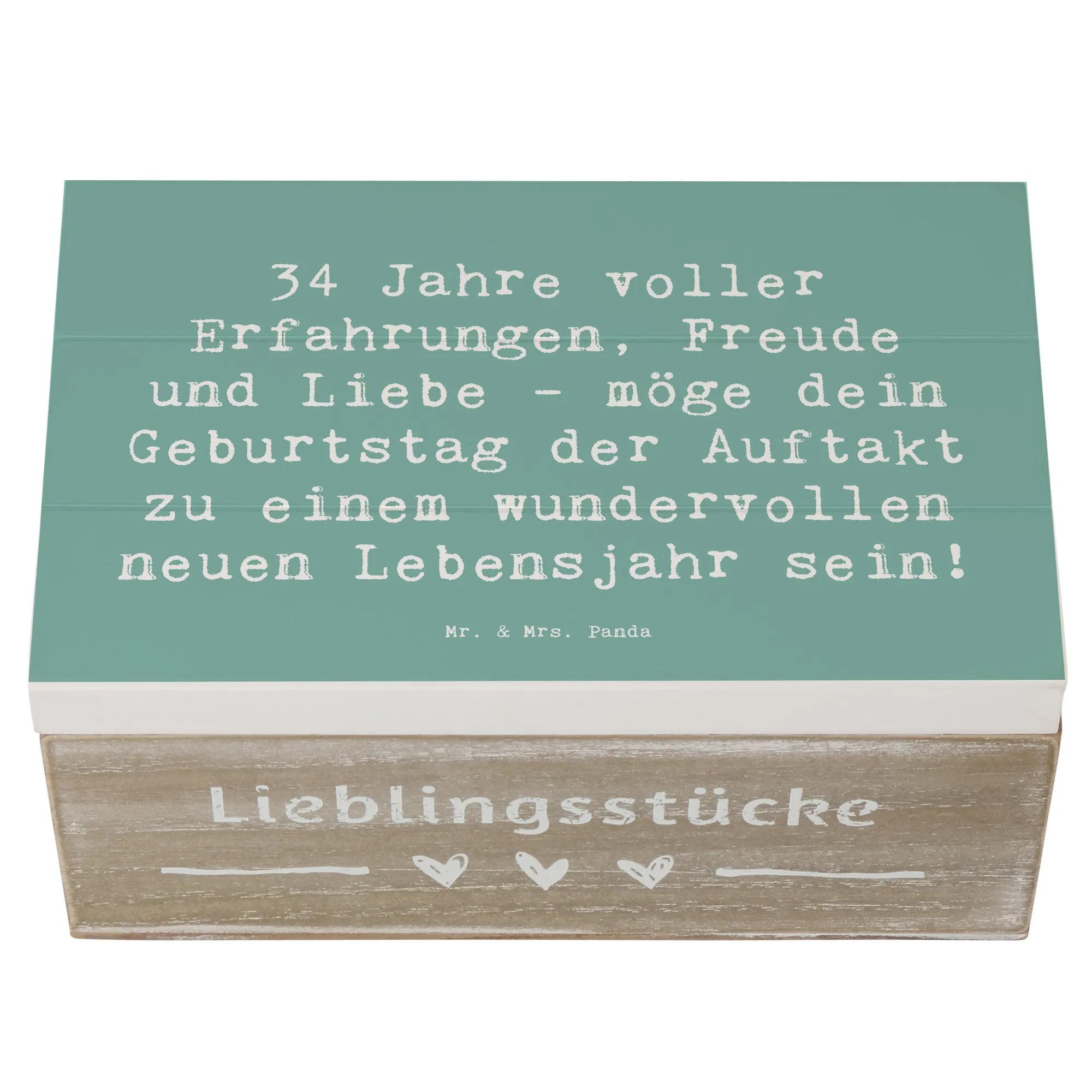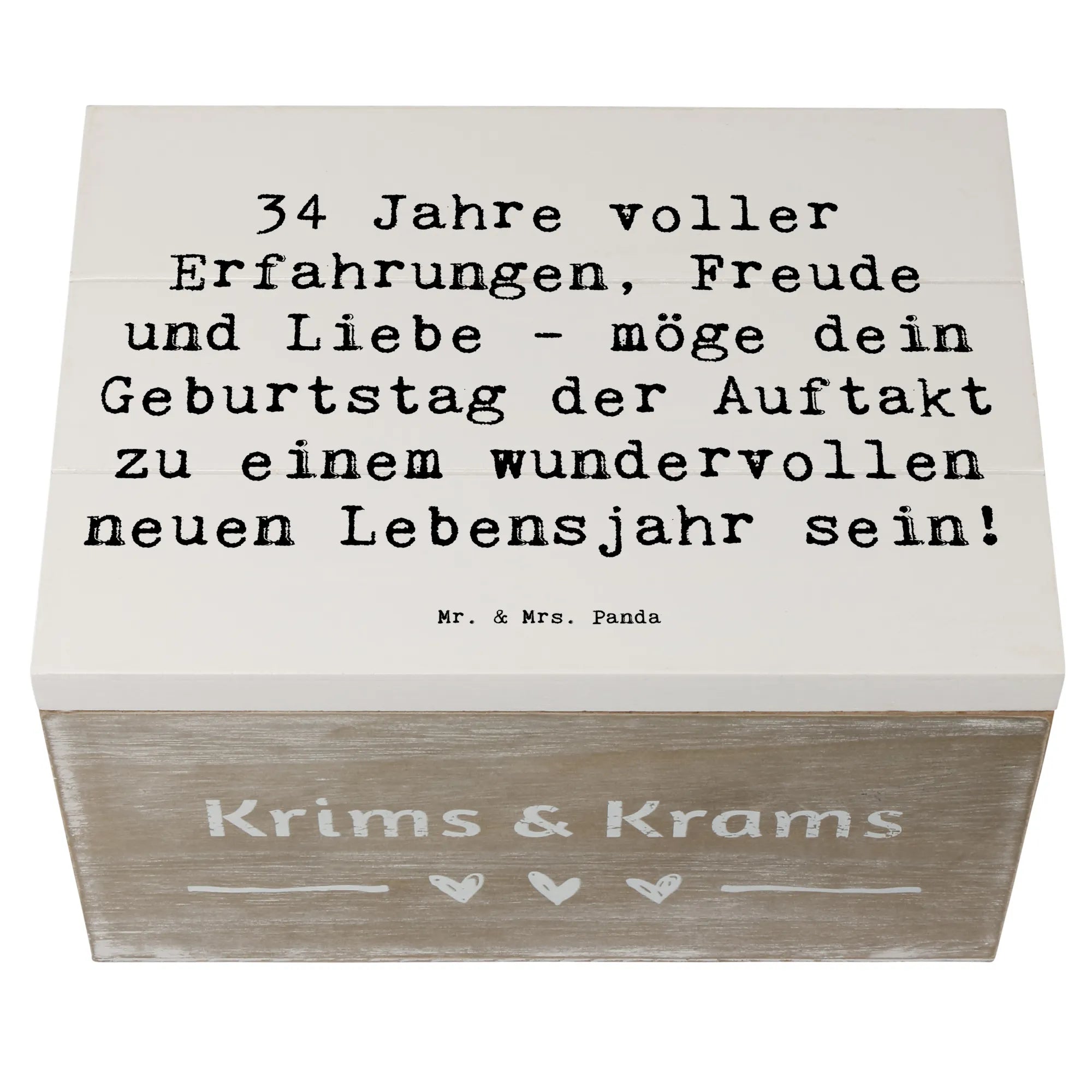 Wooden chest Saying 34 Jahre voller Erfahrungen, Freude und Liebe - möge dein Geburtstag der Auftakt zu einem wundervollen neuen Lebensjahr sein! - 22 x 15 cm - White