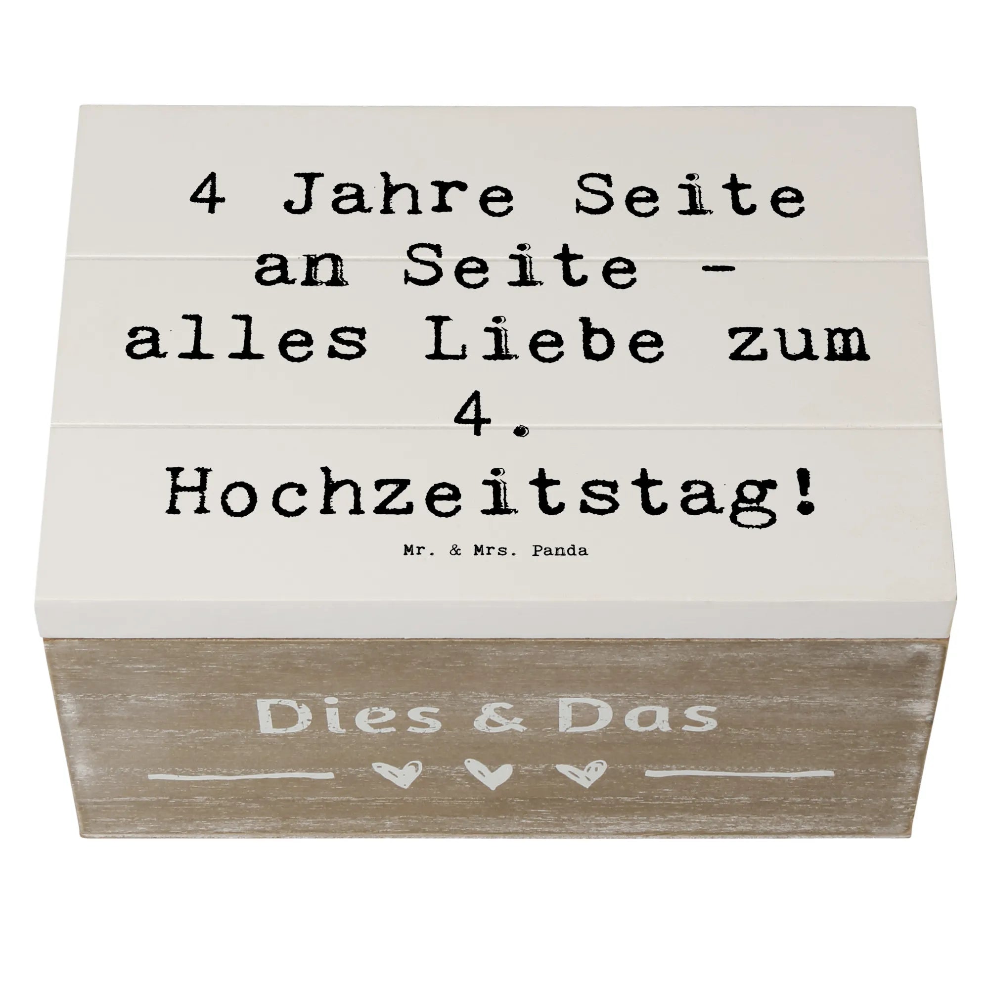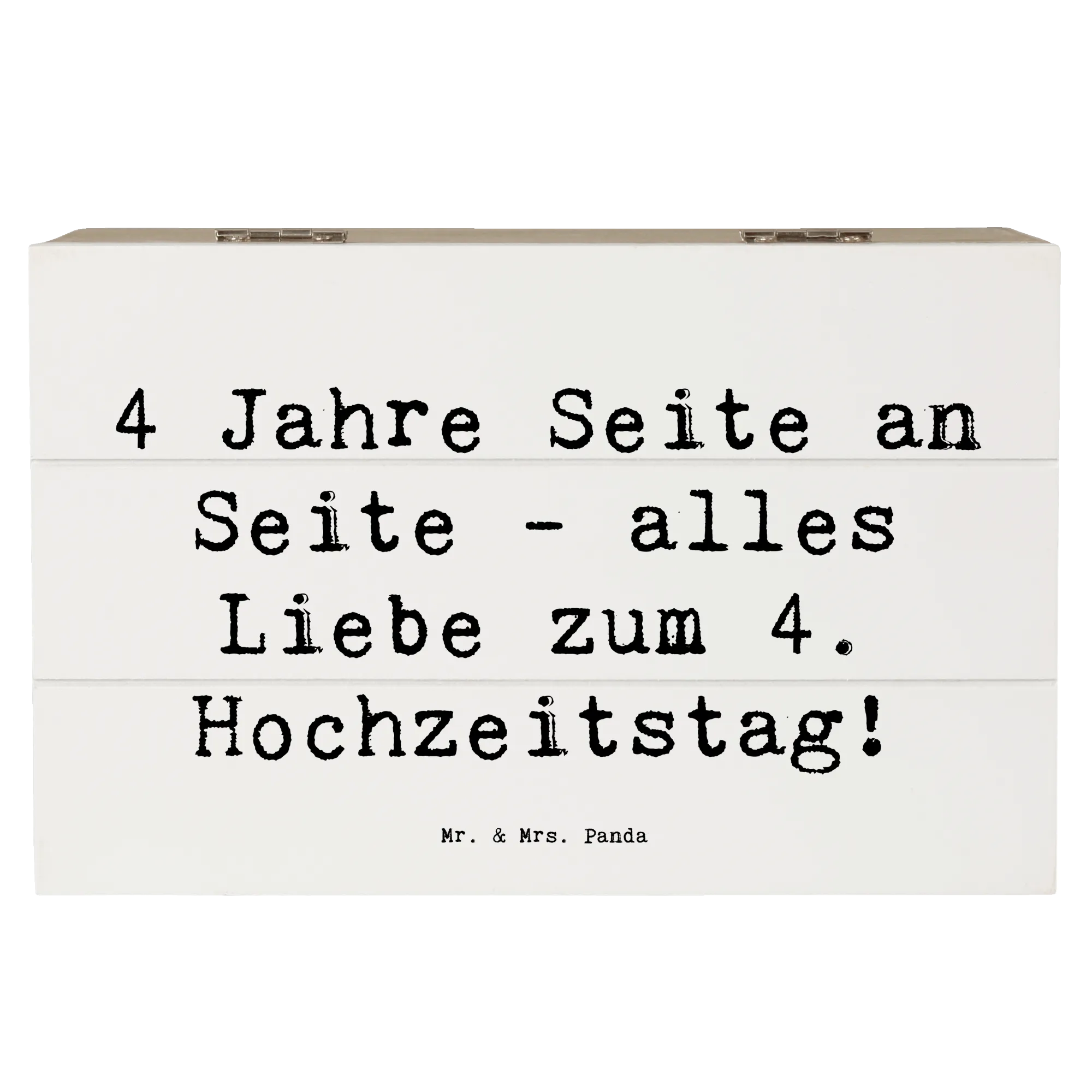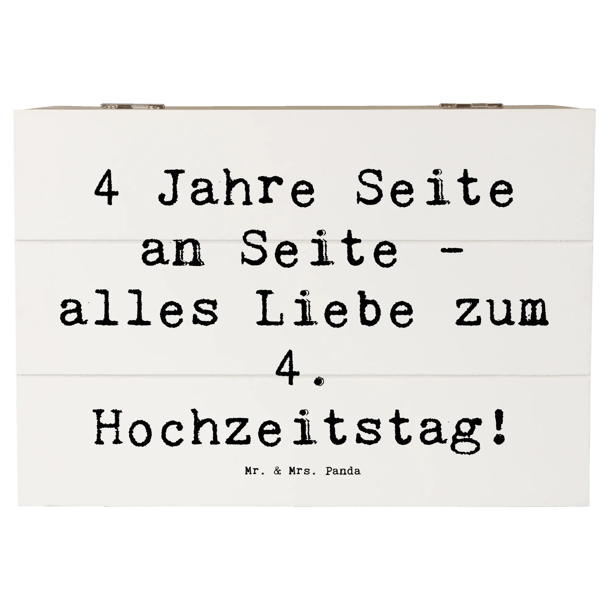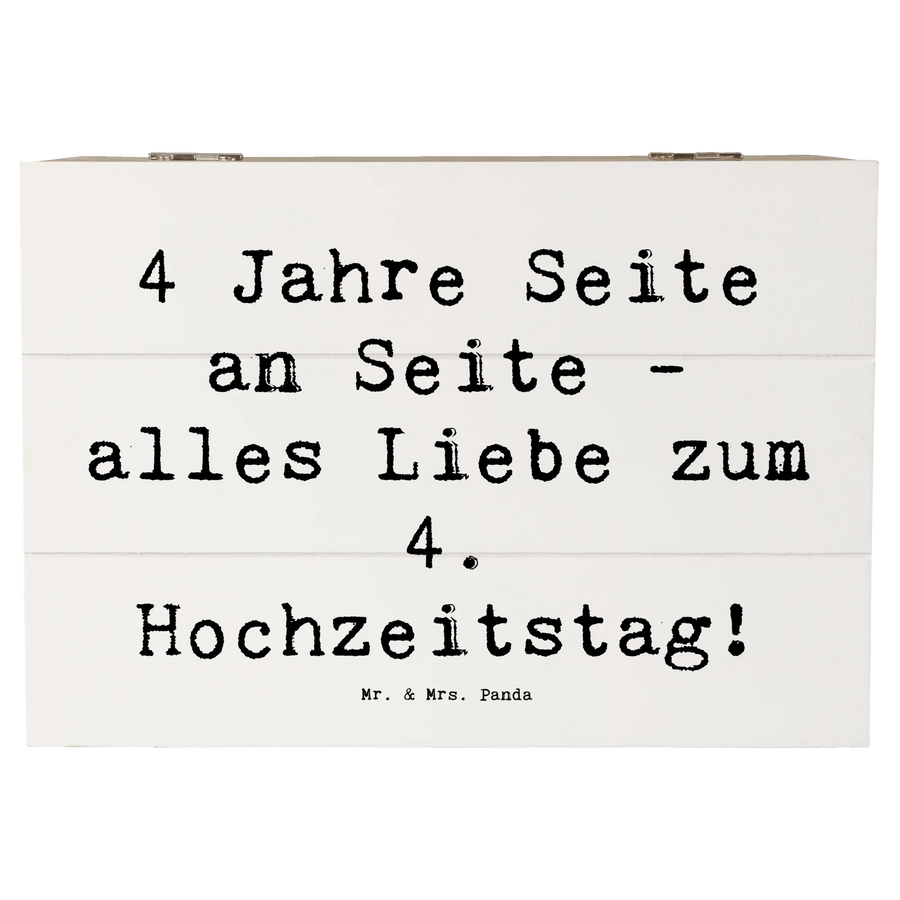 Wooden chest Saying 4 Jahre Seite an Seite - alles Liebe zum 4. Hochzeitstag! - 22 x 15 cm - White