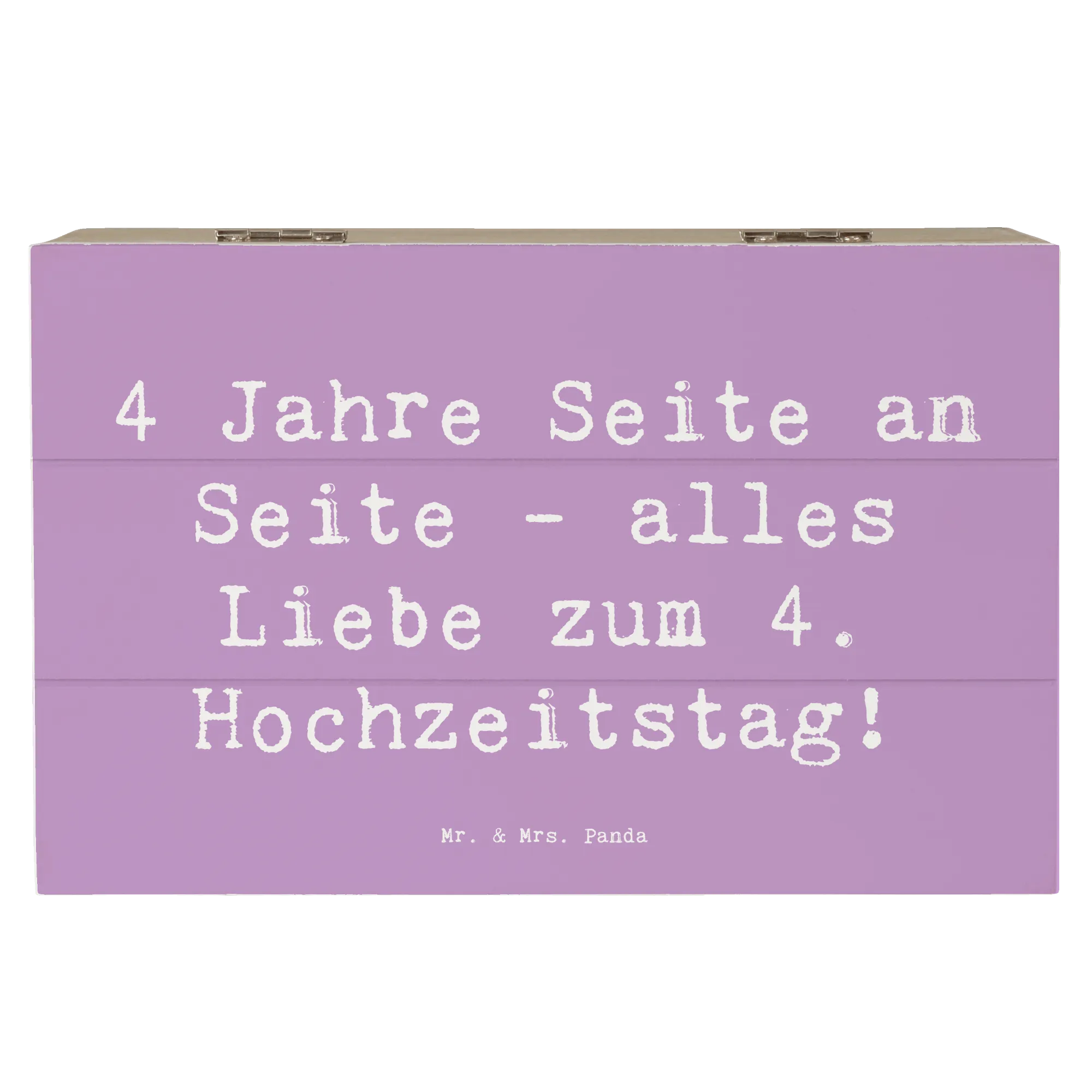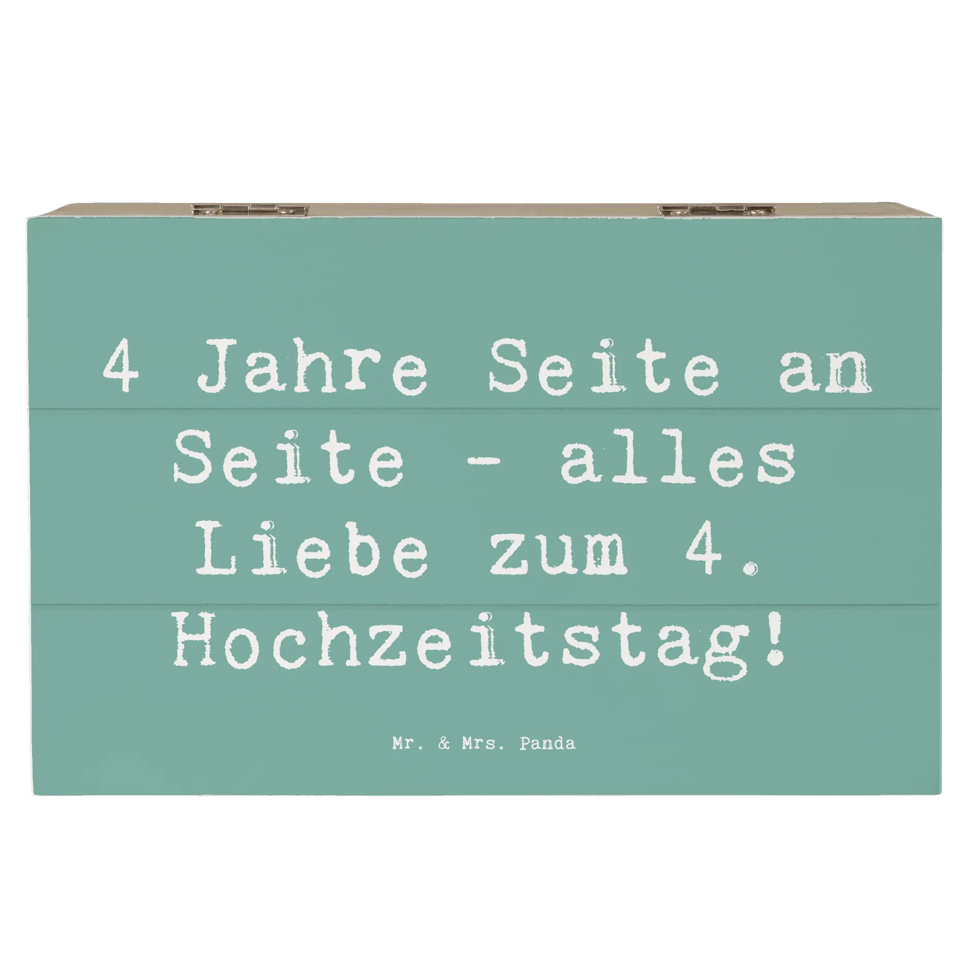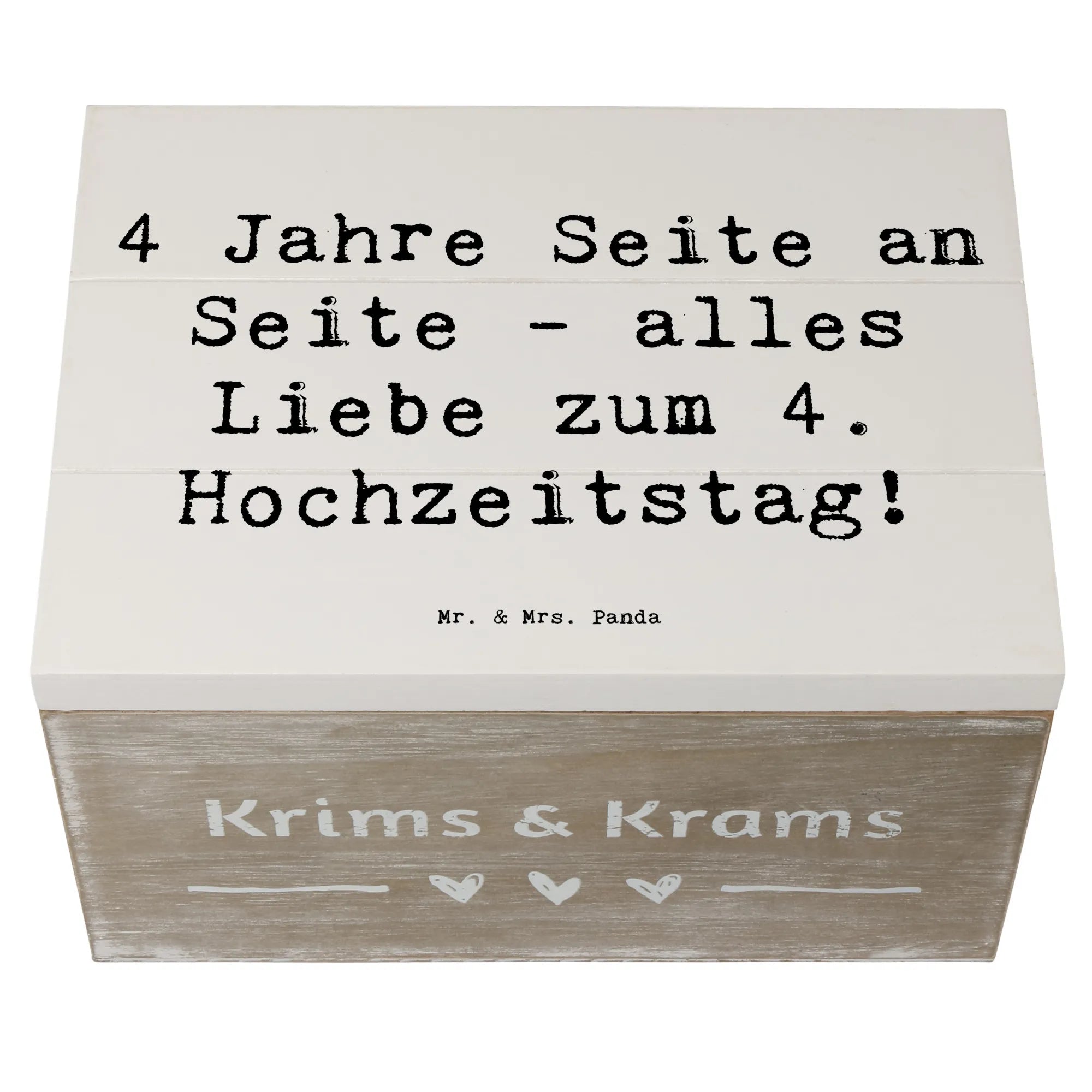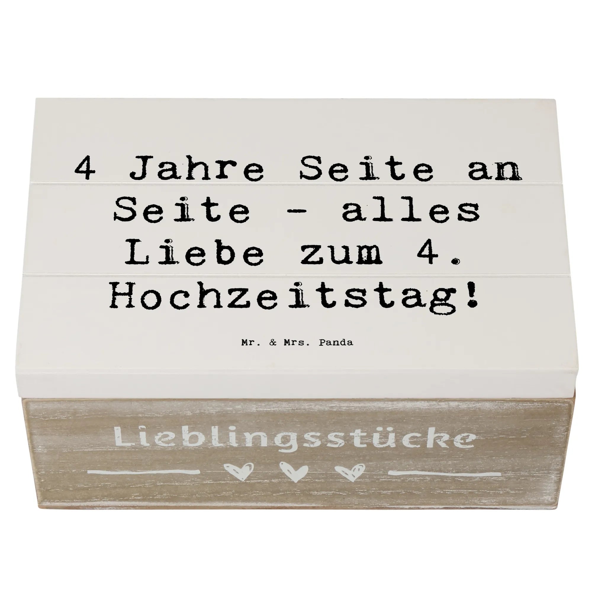 Wooden chest Saying 4 Jahre Seite an Seite - alles Liebe zum 4. Hochzeitstag! - 22 x 15 cm - White