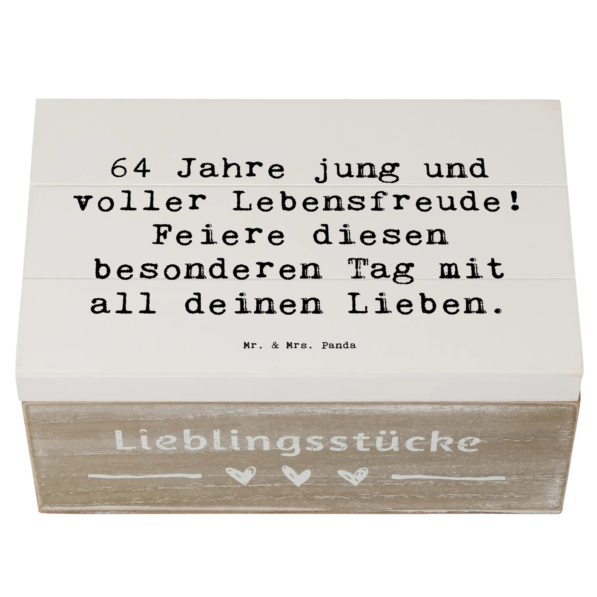 Wooden chest Saying 64 Jahre jung und voller Lebensfreude! Feiere dies – Mr. & Mrs. Panda
