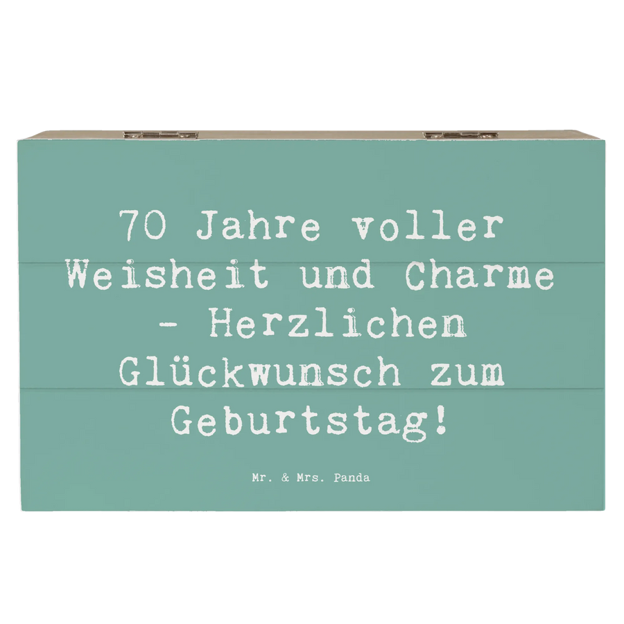 Wooden chest Saying 70 Jahre voller Weisheit und Charme - Herzlichen Glückwunsch zum Geburtstag! - 19 x 12 cm - Meeresbrise