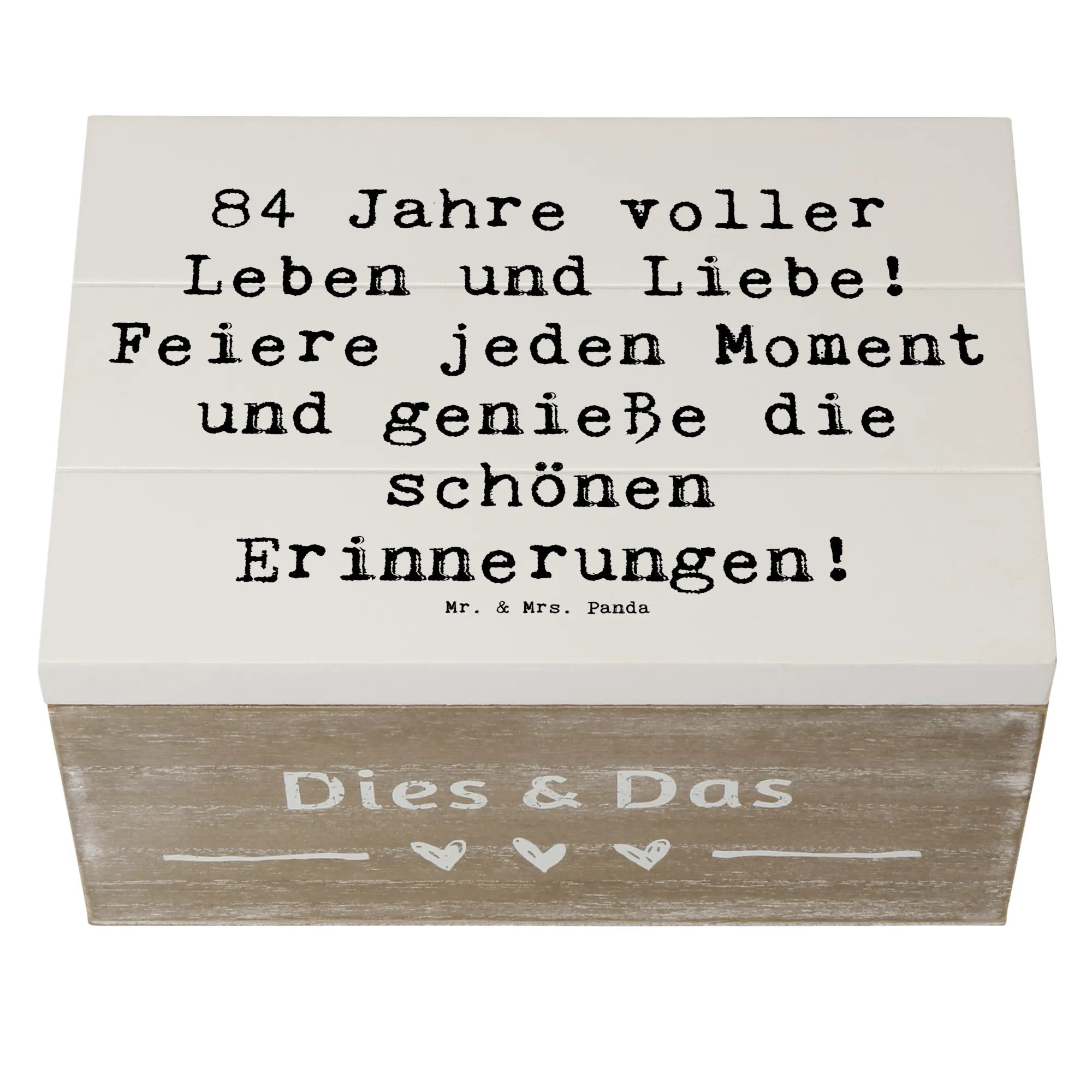 Wooden chest Saying 84 Jahre voller Leben und Liebe! Feiere jeden Moment und genieße die schönen Erinnerungen! - 22 x 15 cm - White