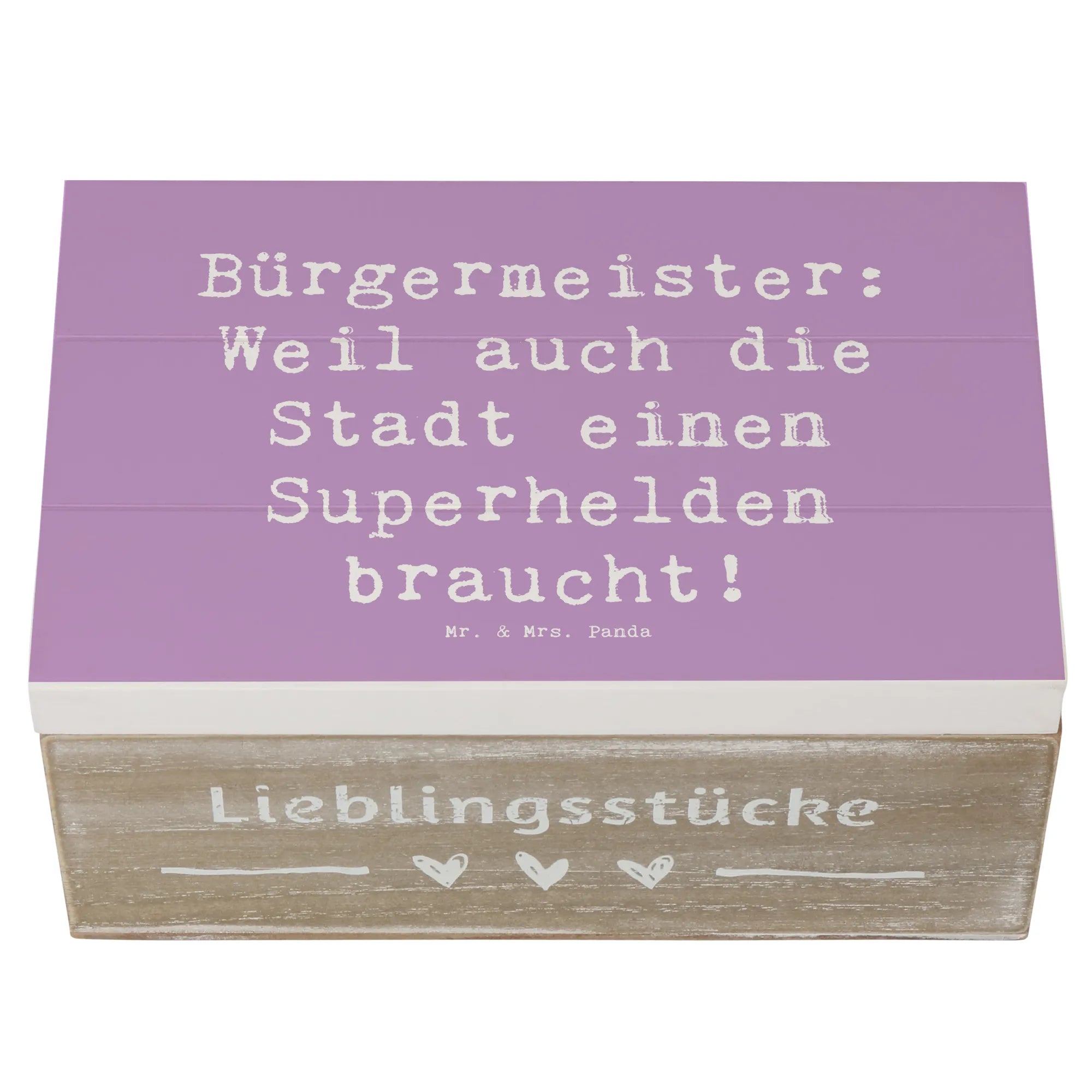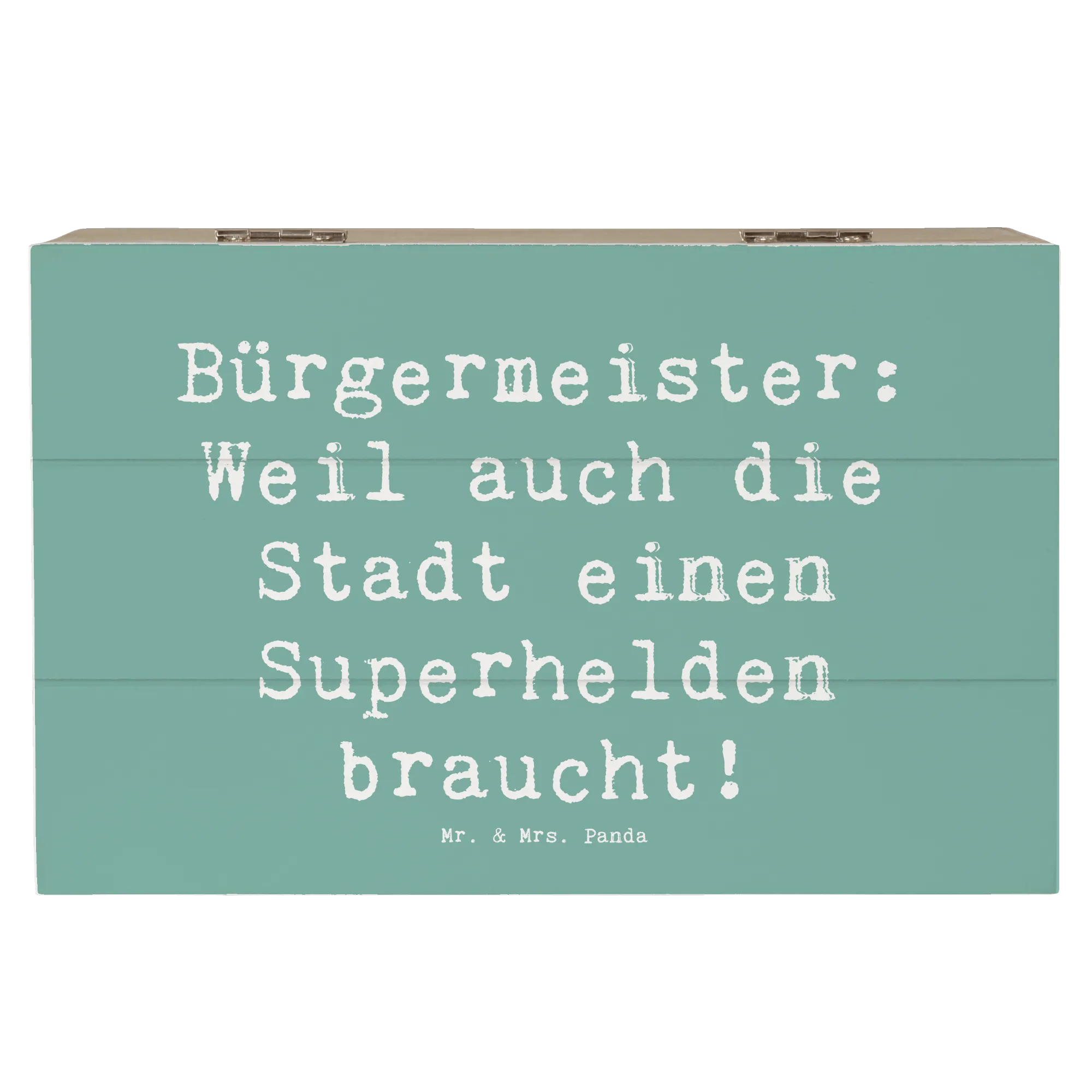 Wooden chest Saying Bürgermeister: Weil auch die Stadt einen Superhelden braucht! - 19 x 12 cm - Meeresbrise