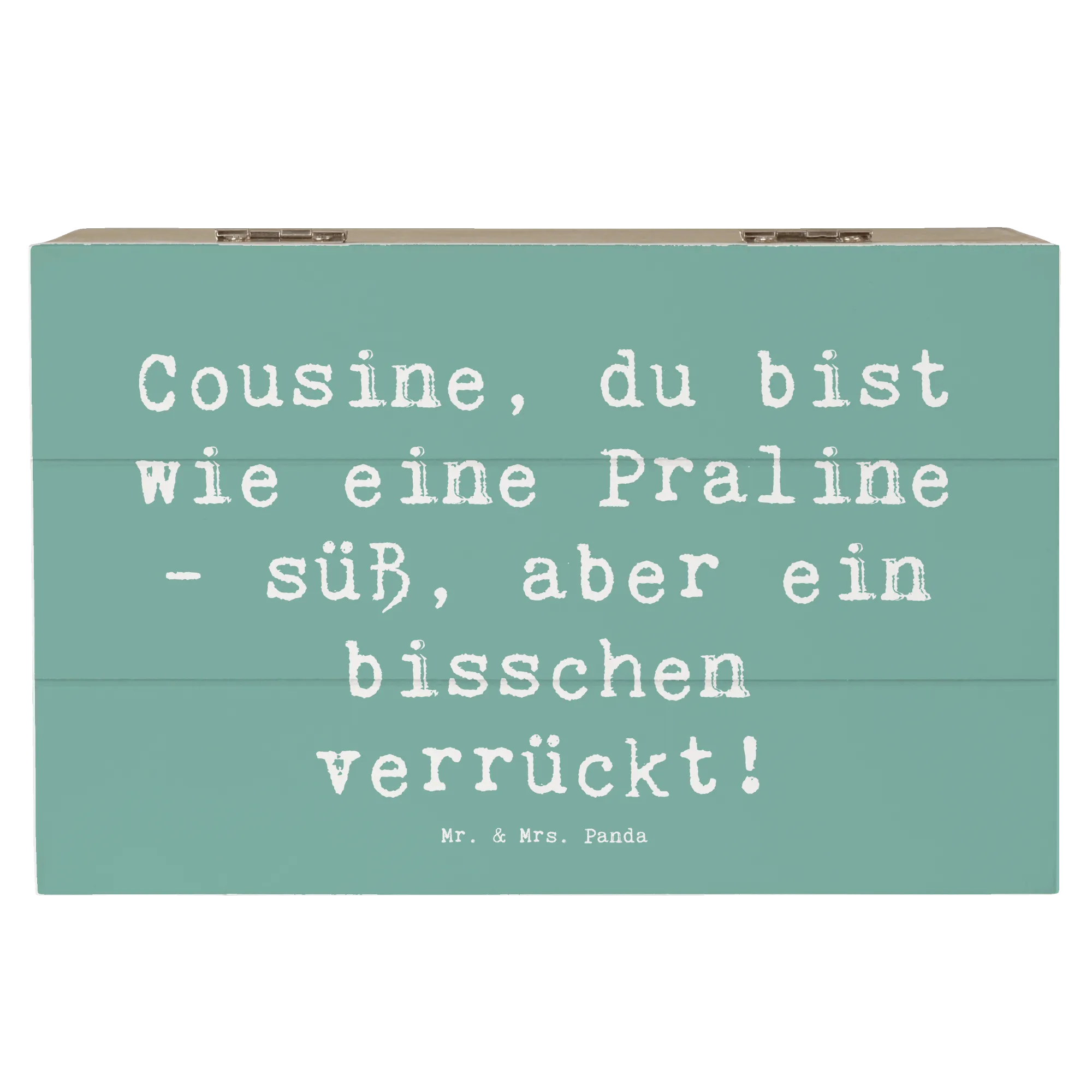 Wooden chest Saying Cousine, du bist wie eine Praline - süß, aber ein bisschen verrückt! - 19 x 12 cm - Meeresbrise