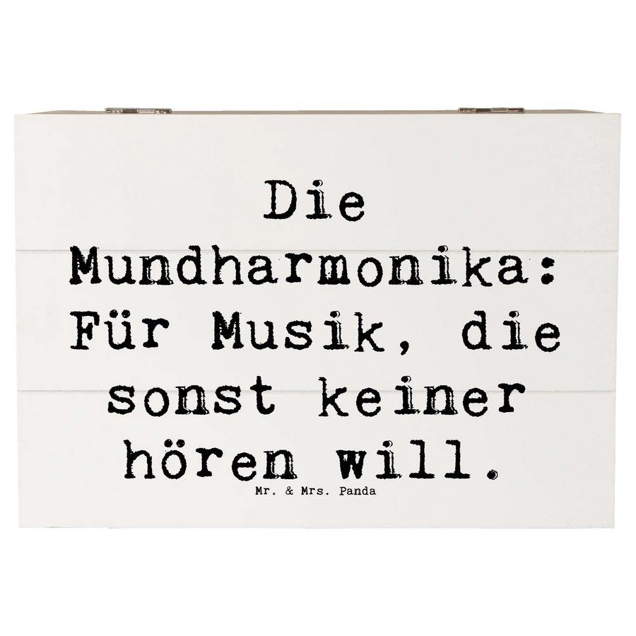 Wooden chest Saying Die Mundharmonika: Für Musik, die sonst keiner hören will. - 22 x 15 cm - White